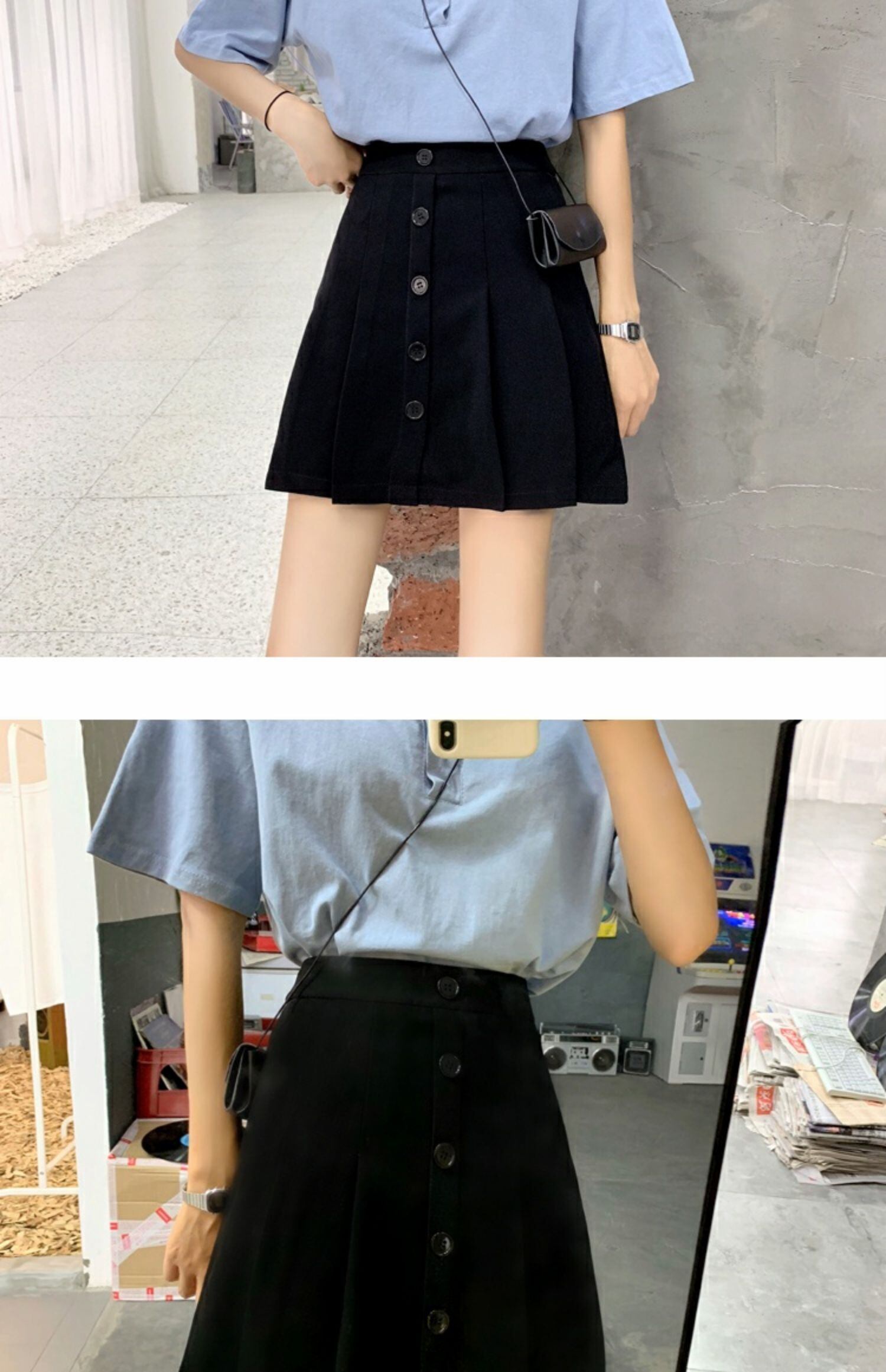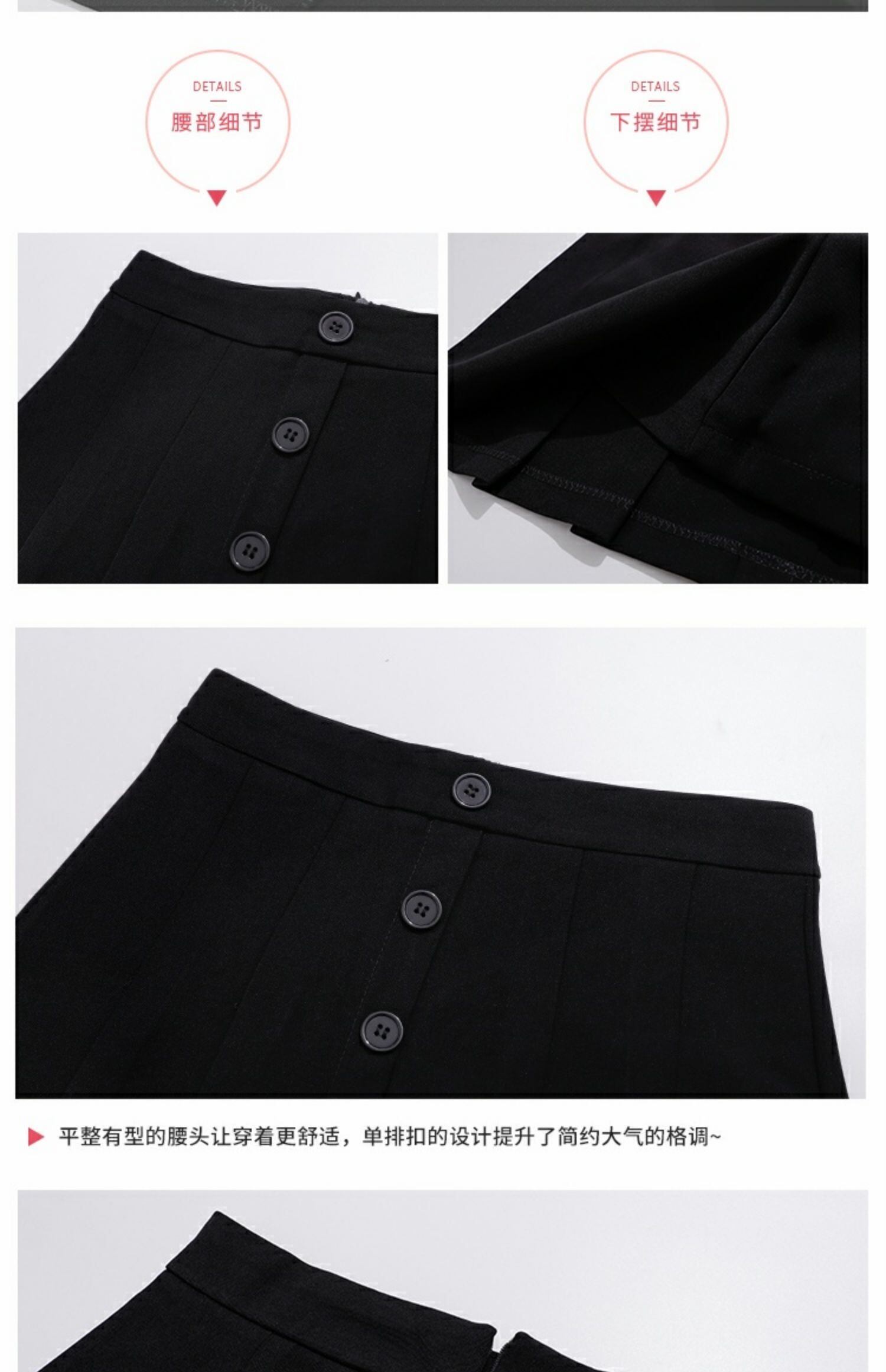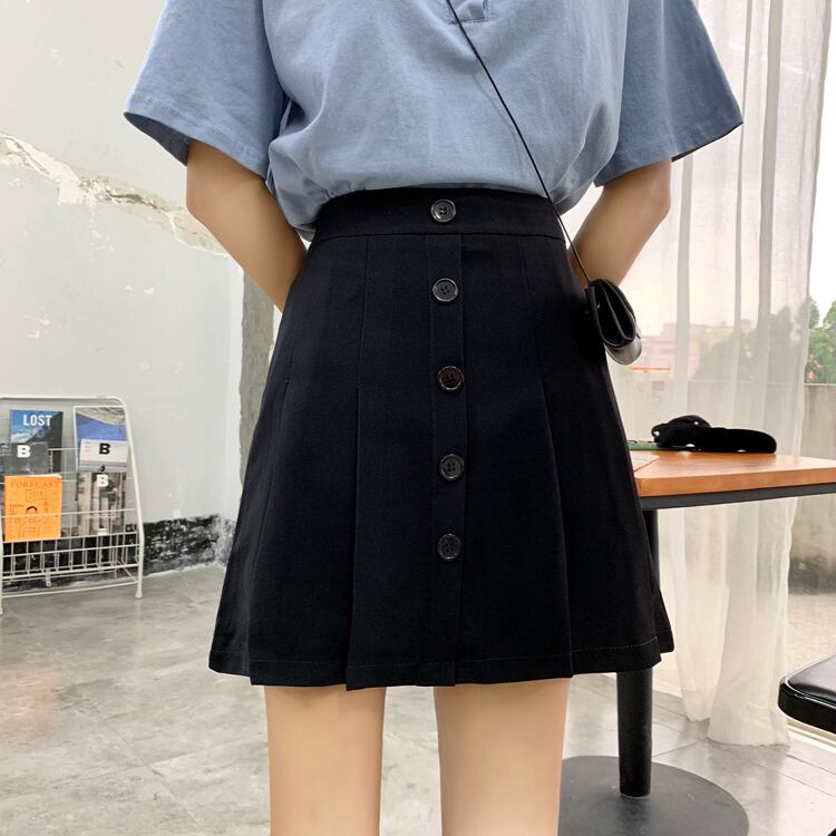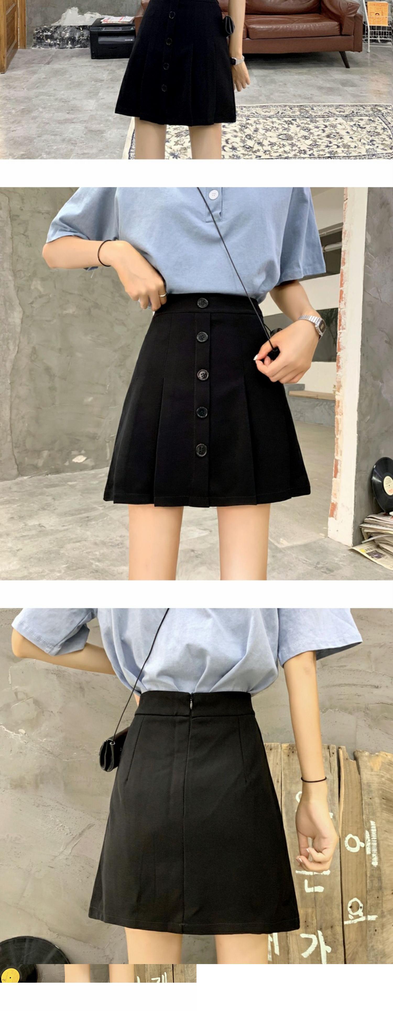 スカートレディース2020新夏ハイウエストスリムスカートオールマッチウエストプリーツブラックAラインスカートショートスカート学生 萌量不足61838543010