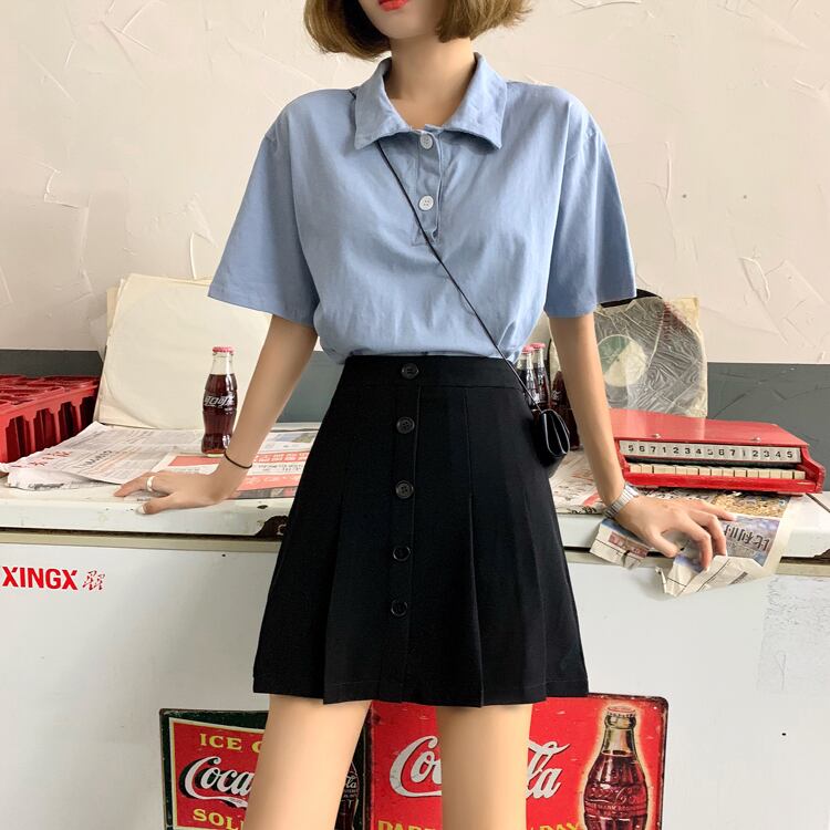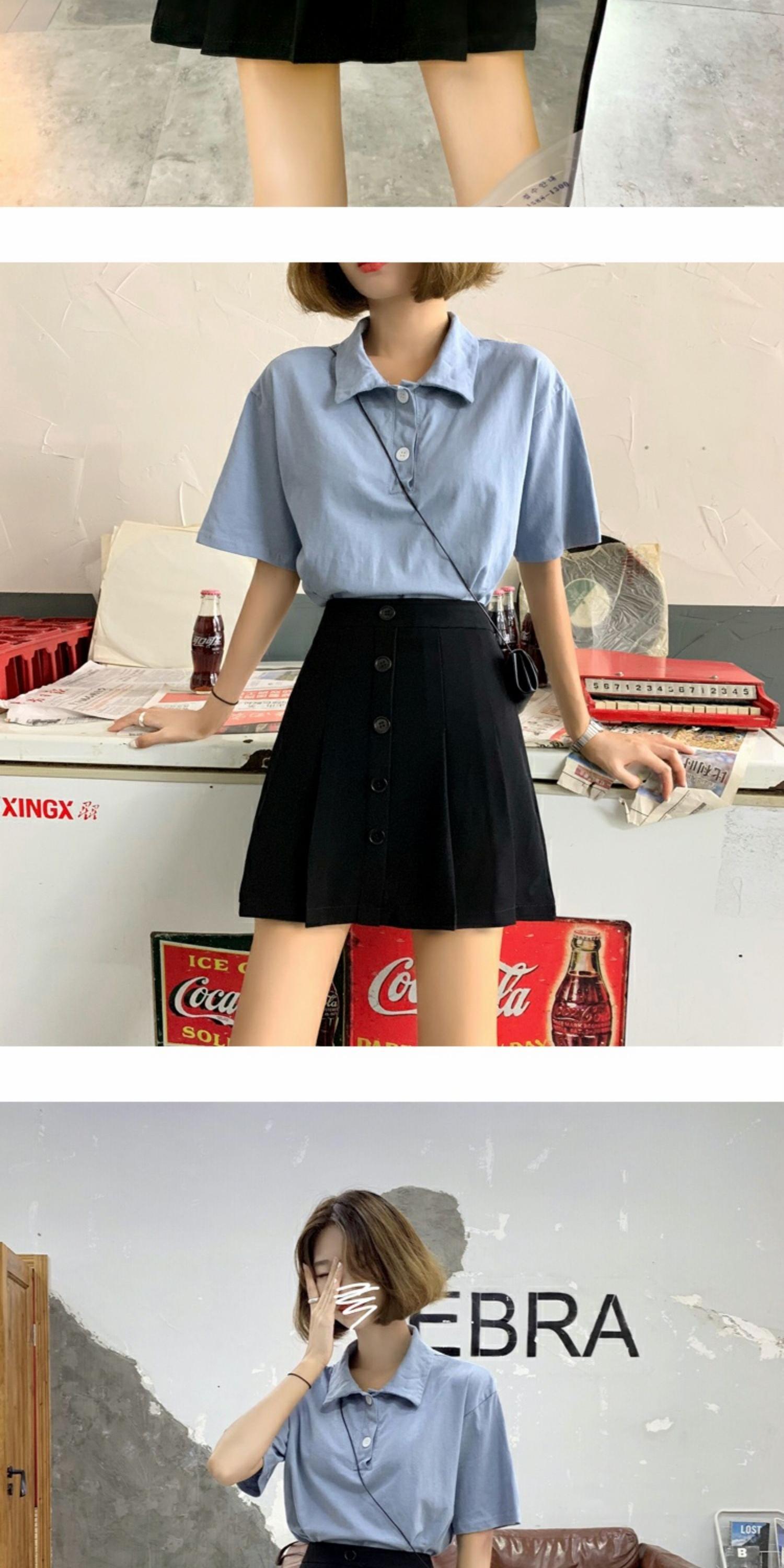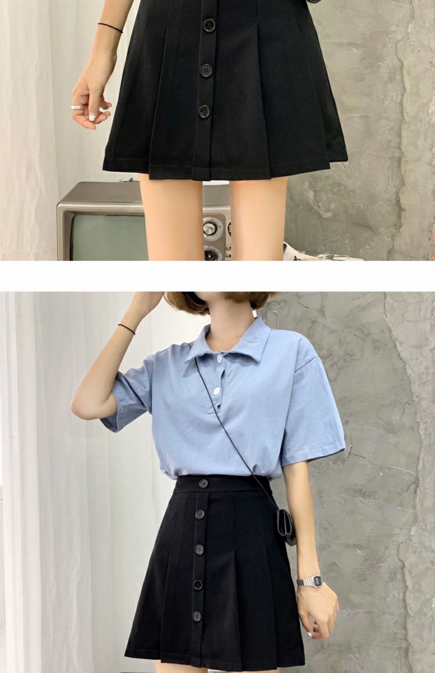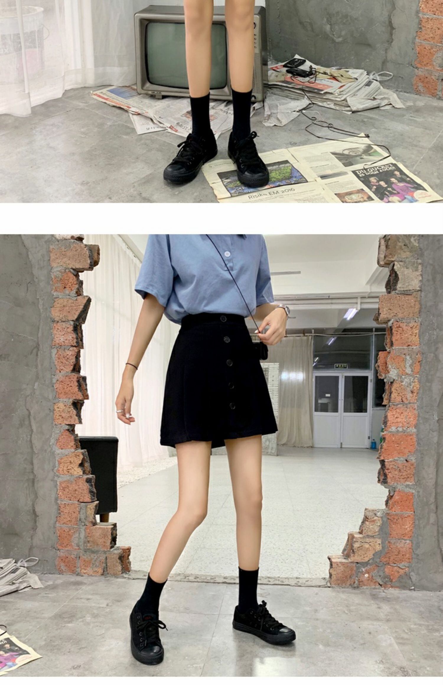 スカートレディース2020新夏ハイウエストスリムスカートオールマッチウエストプリーツブラックAラインスカートショートスカート学生 萌量不足61838543010