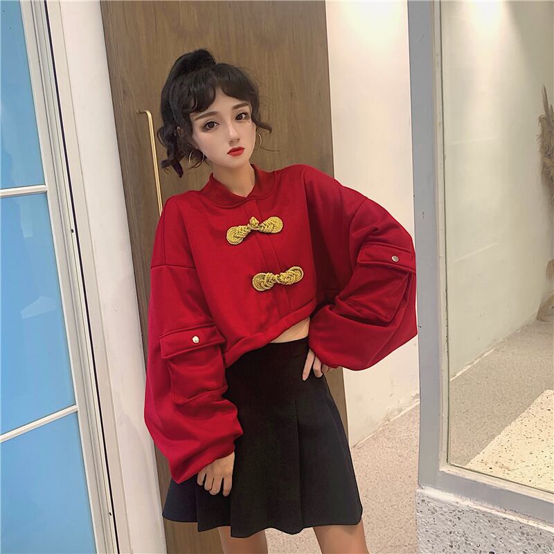 チャイニーズスタイルレトロディスクボタンパーソナリティショートコートルーズバージョンセーター2020新作レディース秋冬長袖トップトレンド 萌量不足98703807243