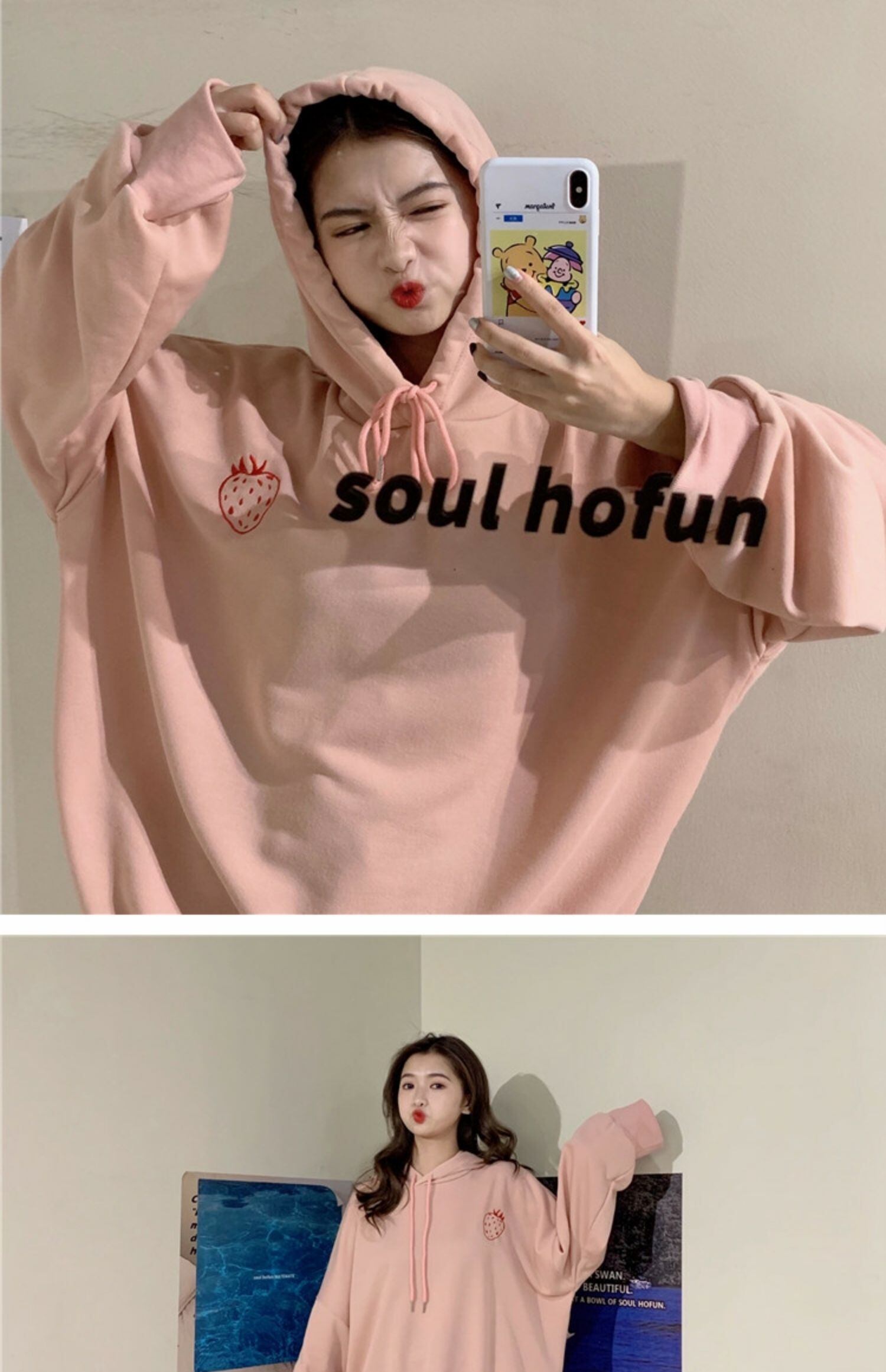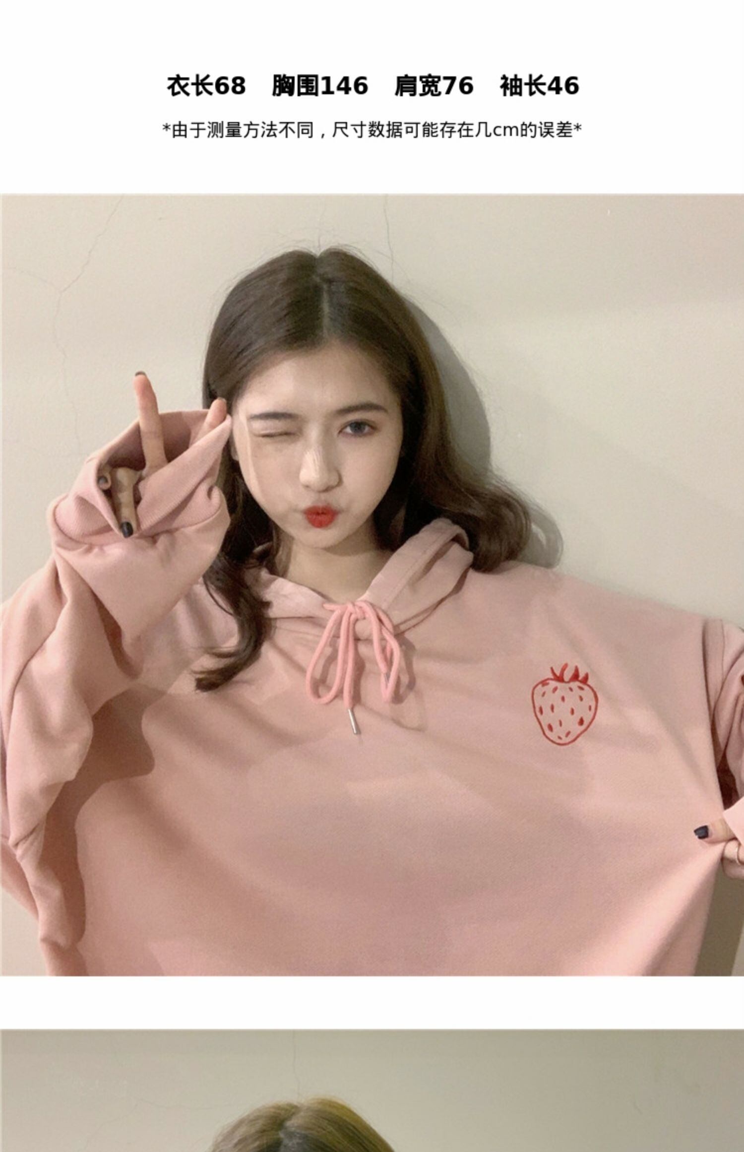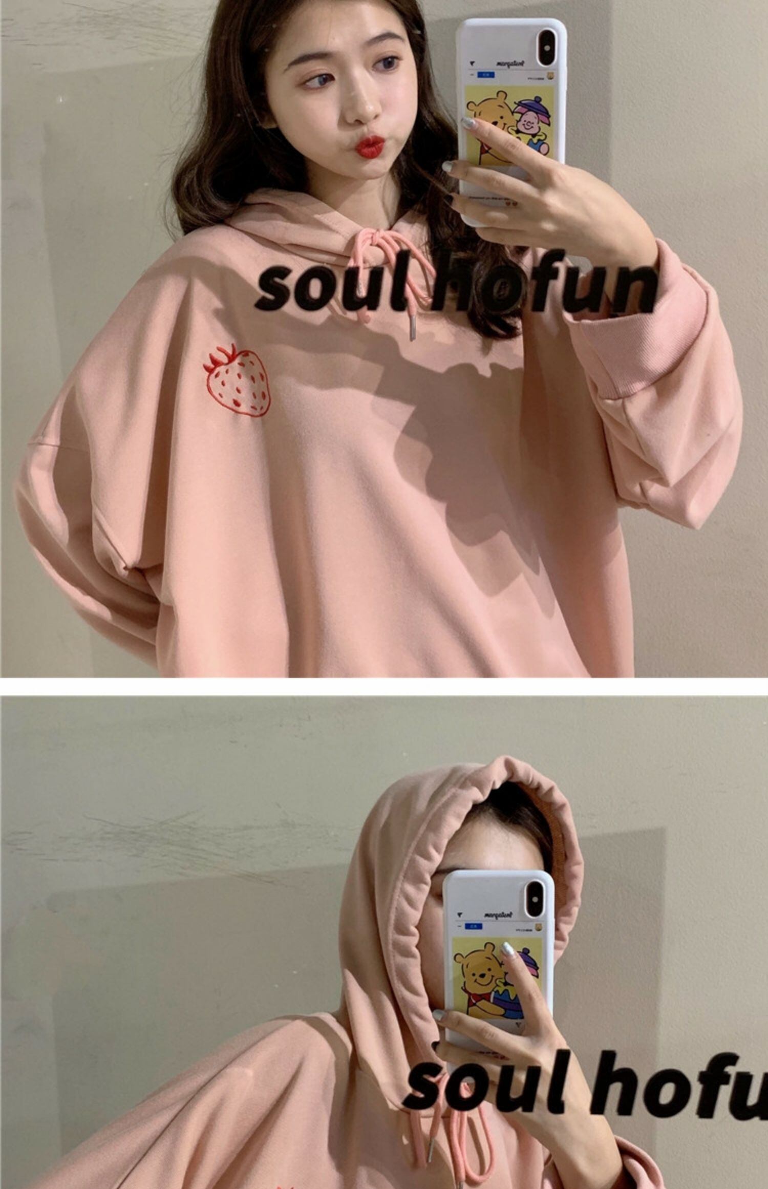 ピンクのかわいいフード付き2020秋セーター女性春と秋の薄いスタイルルーズミドル丈の学生トップス 萌量不足58613726838