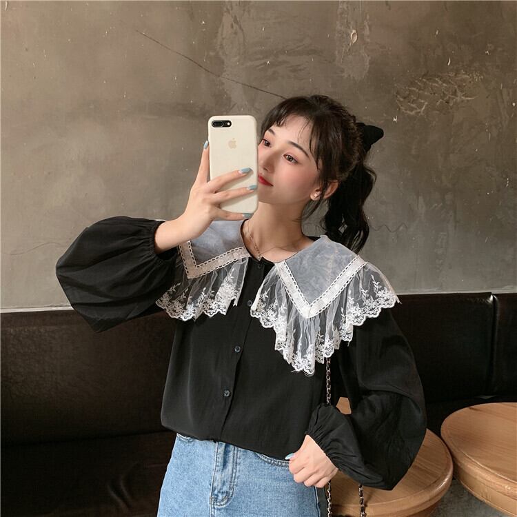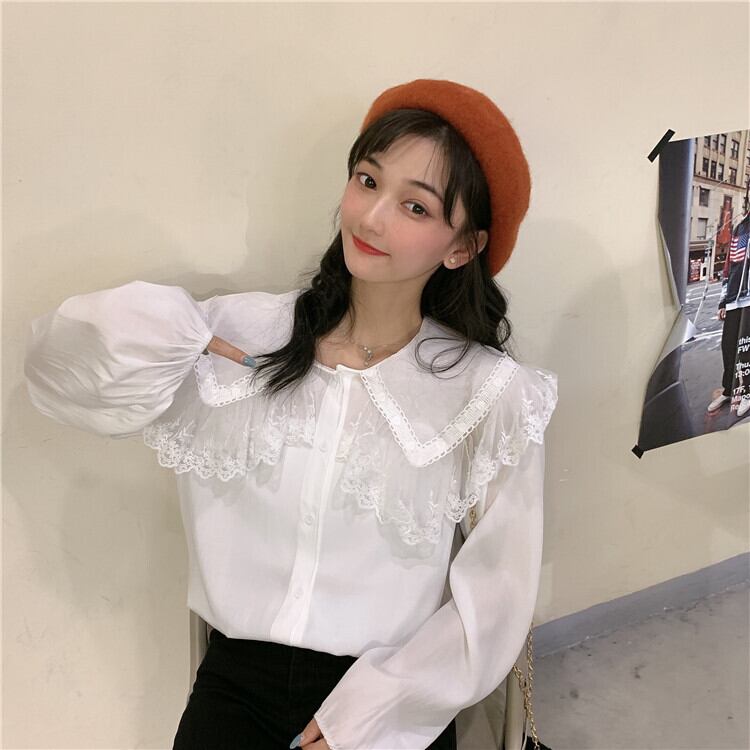 2020年新作スモールフレッシュシャツレディース春秋長袖オールマッチブラウスドールカラー学生ファッションシャツトレンド 萌量不足29204128097