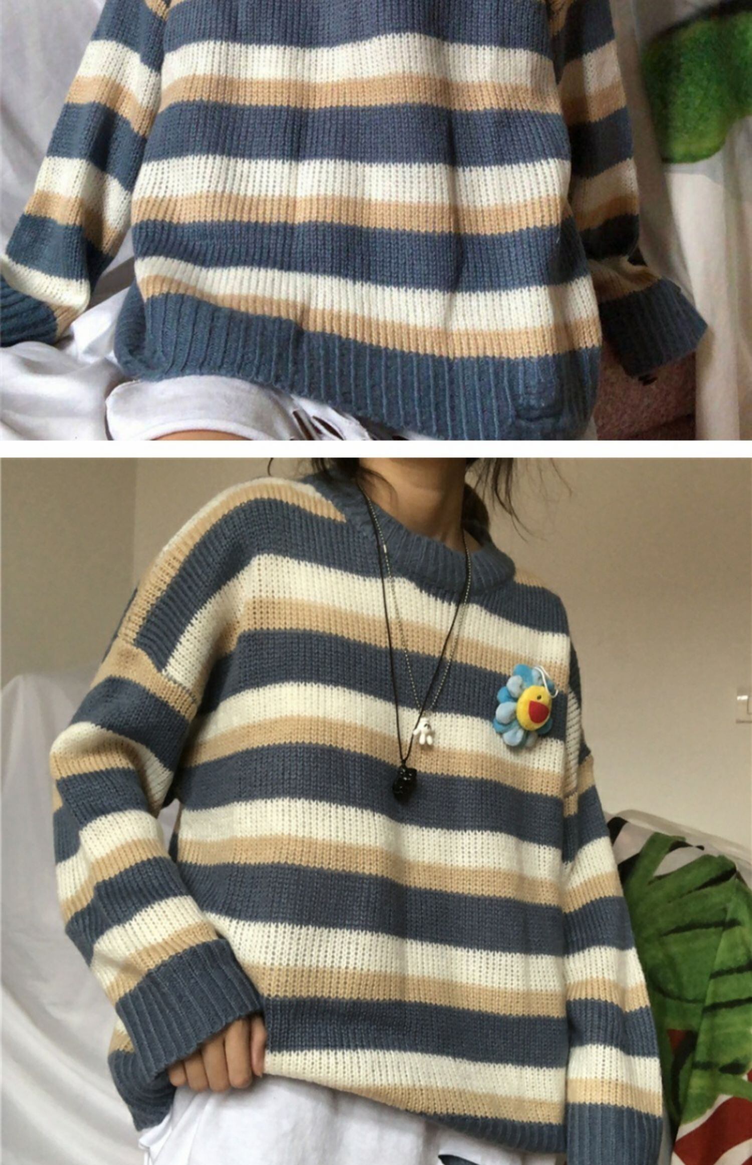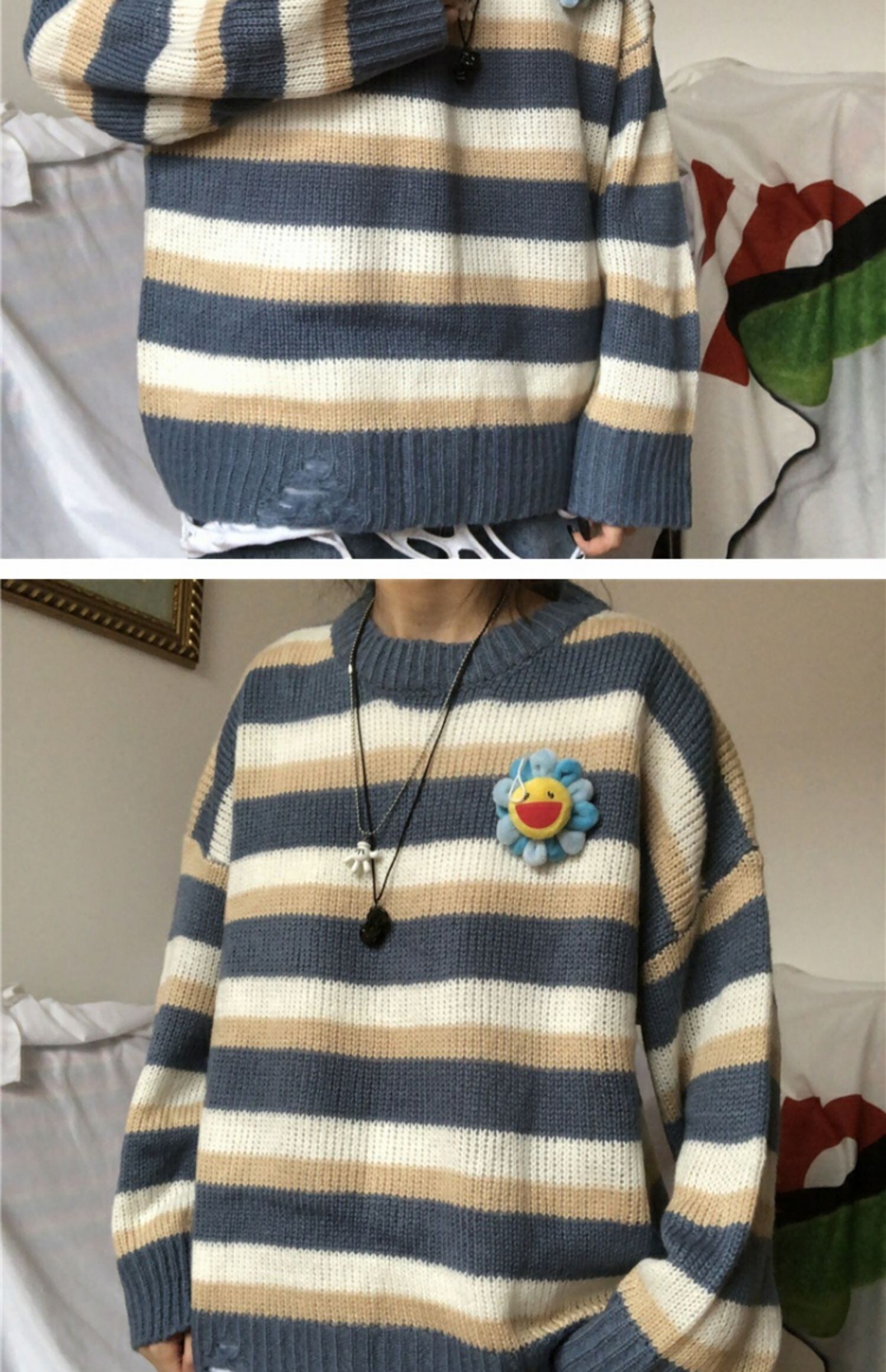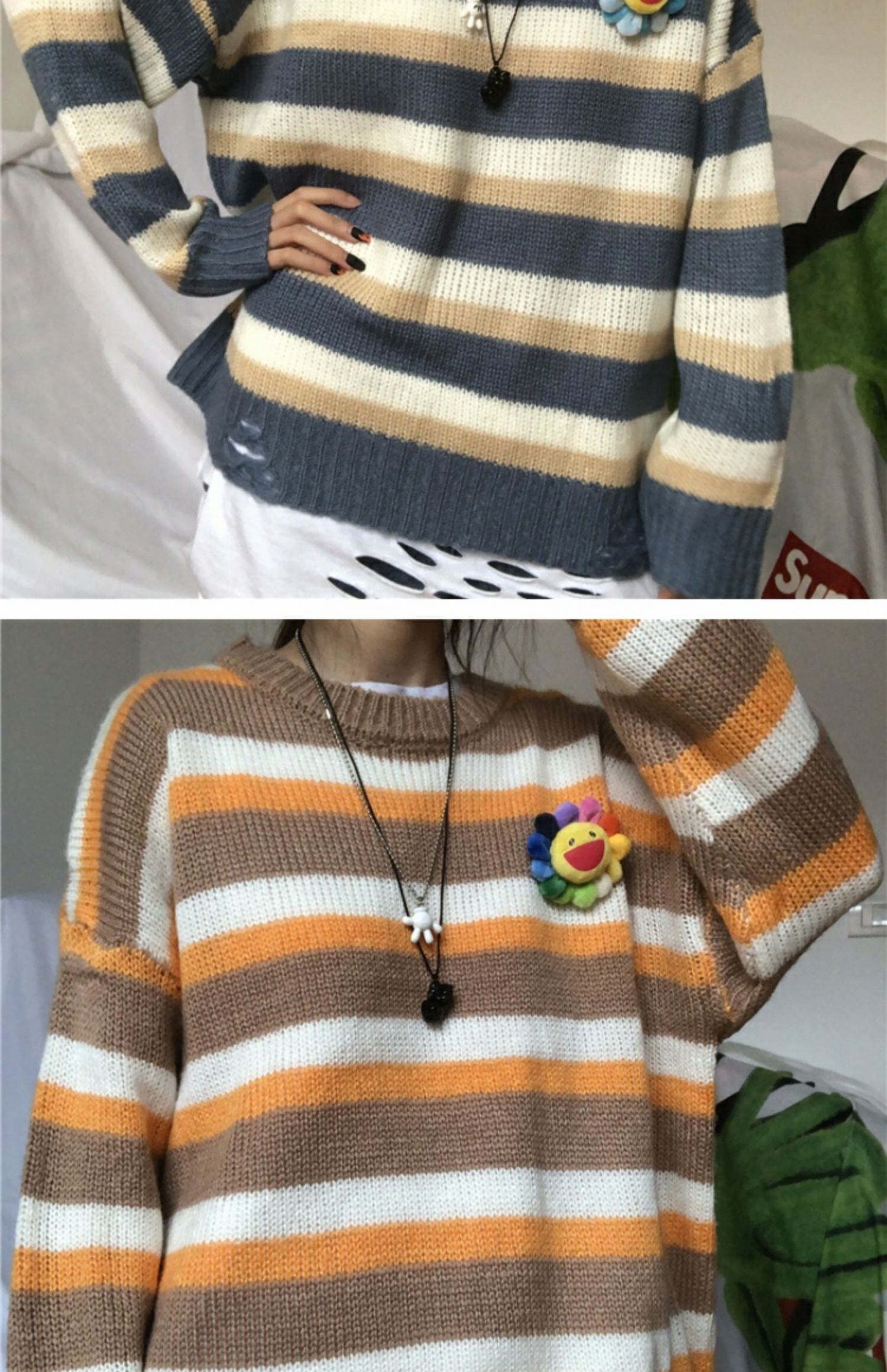 かわいい太いラインの学生レトロスタイルのセーター秋と冬は怠惰なスタイルのフード付きルーズ長袖の小さな男を着用 萌量不足45525371938