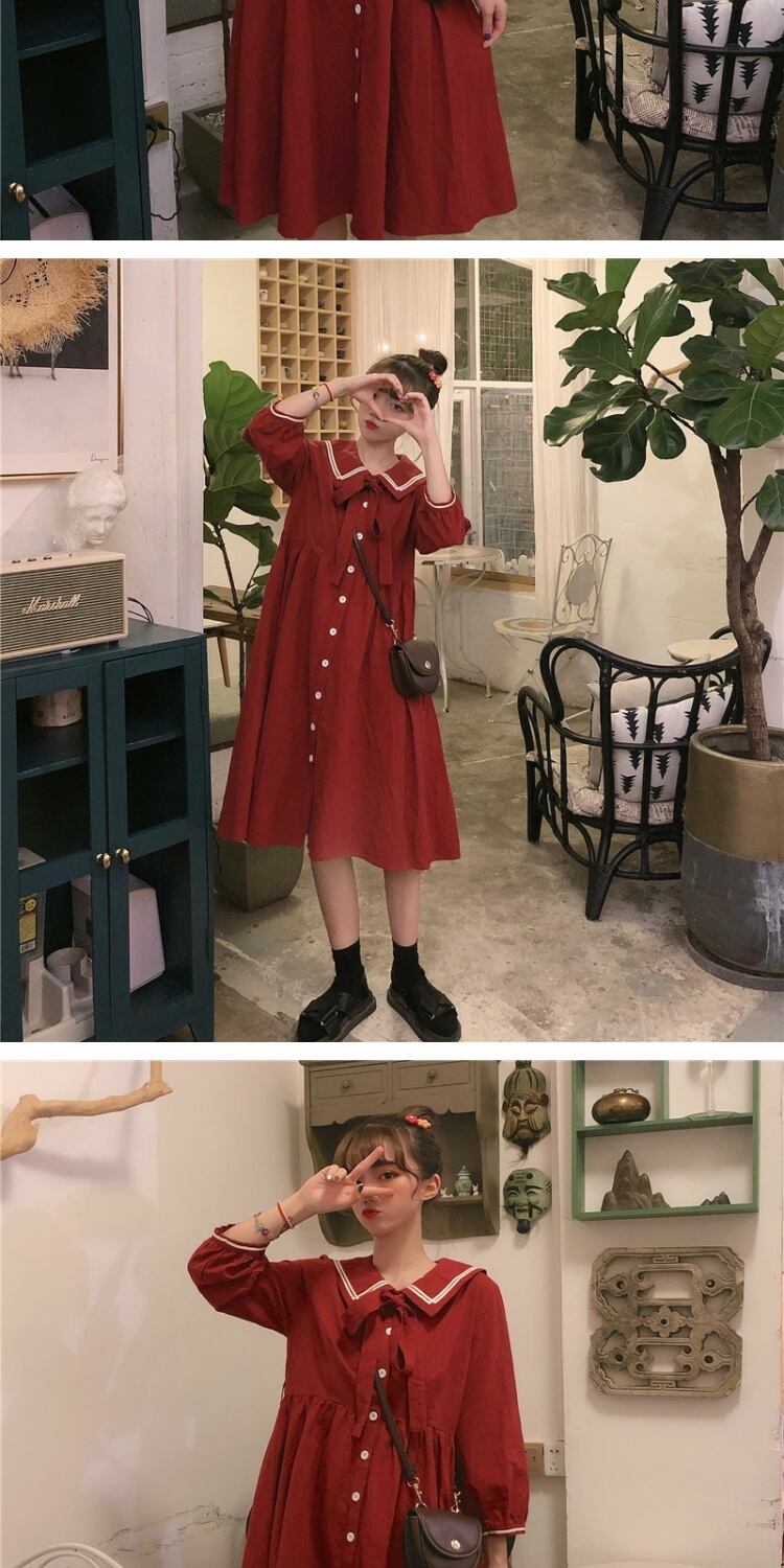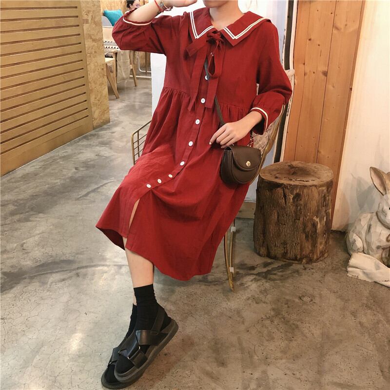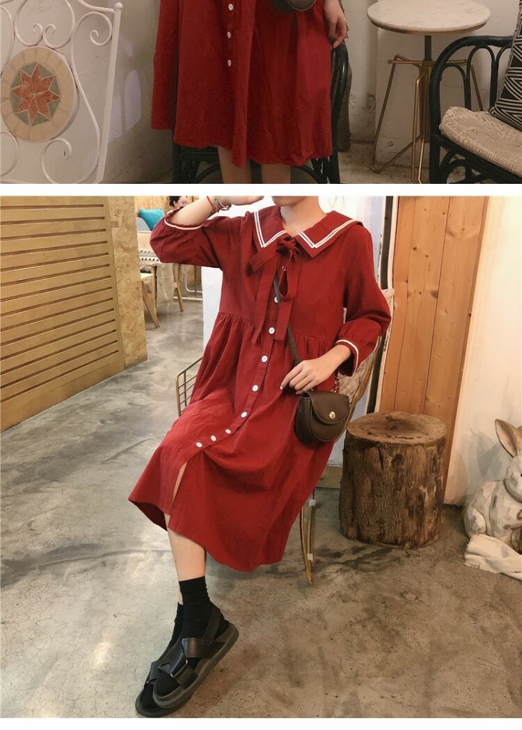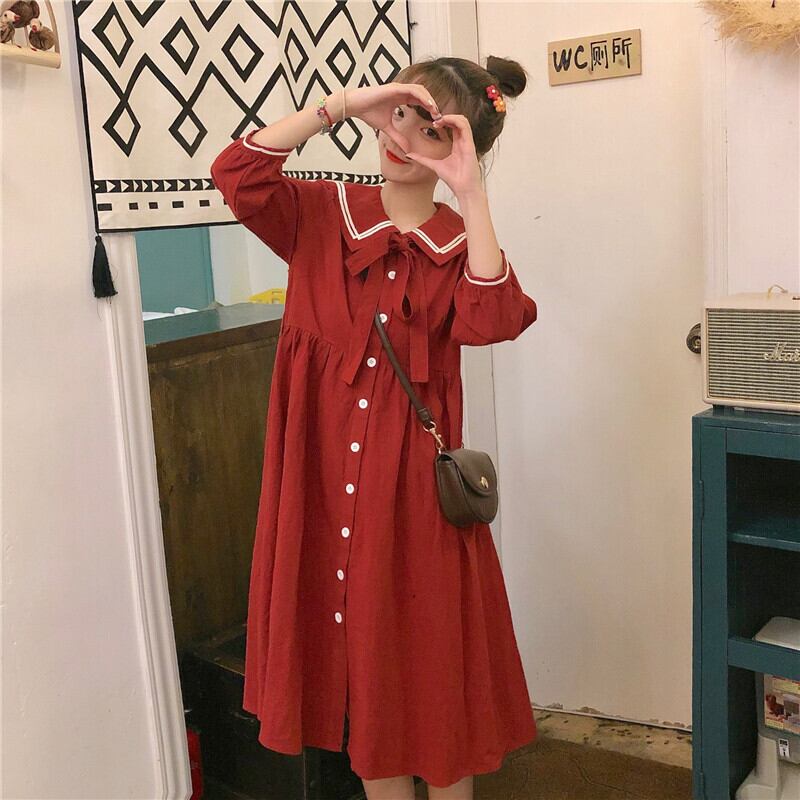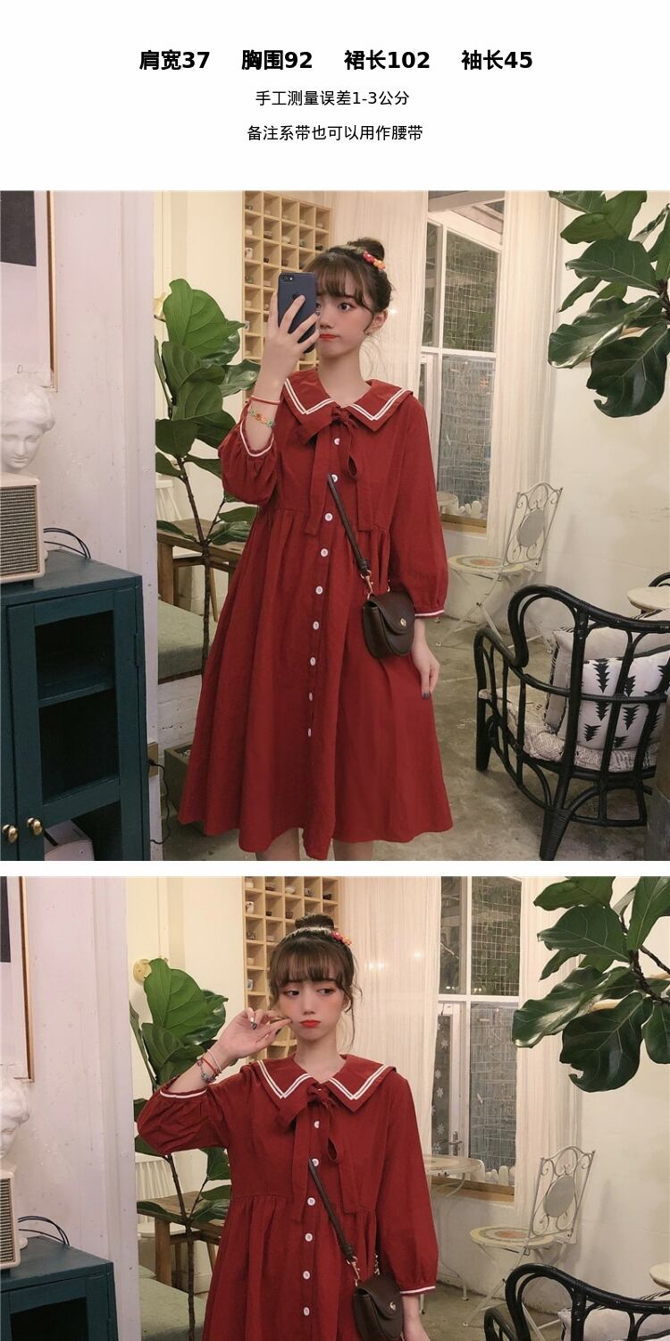 小さな春と秋2020新しい女性のエッセイネイビーカラースウィートウエストシンナーミドル丈ドレストレンド 萌量不足19596835398