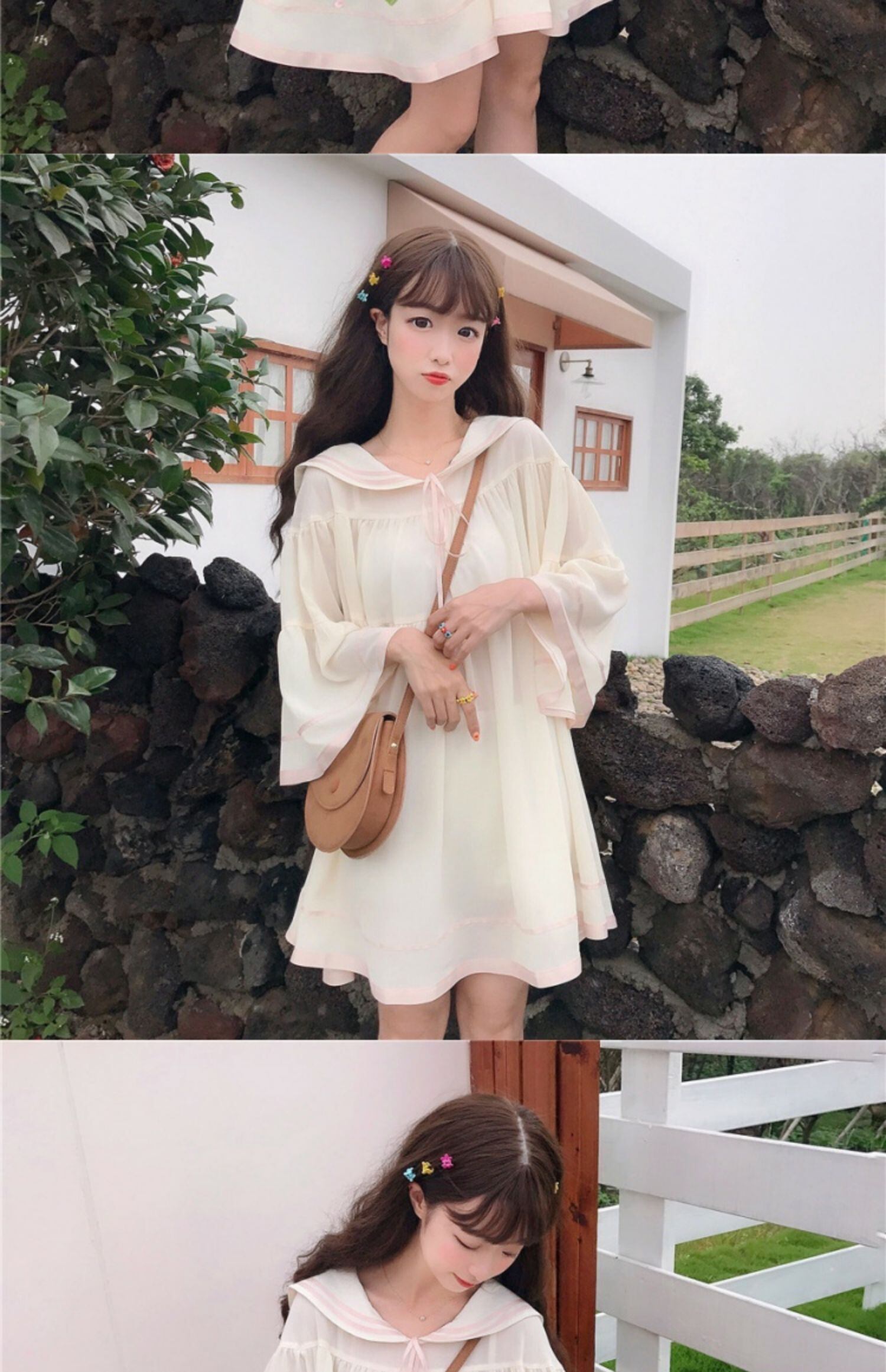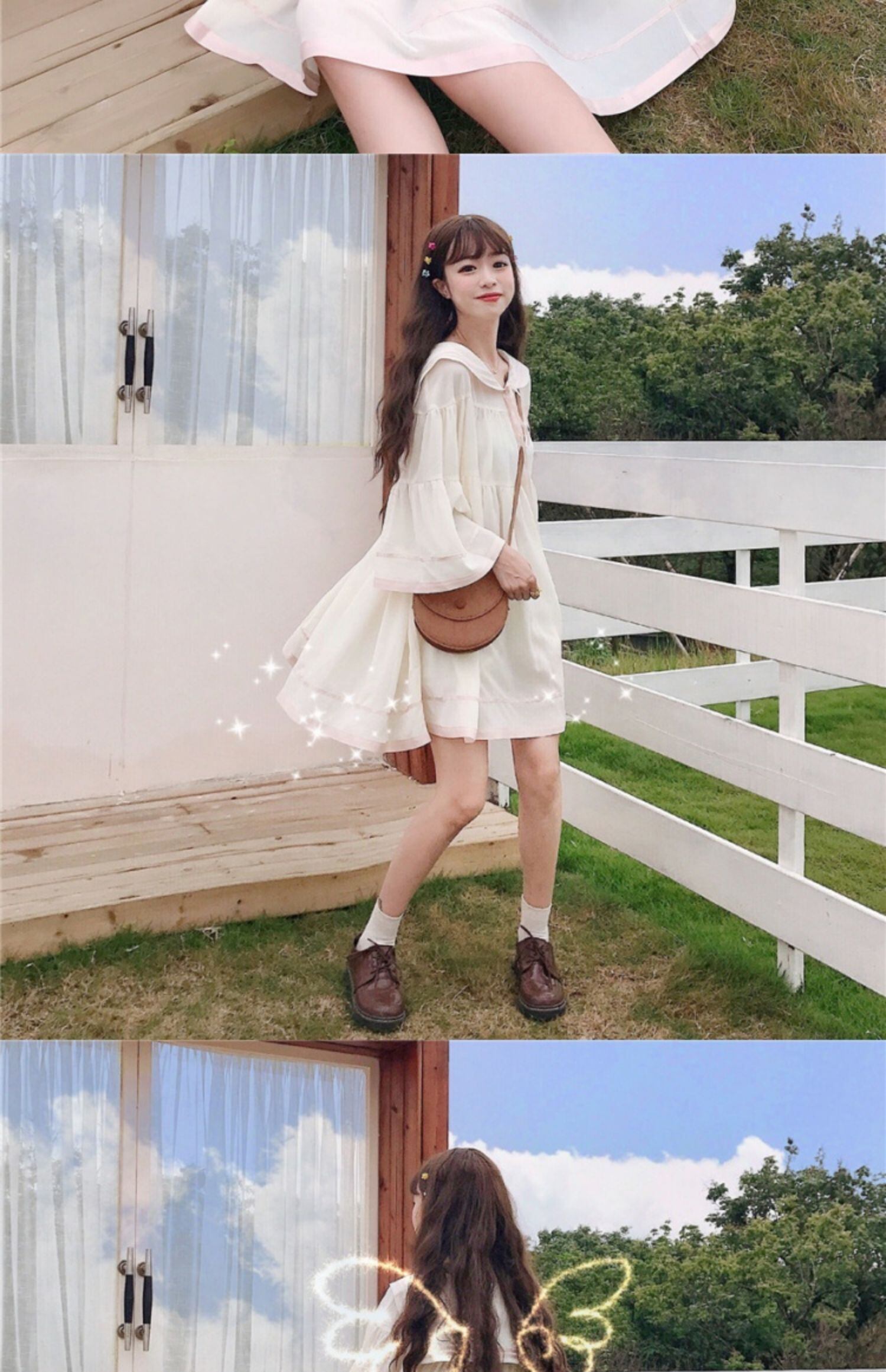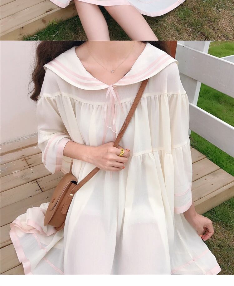 夏の女性の2020年の新しいeseスカートミドル丈の小さな新鮮なネイビースタイルの小さなドレスかわいいルーズ 萌量不足45624163801