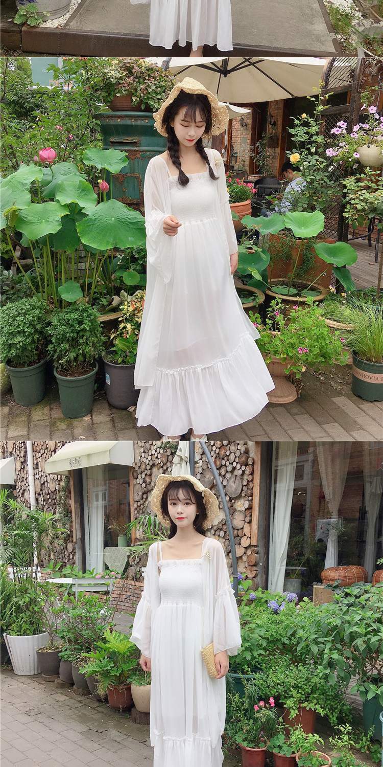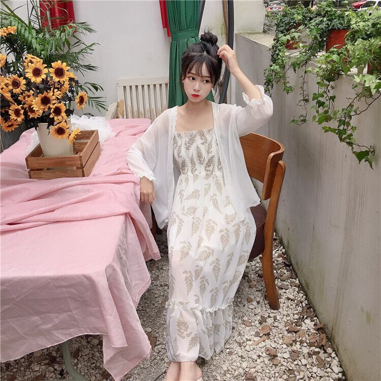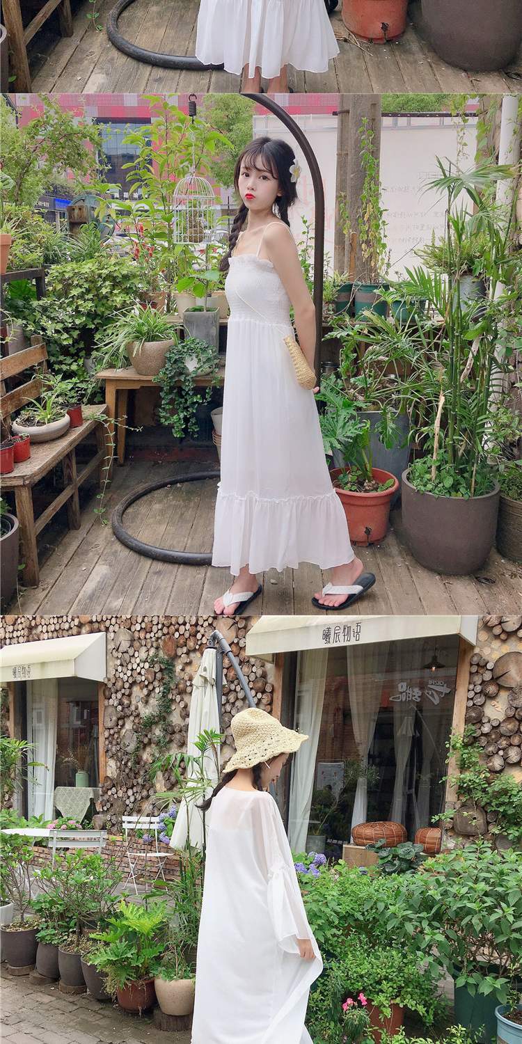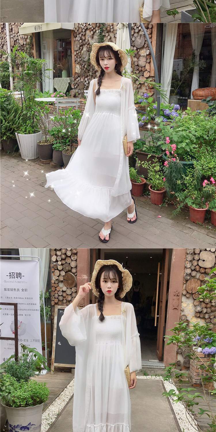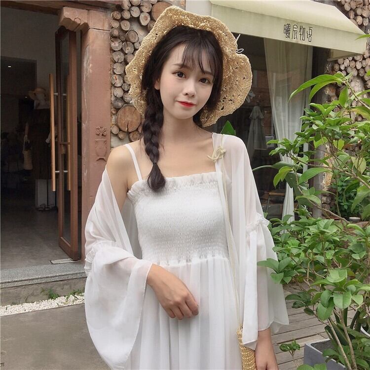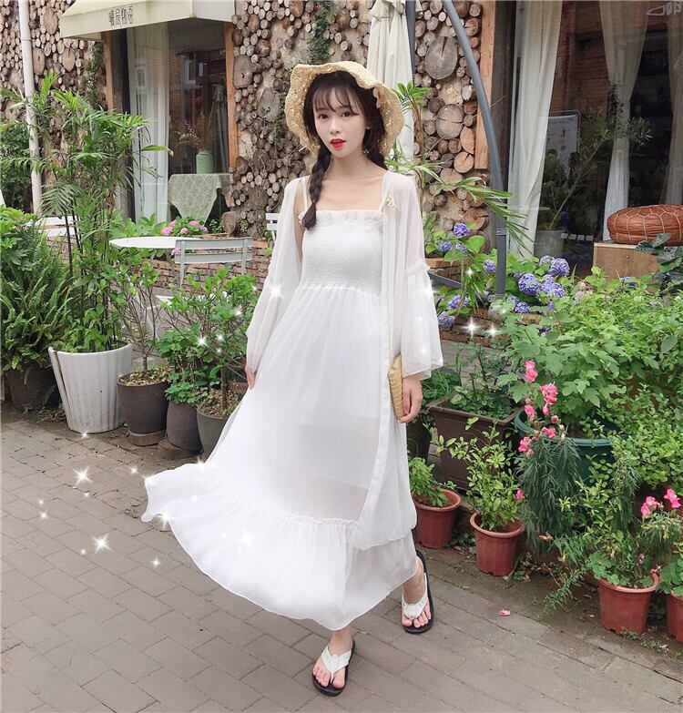スカートの女性2020年の新しい夏の木製の耳は薄くて長いサスペンダードレス薄いスーパー妖精の日焼け止め秋のロングスカート 萌量不足91699856071
