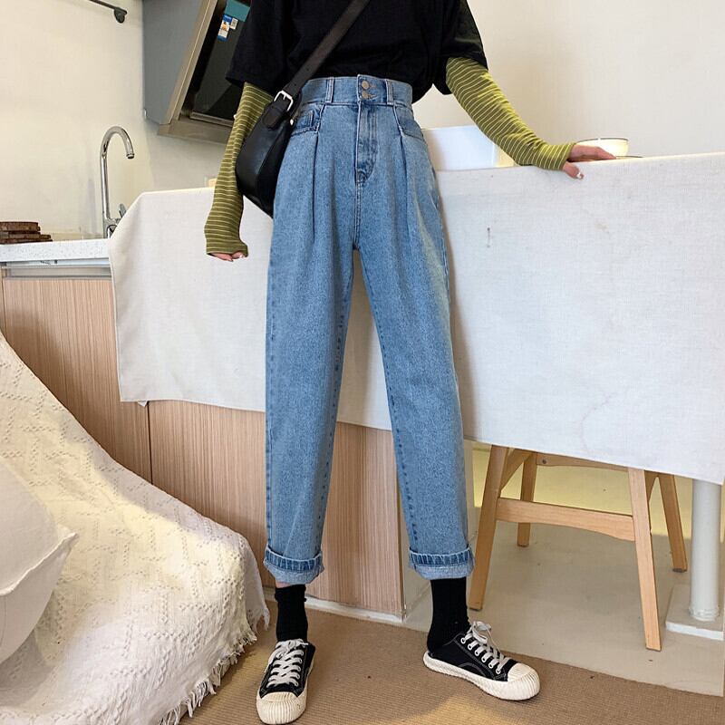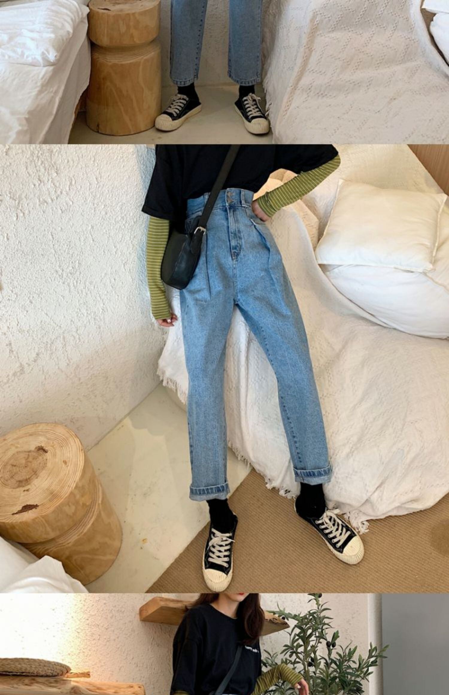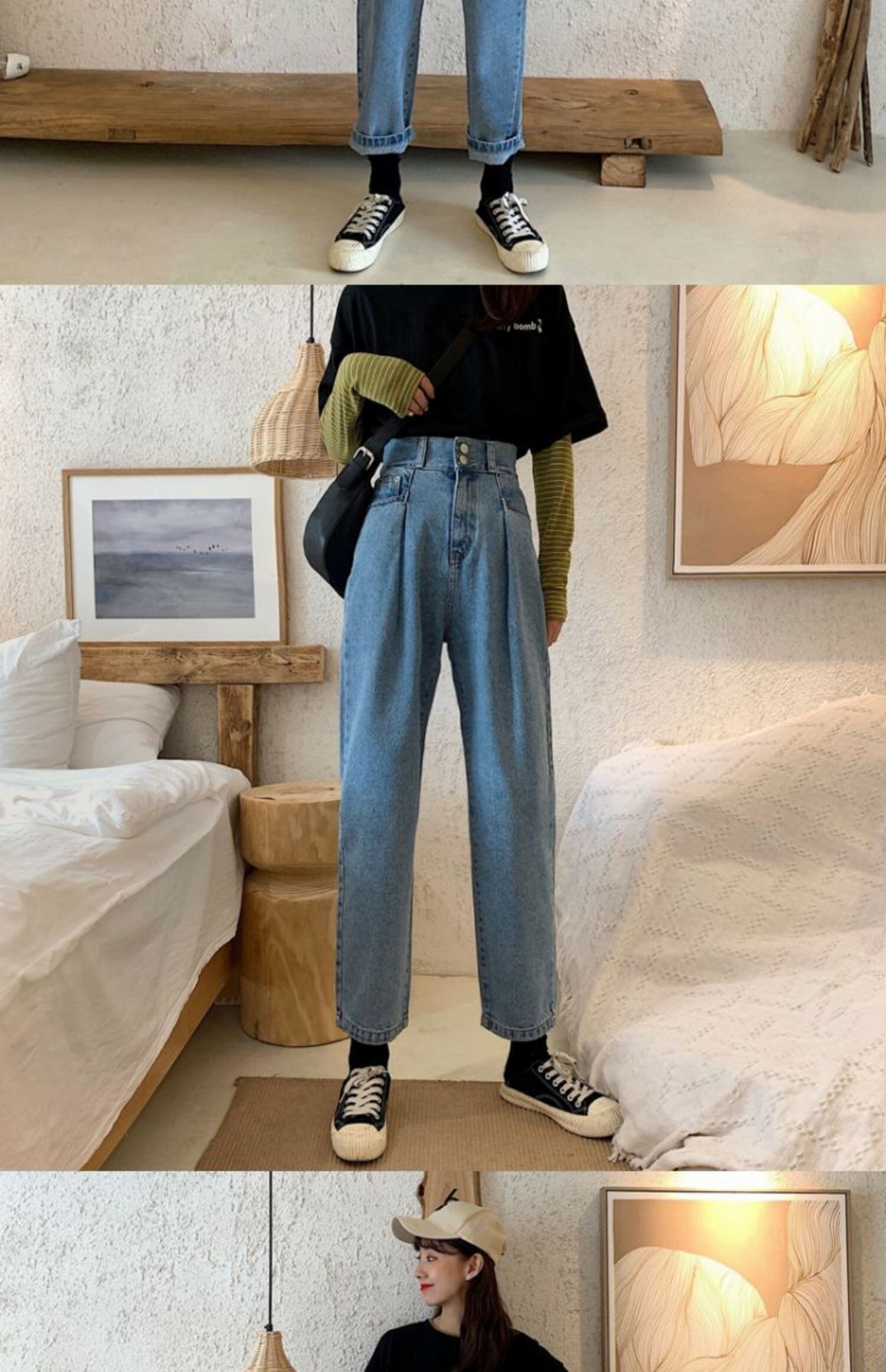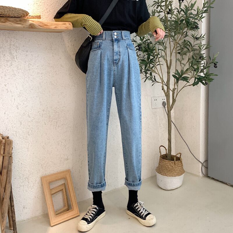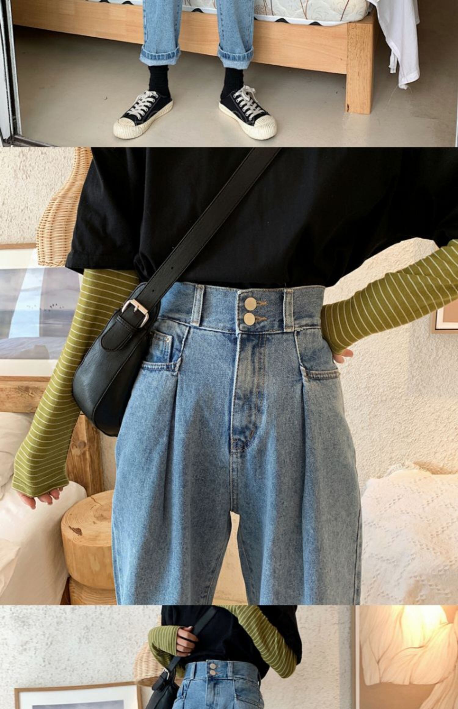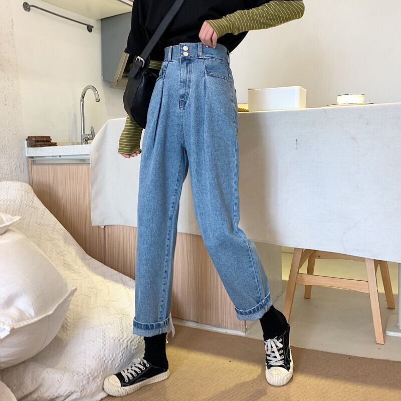 パンツレディース2020新しい小さな背の高いXuanyaパンツハイウエストダブルバックルストレートルーズルーズスリムオールマッチジーンズ秋冬 萌量不足82918093068