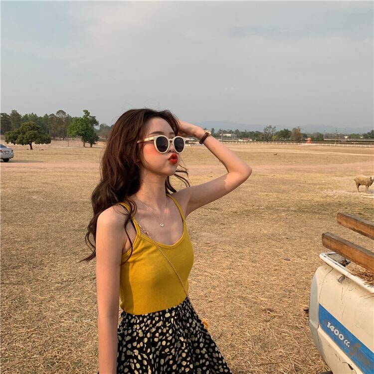サマースタイルの小さくてフレッシュでシンプルなキャミソールレディースオールマッチノースリーブアウターとインナーウェア無地のボトミングトップ 萌量不足42455962731
