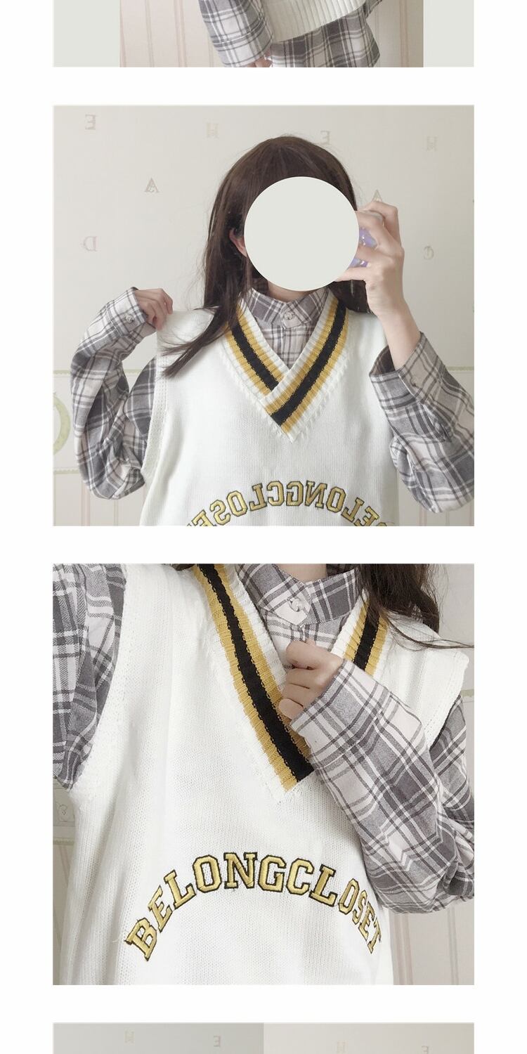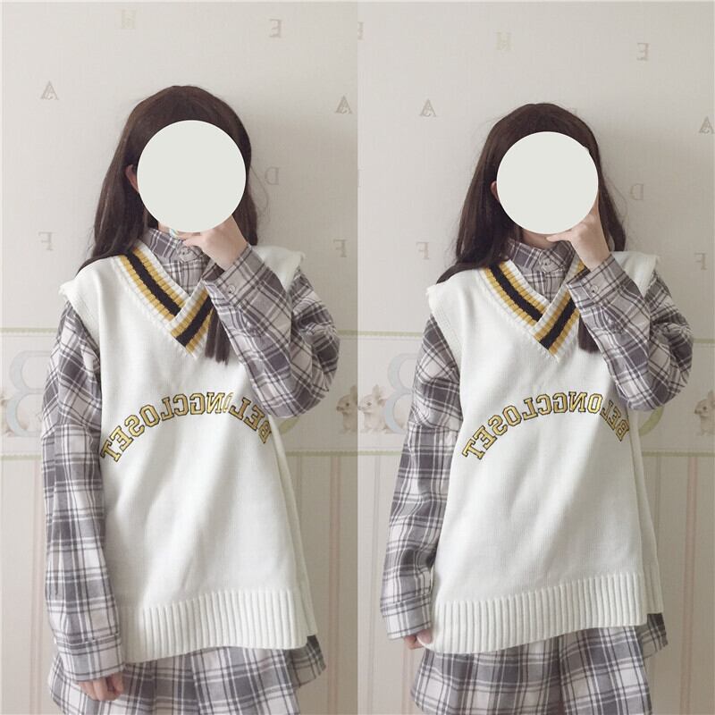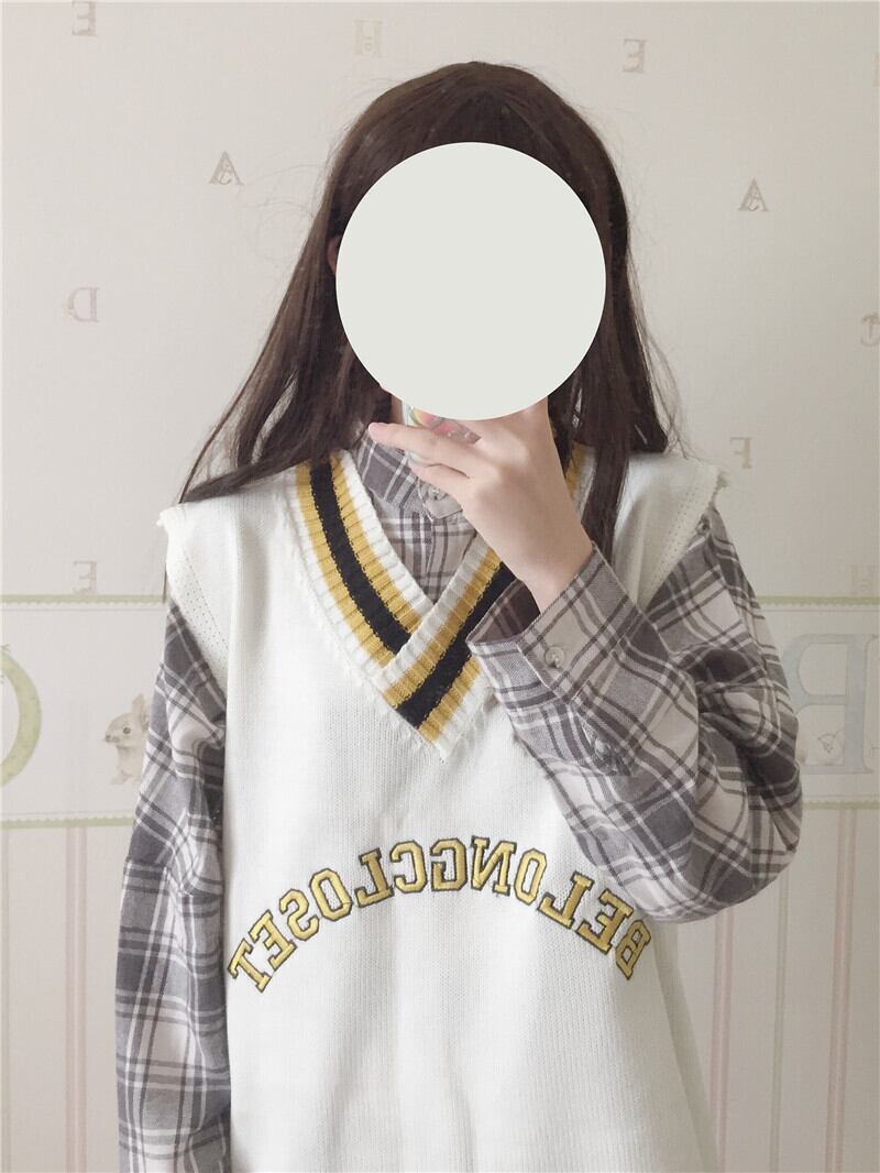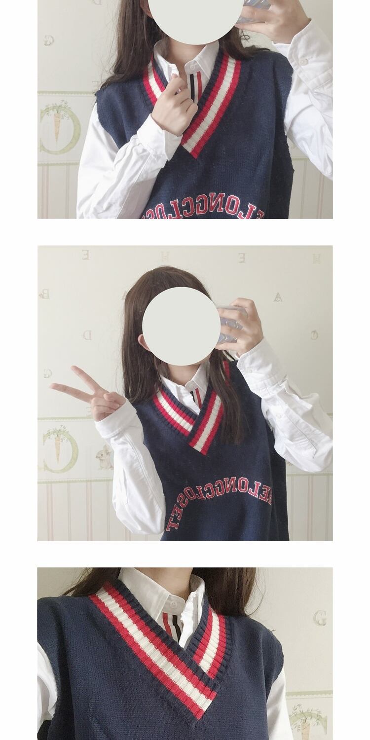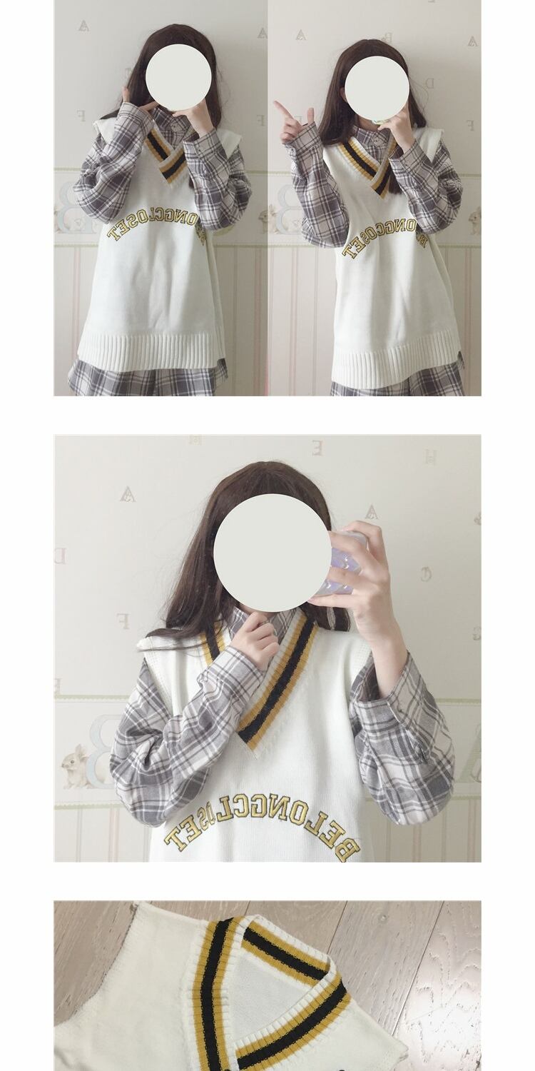 ルーズ刺繍カラーVネックノースリーブセーター レディースオータムセット 秋物 萌量不足29964912017