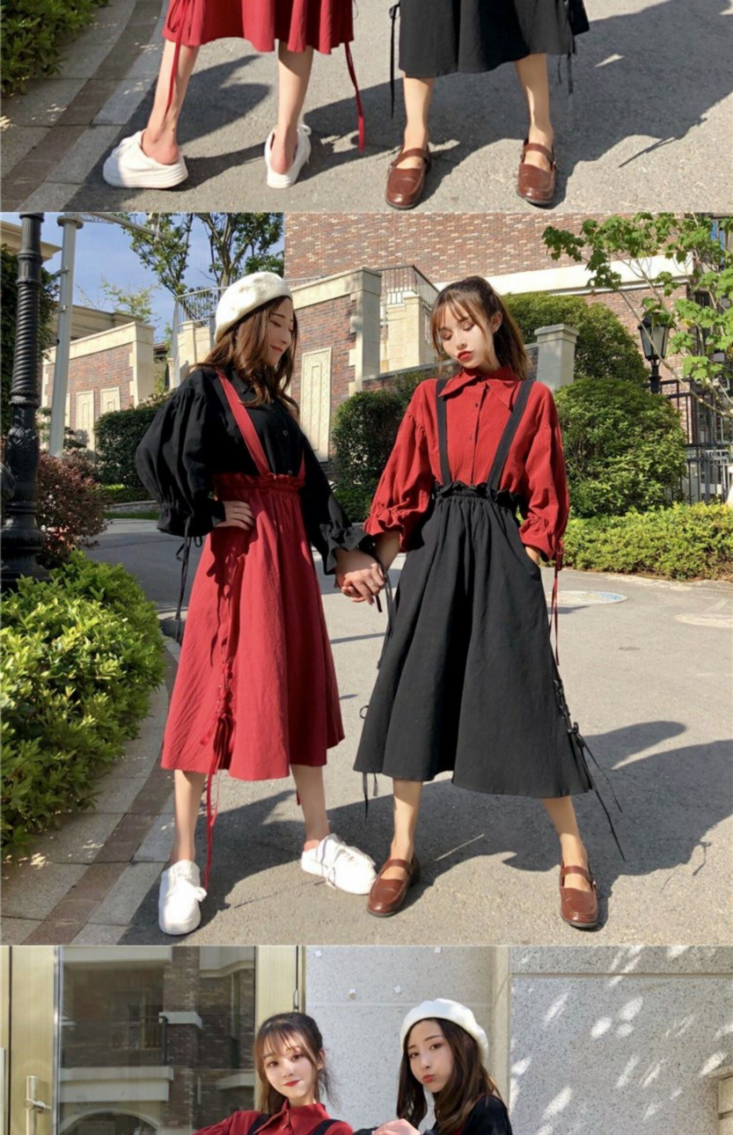 オータムシャツ ドレス レッド 大人ガーリー スウィート キュート カジュアル 秋物 萌量不足13987926679