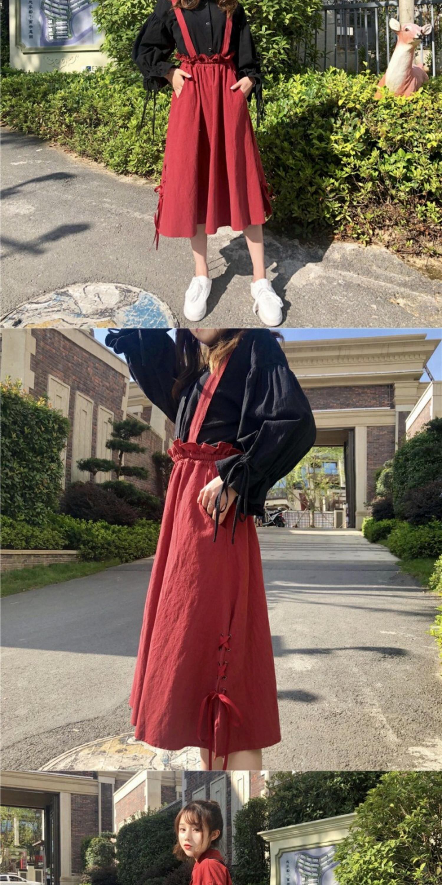 色:シャツレッド[シングルピース],シャツブラック[シングルピース],ストラップスカートレッド[シングルピース],ストラップスカートブラック[シングルピース]