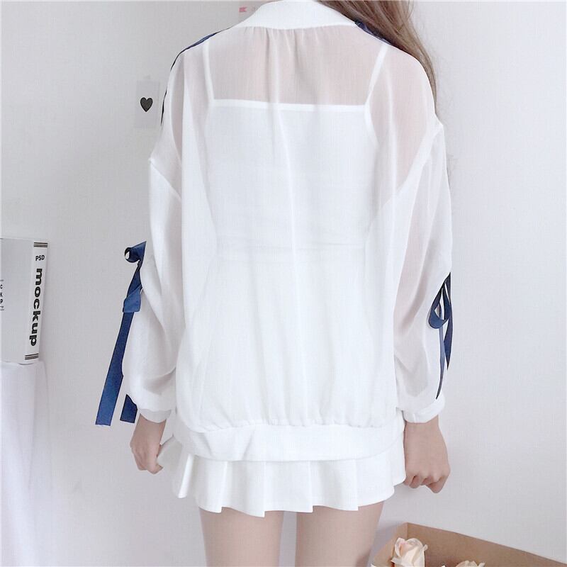 新しいルーズスモールフレッシュワイルドオータムネットレッド学生シフォンカーディガン自己栽培日焼け止め女性のトップ女性バージョン 萌量不足3317169586