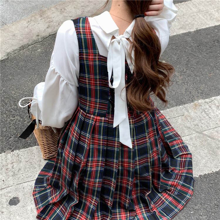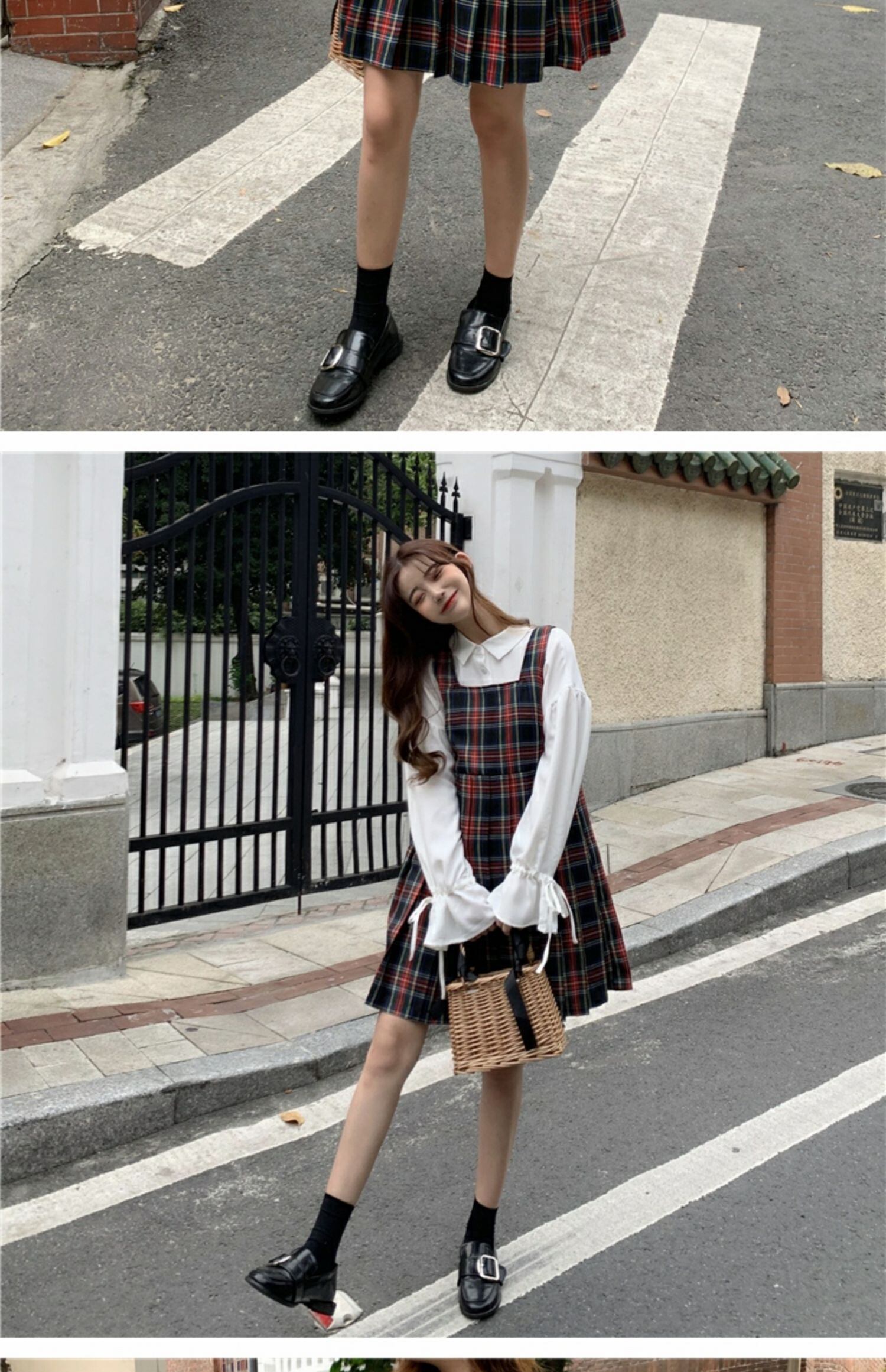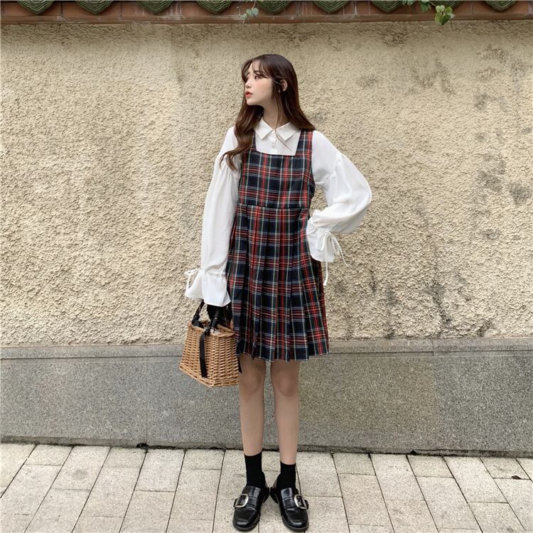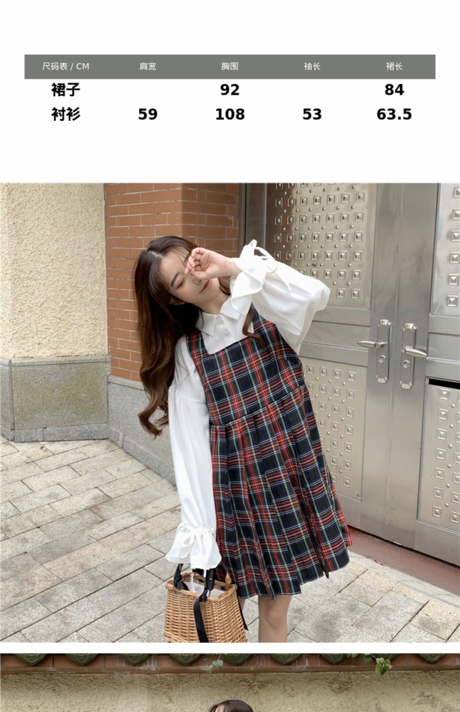 薄手のスカート2020年春秋新作女子学生ワンピースプリーツストラップスカートシャツスモールフレッシュ 萌量不足96205886252