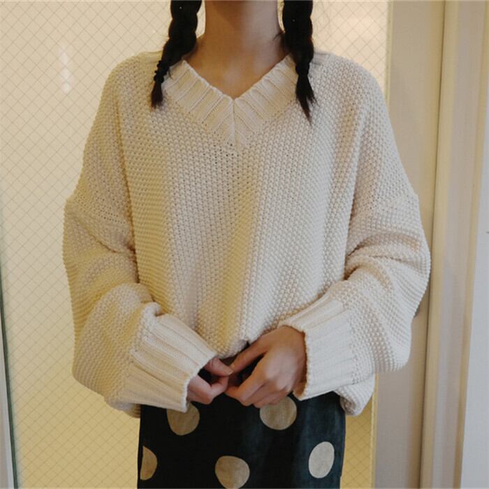秋冬eseVネックニットセーター女性ルーズウェアアウターウェア2020新秋長袖秋トップ怠惰 萌量不足32580835784