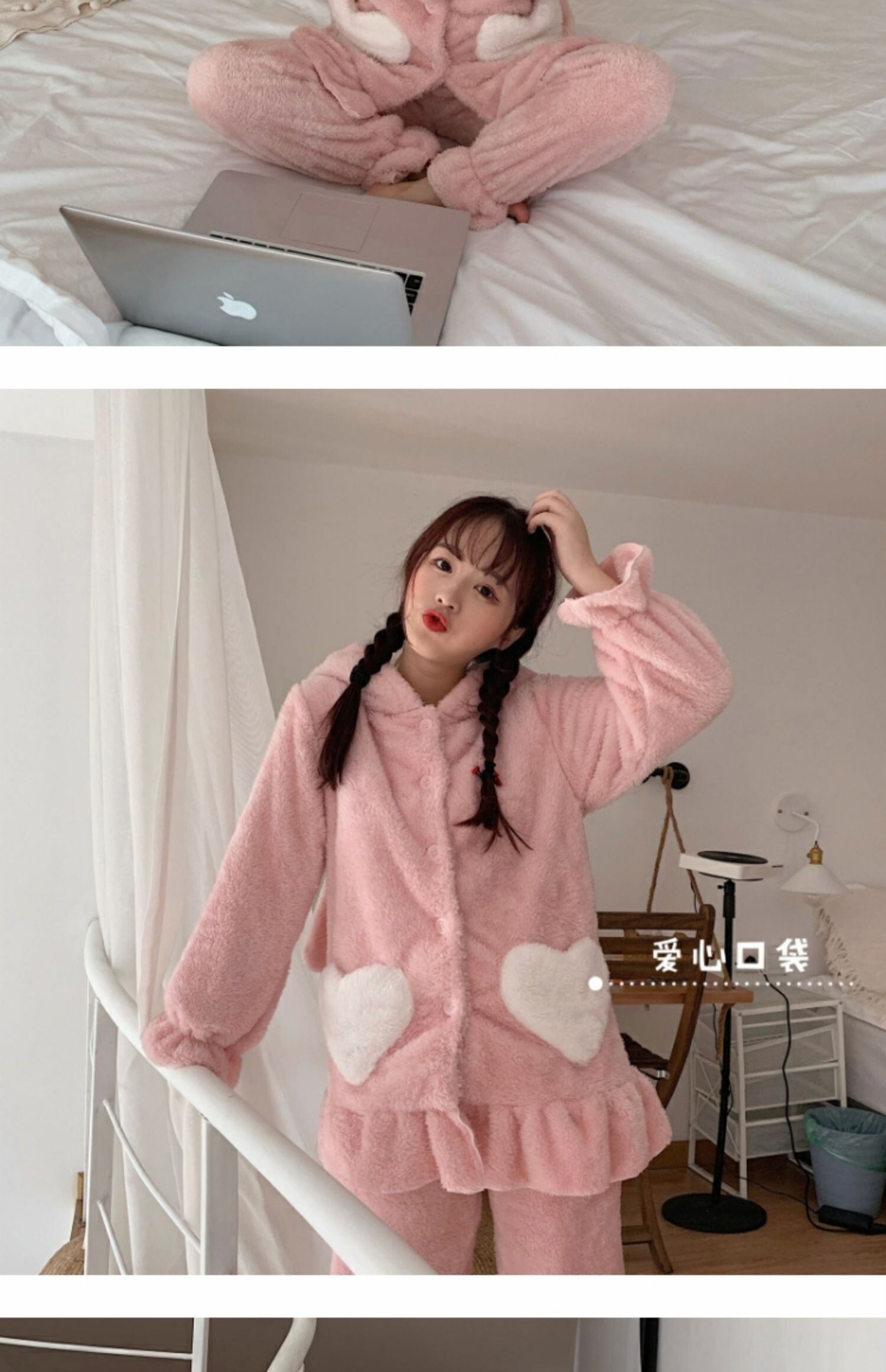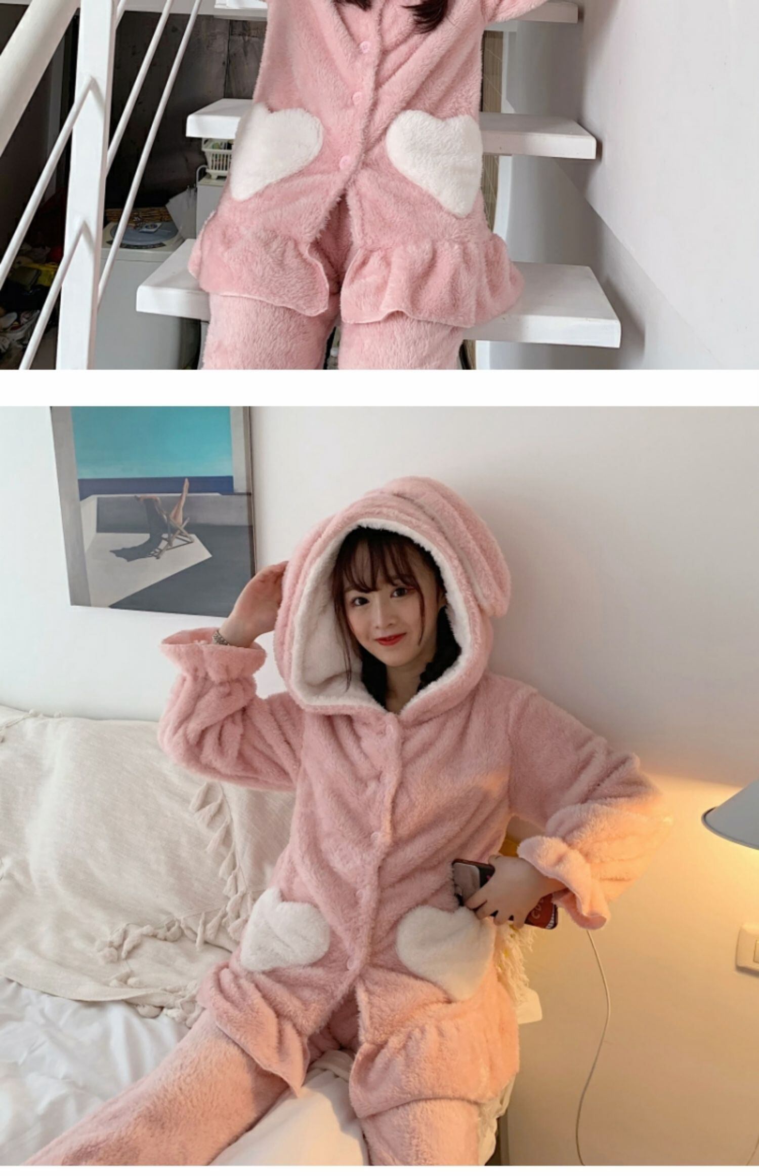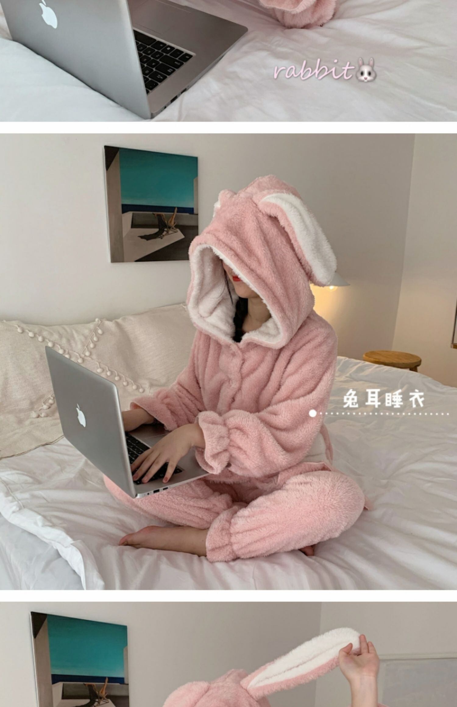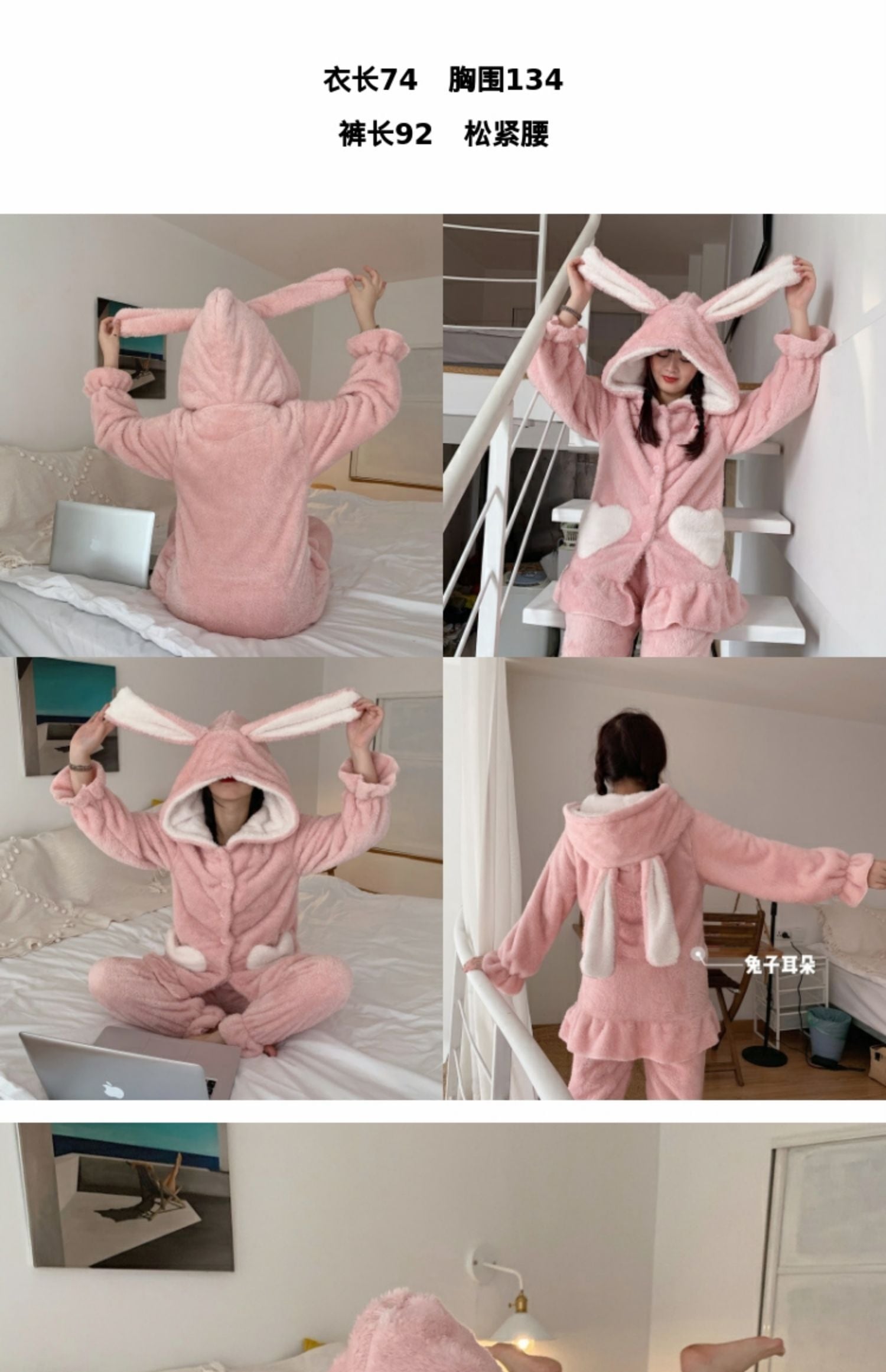 冬のパジャマ女性の秋と冬の肥厚とベルベットの学生の耳春と秋のホームサービススーツ漫画アニメはかわいい外で着用することができます 萌量不足46632760831