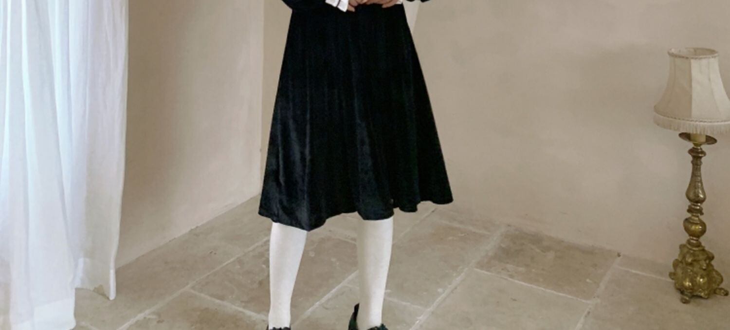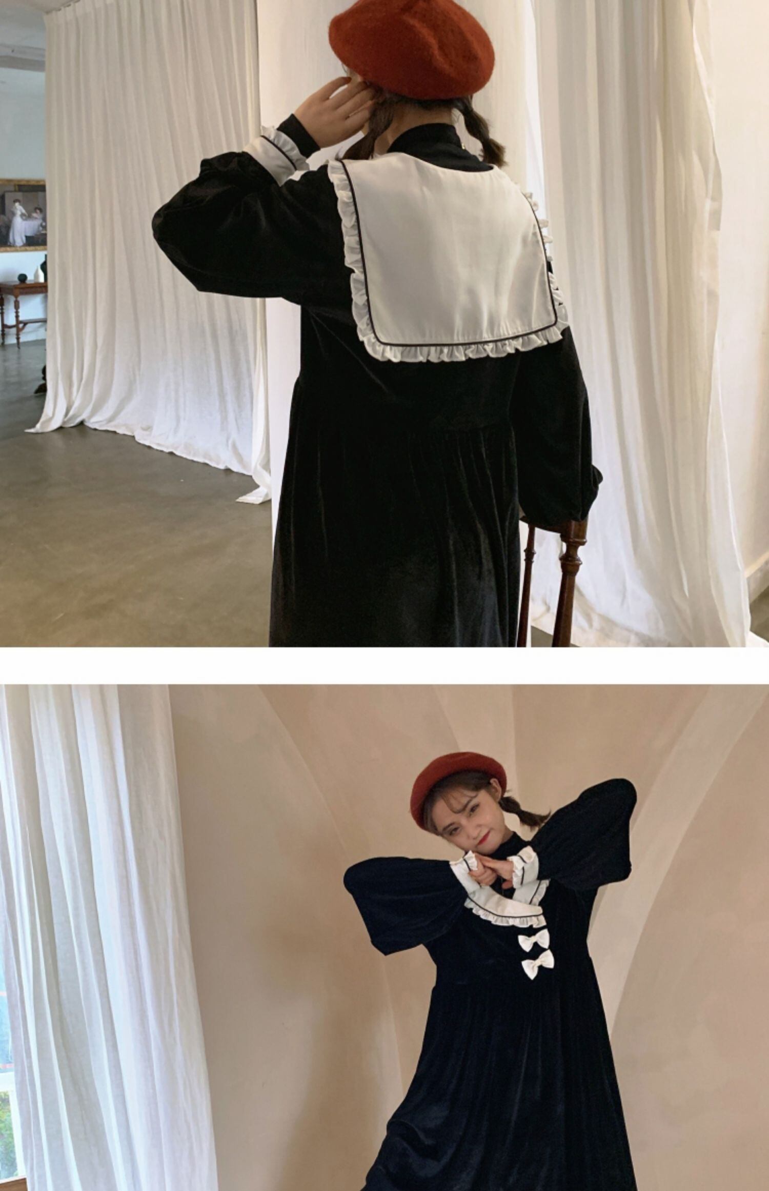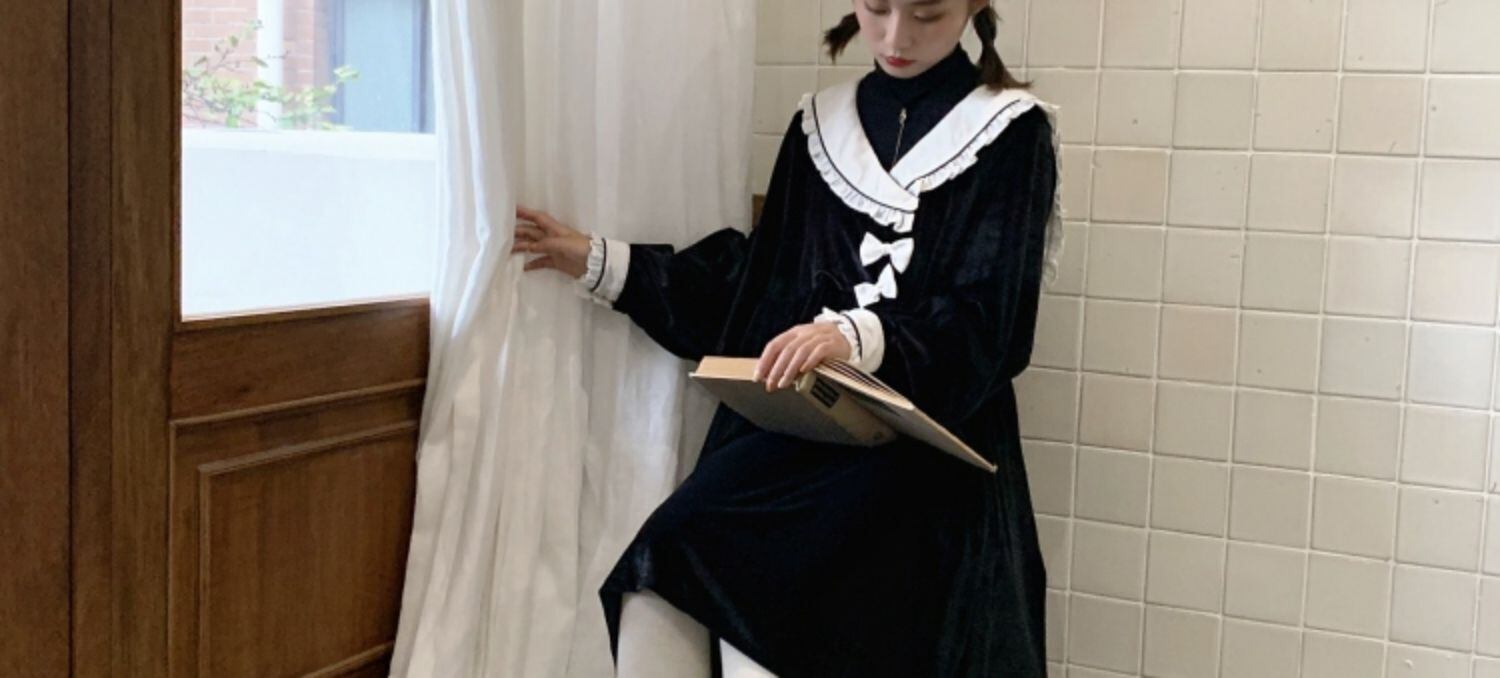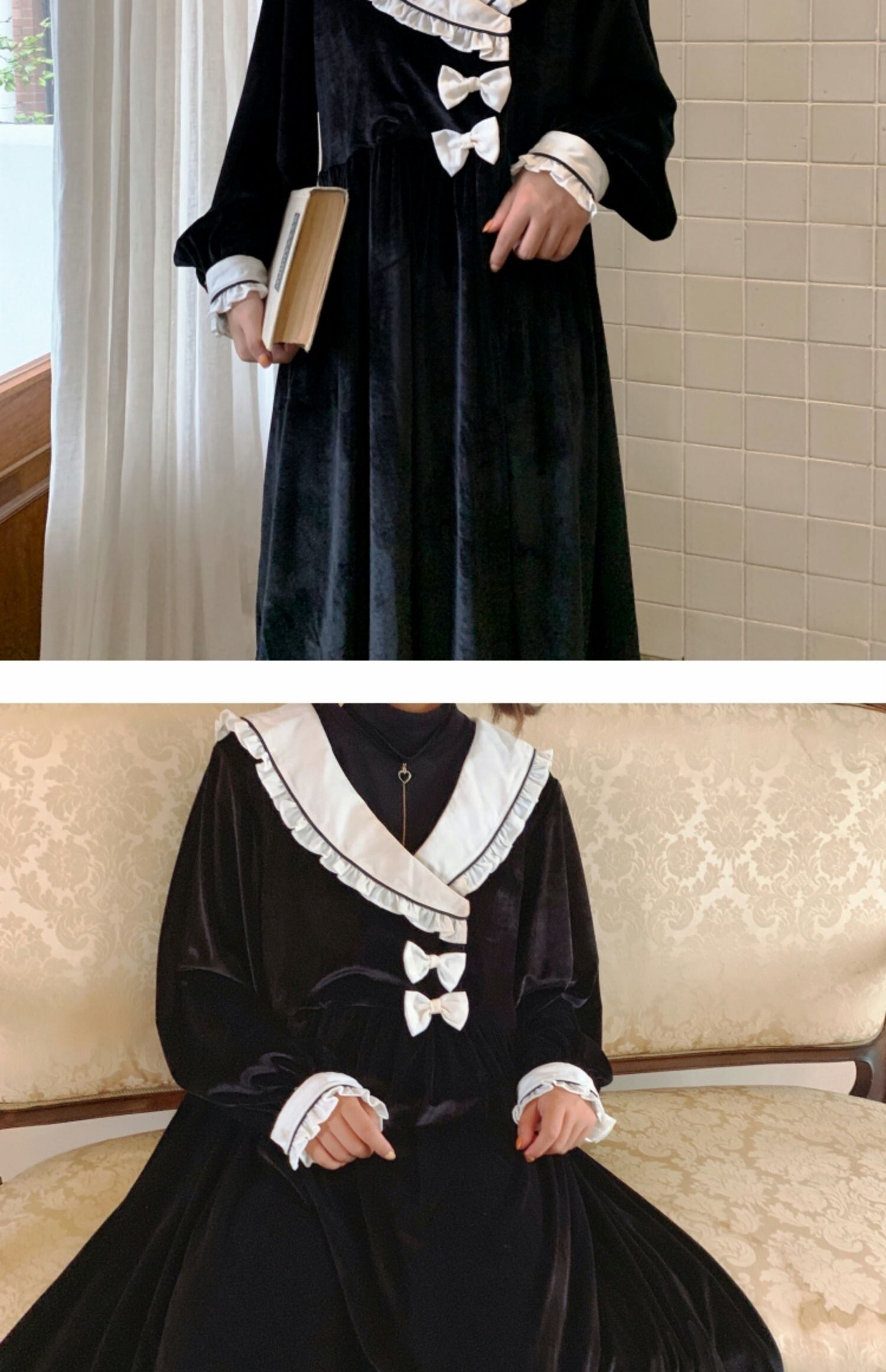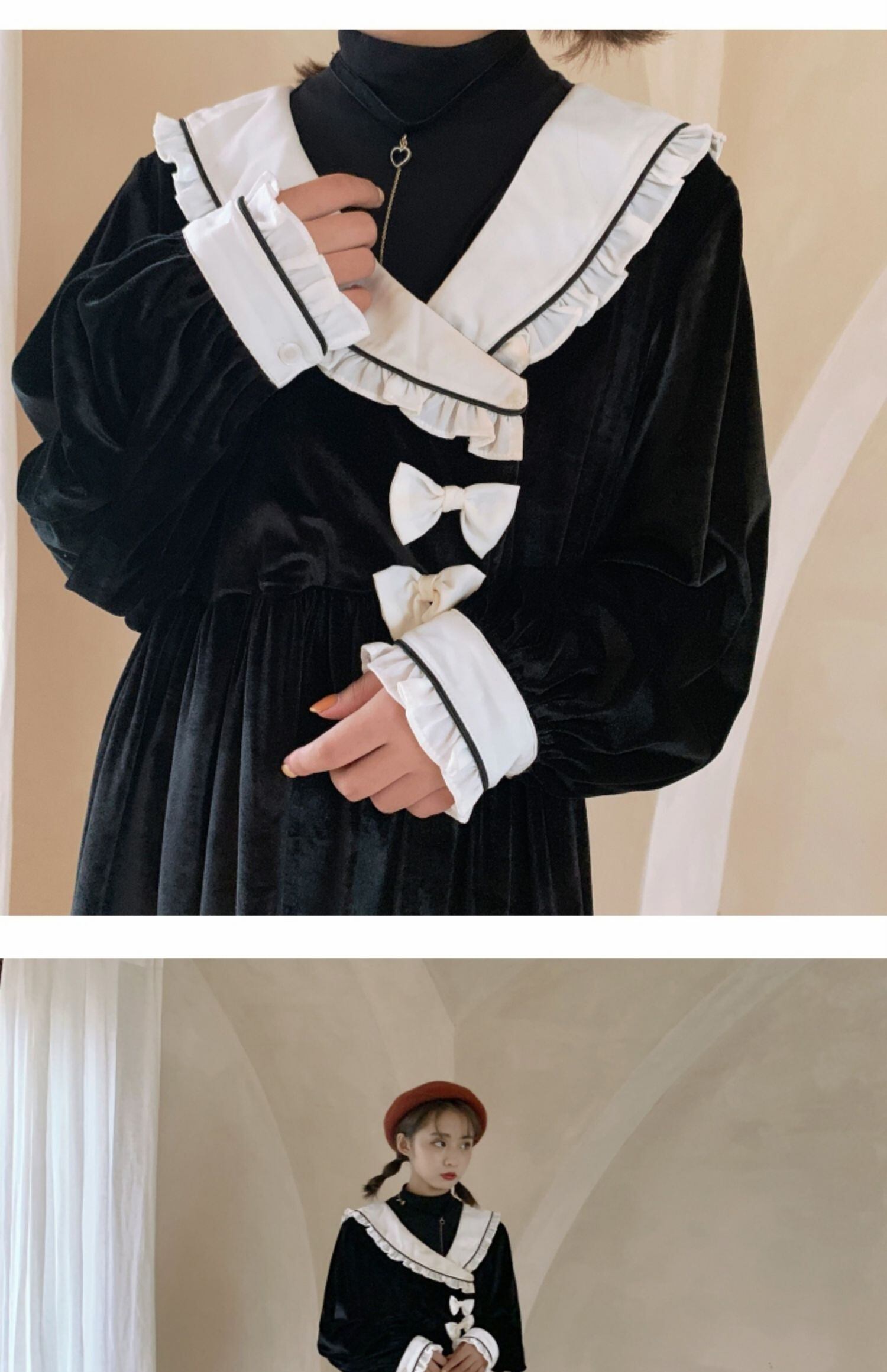 2020年春秋新作レディースダークフューネラルハイウエストスカートボウカレッジスタイルロングドレストレンド 萌量不足91270604096