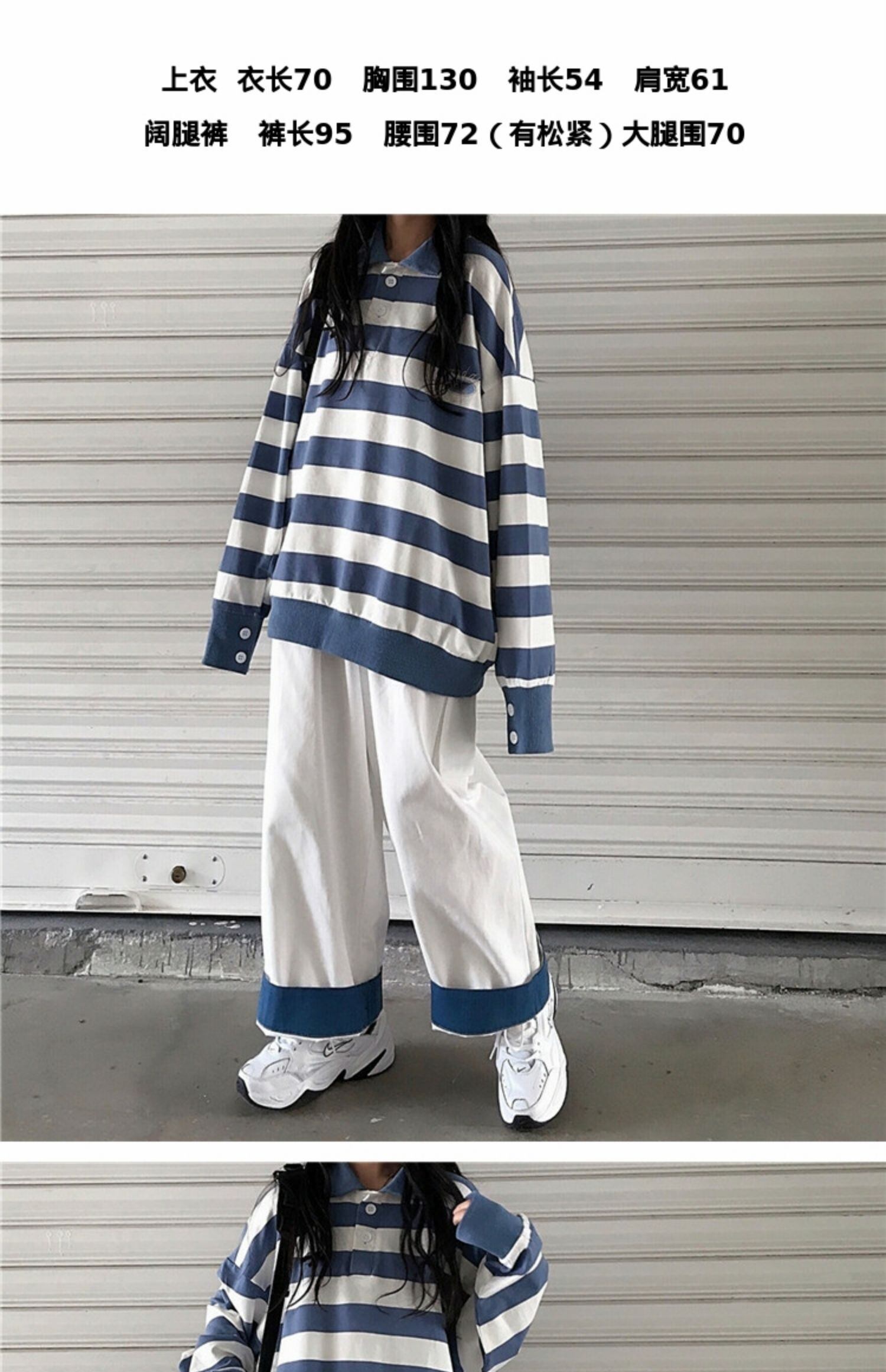 ショートオータムスーツレディース2020新しいストライプポロカラートップスは薄いオーバーオールでファッショナブルなツーピーストレンド 萌量不足91805848546