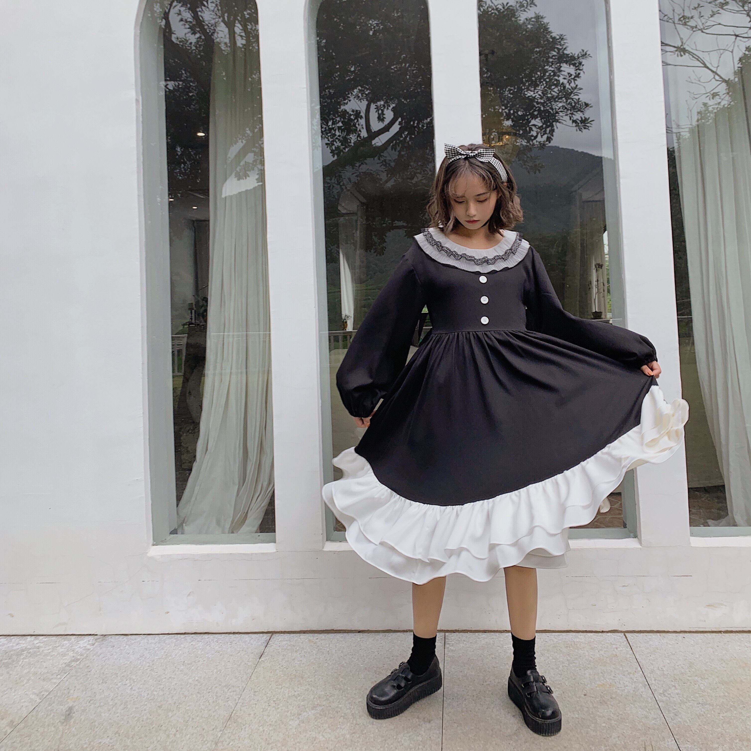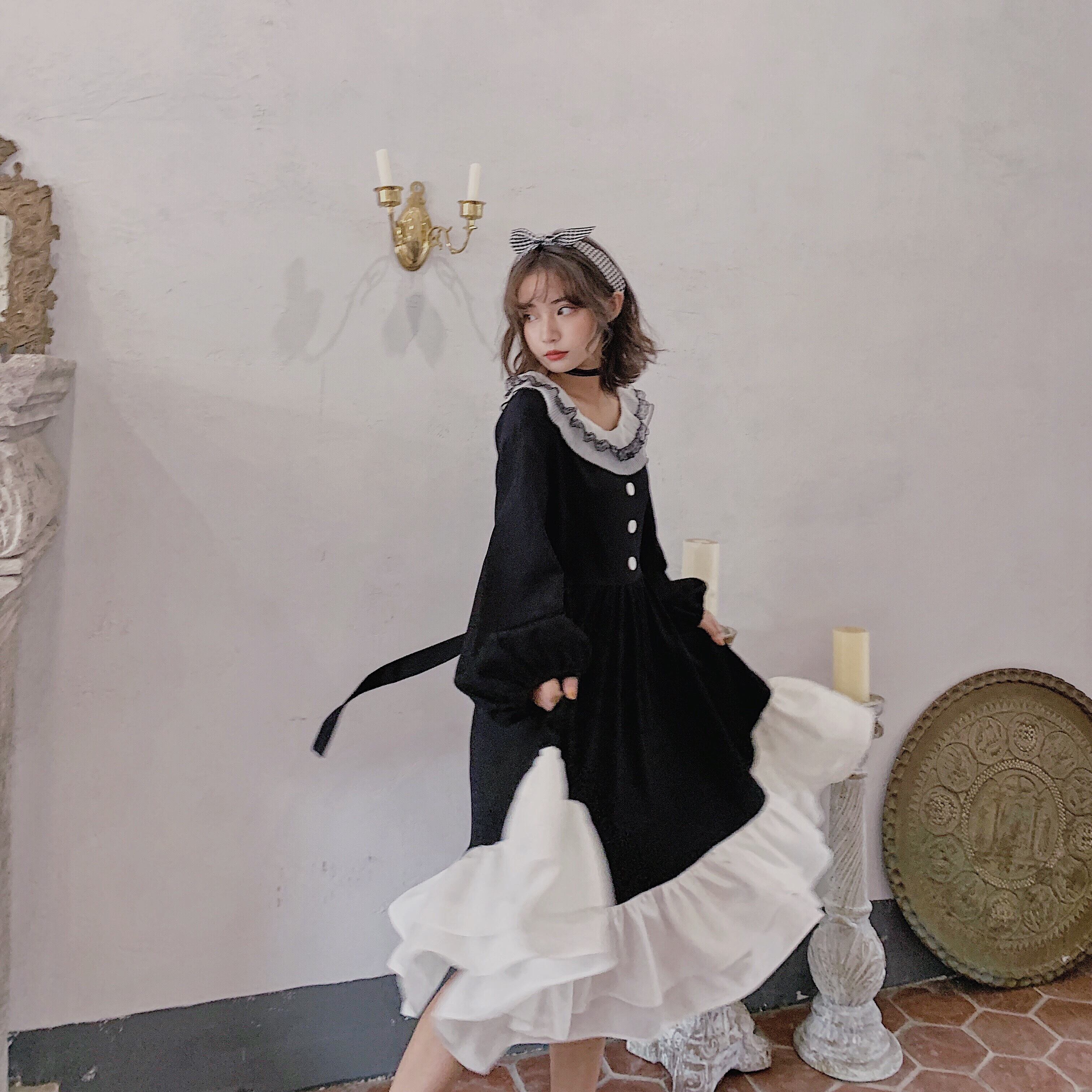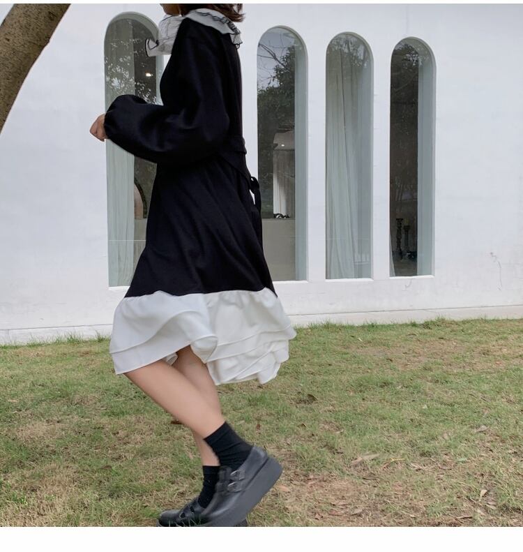 2020年秋新しい女性eseダークミドル丈ハイウエスト春と秋の穏やかな風ダークフレンチドレス 萌量不足27700982460