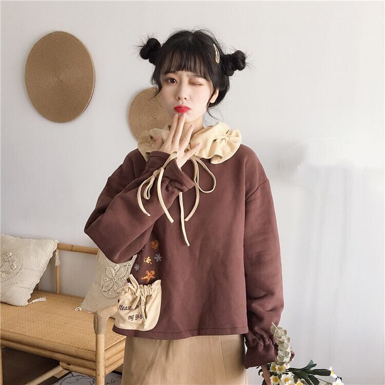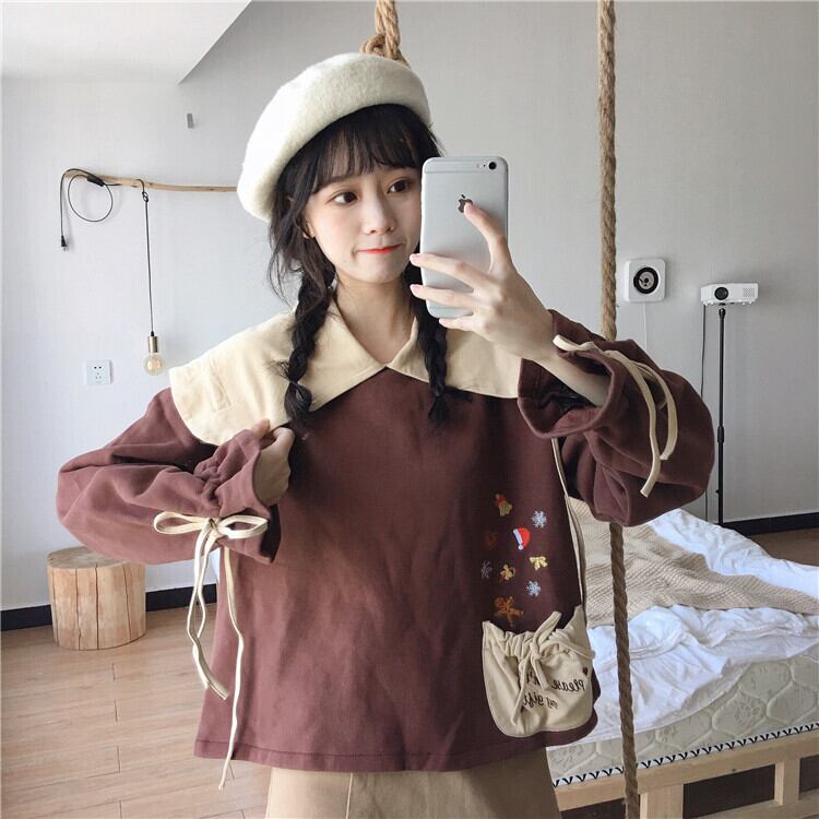 かわいいプラスベルベットパッド入りセーター女性の秋と冬は長袖を着用2020新しいワイルドルーズレースプルオーバートップ 萌量不足80832726854