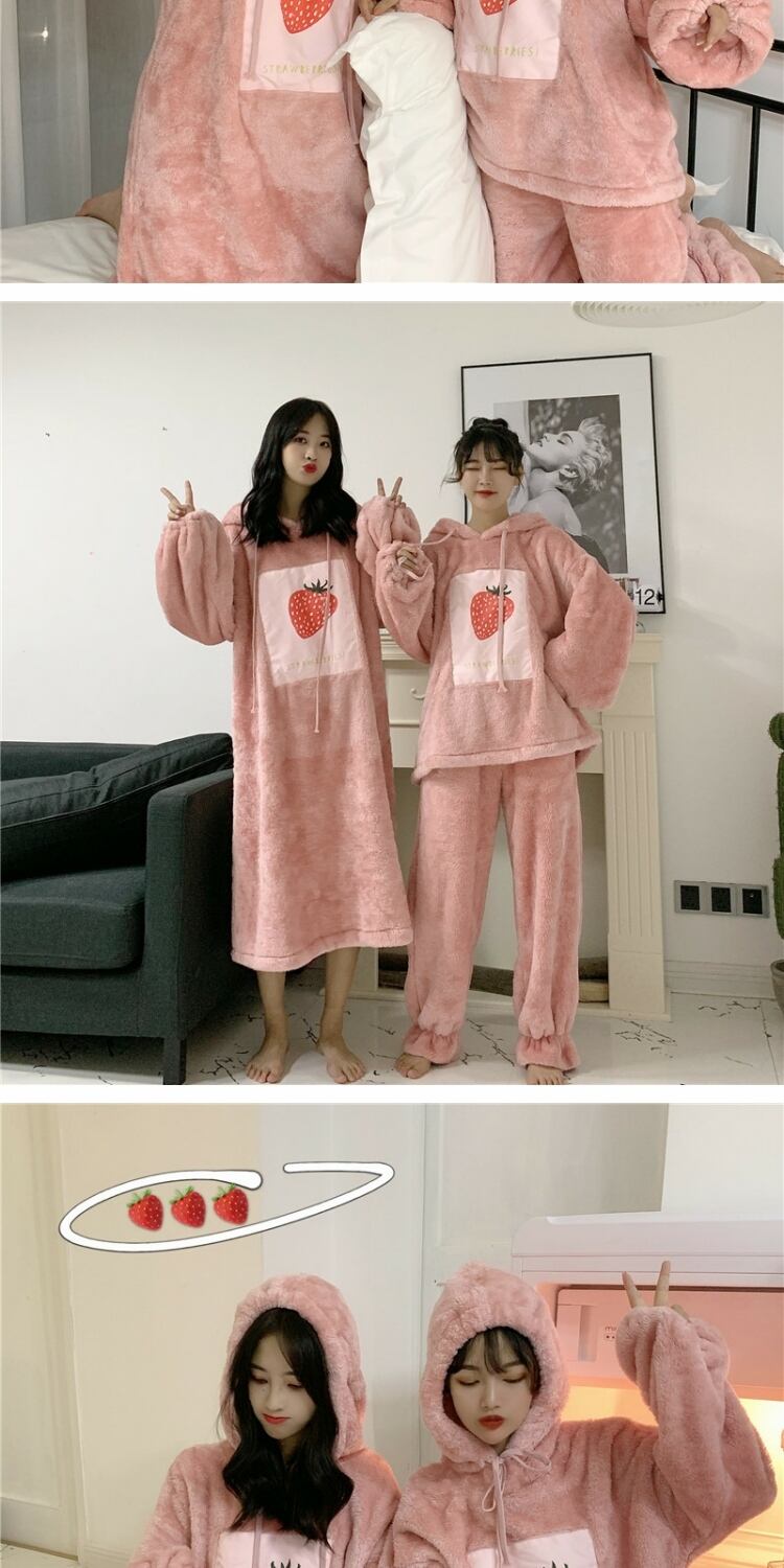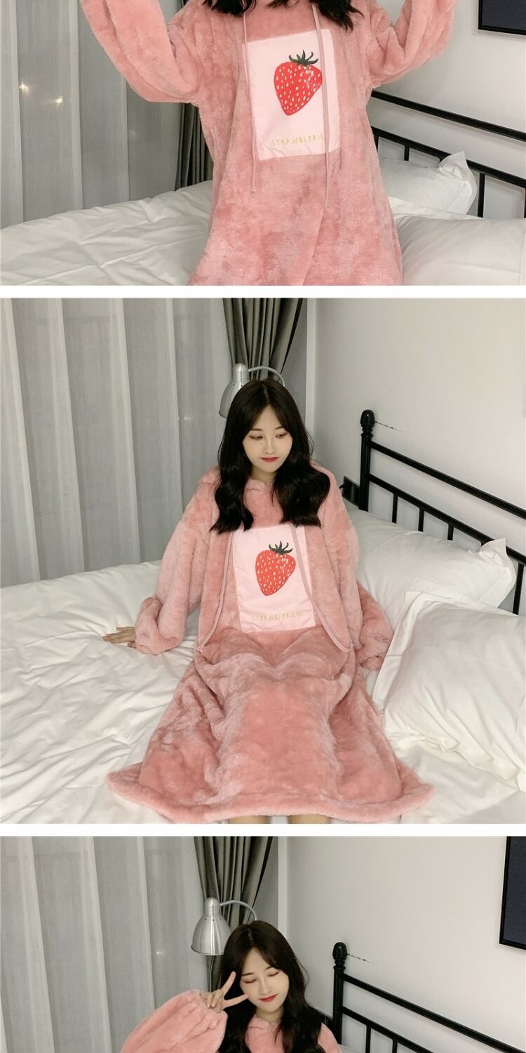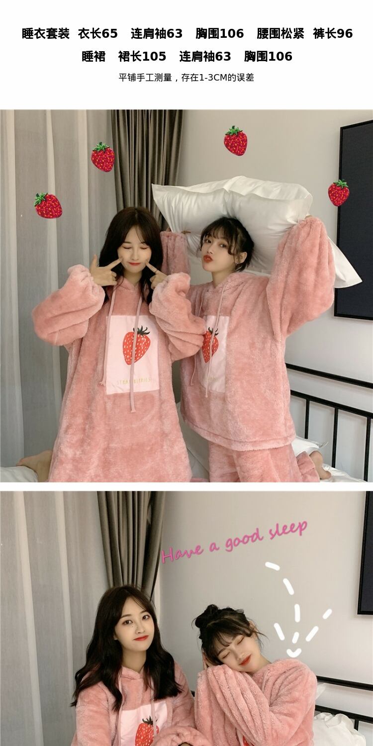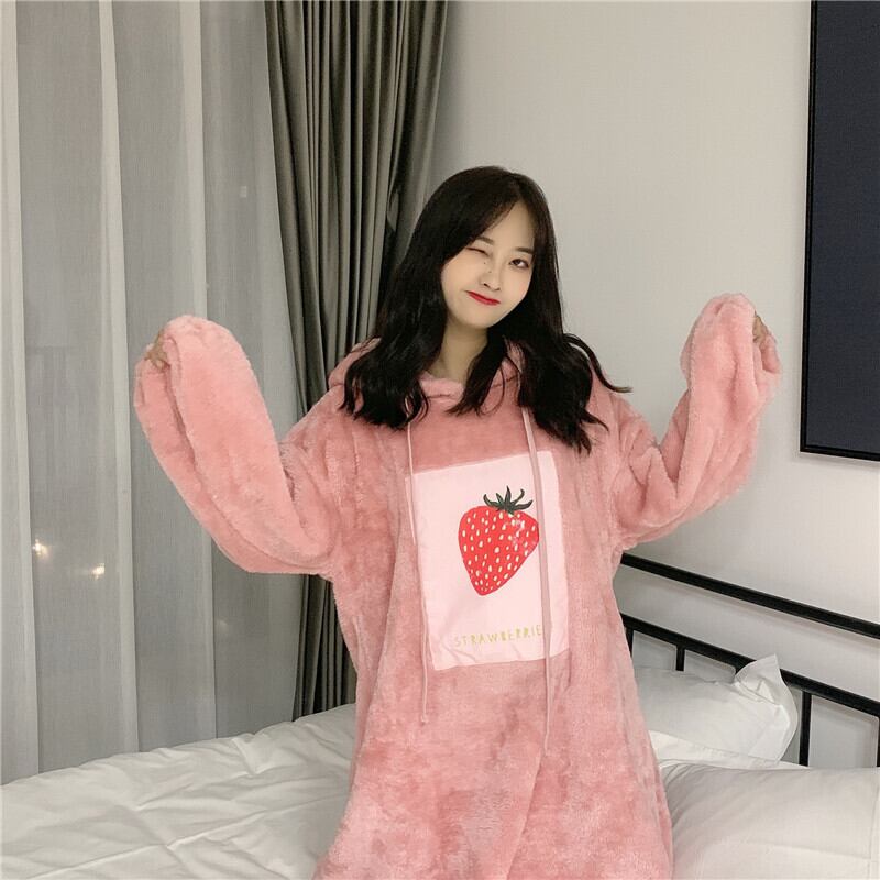 かわいいフード付きパジャマ女性の2020年秋冬新しいゆったりとした冬の家庭用ネグリジェかわいいプラスベルベットの厚み 萌量不足98193303207