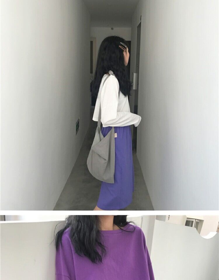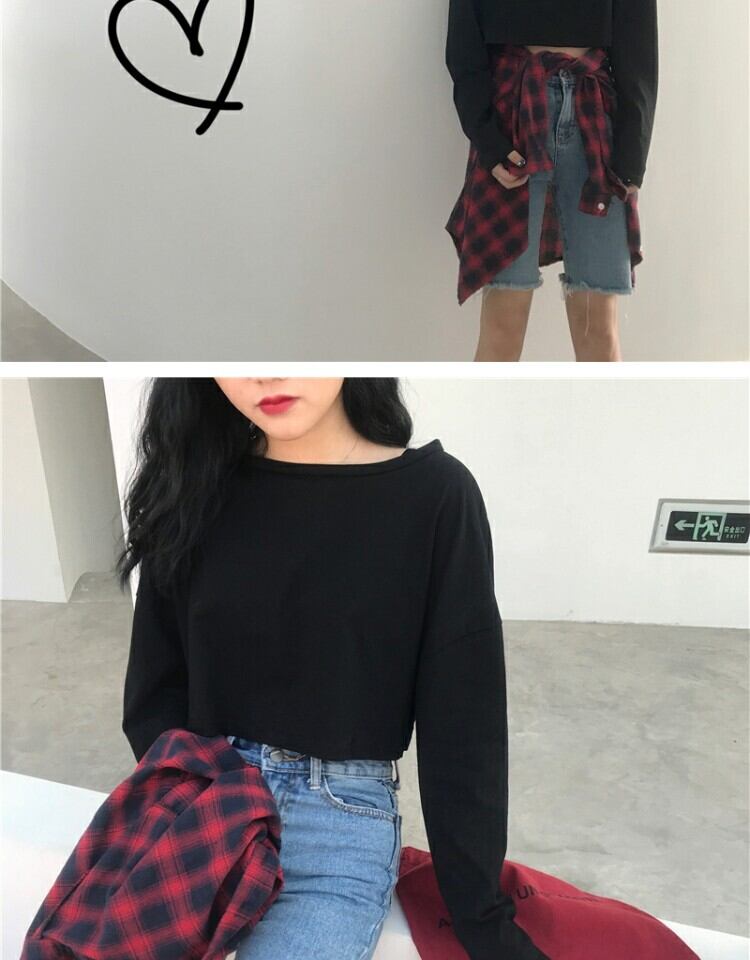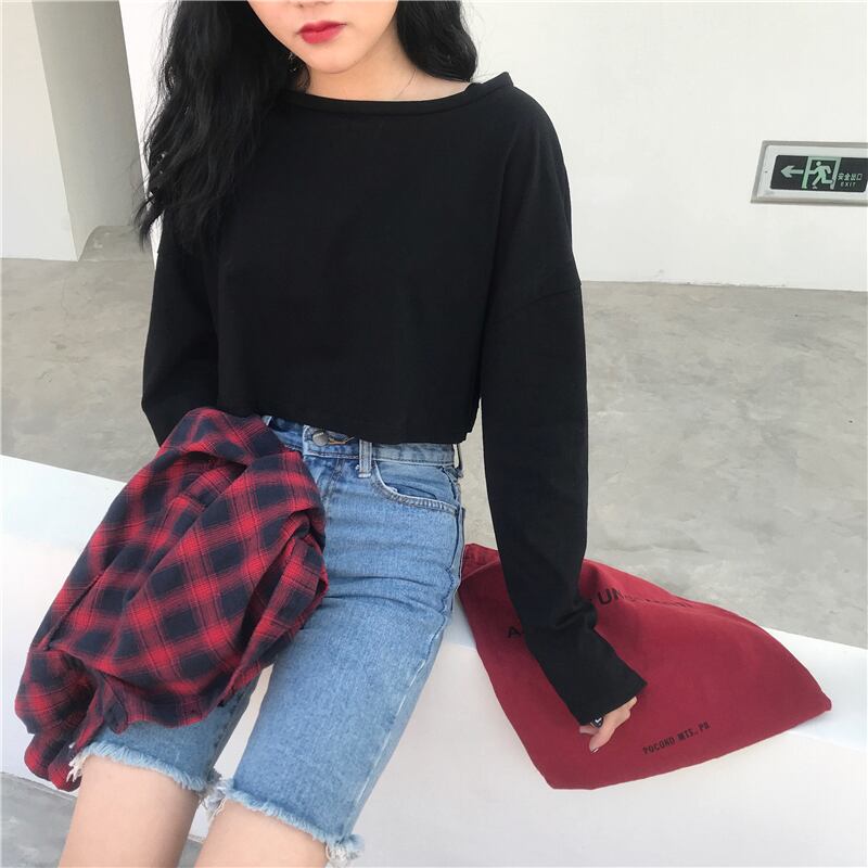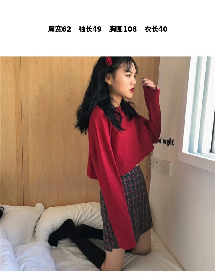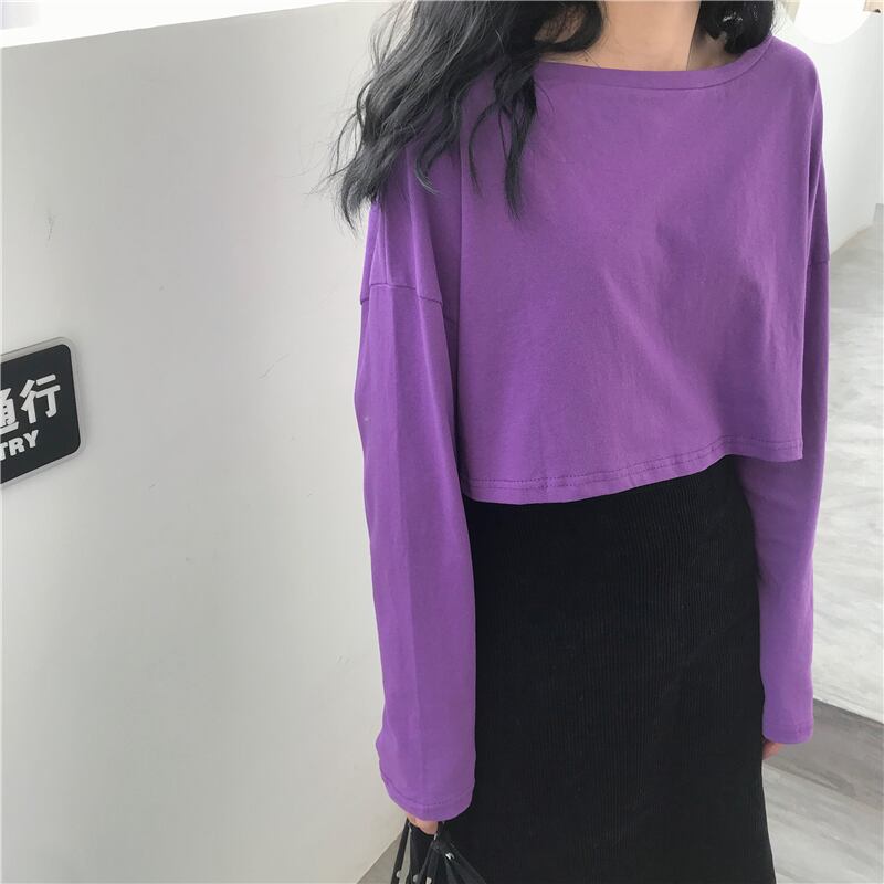 ソリッド カラープルオーバー Tシャツ シャツ ルーズ薄手トップス スプリング ロング 春物 ソリッドカラー 萌量不足15401681946