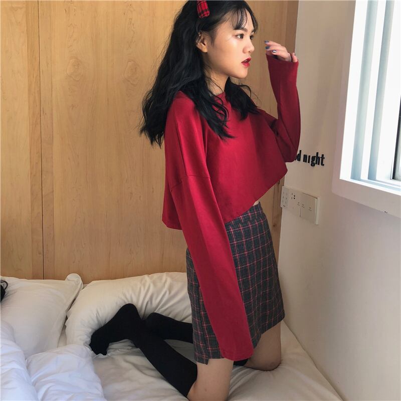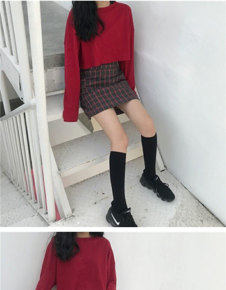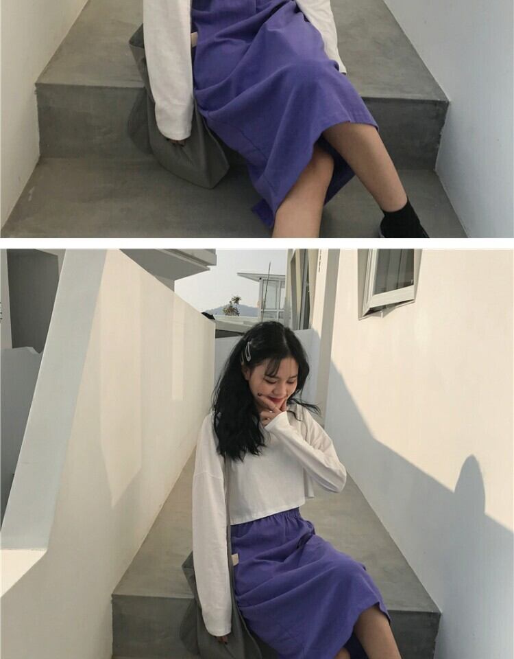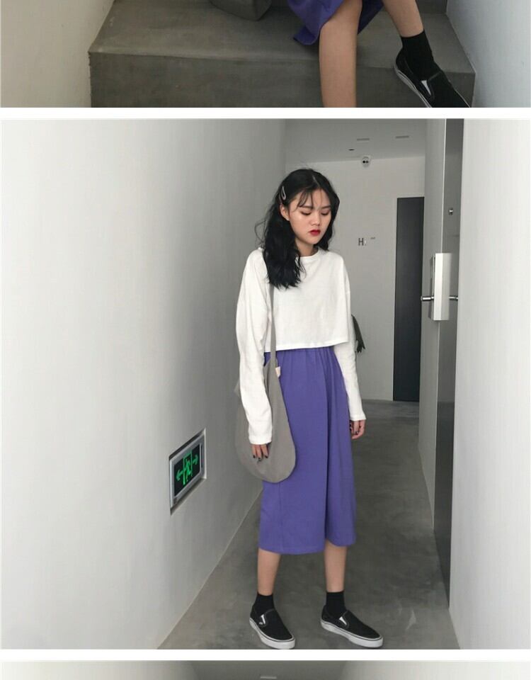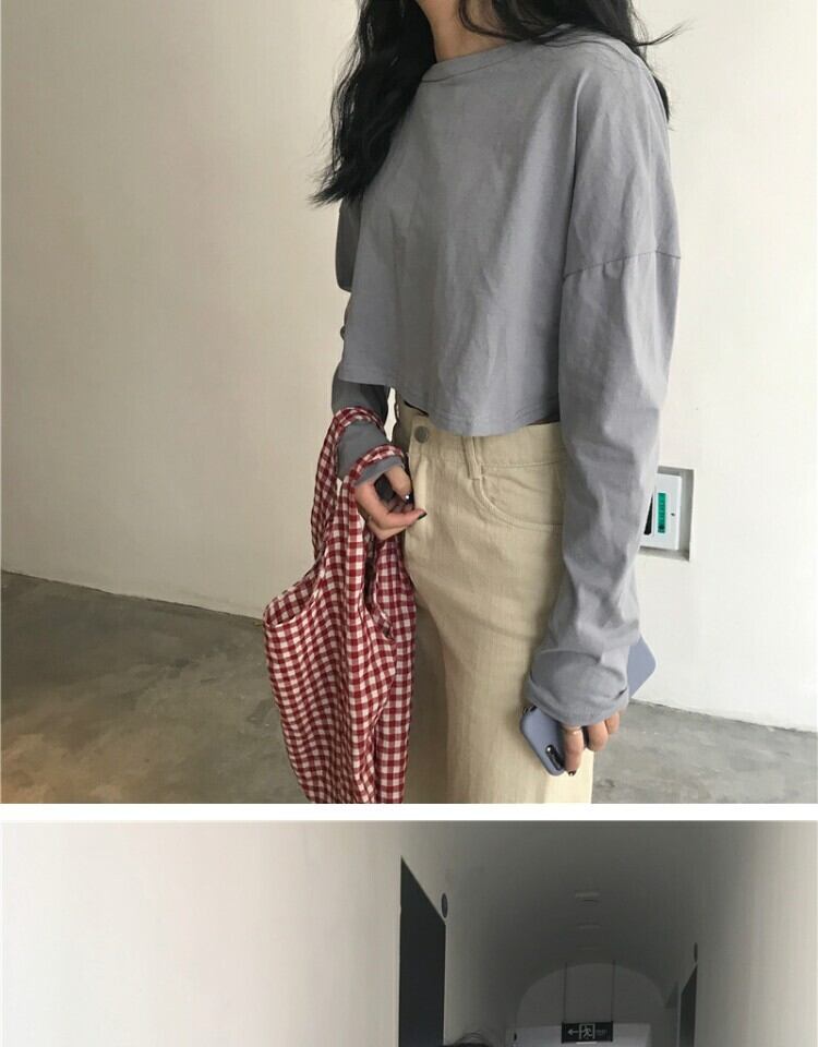 ソリッド カラープルオーバー Tシャツ シャツ ルーズ薄手トップス スプリング ロング 春物 ソリッドカラー 萌量不足15401681946