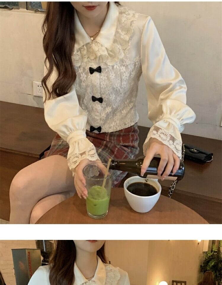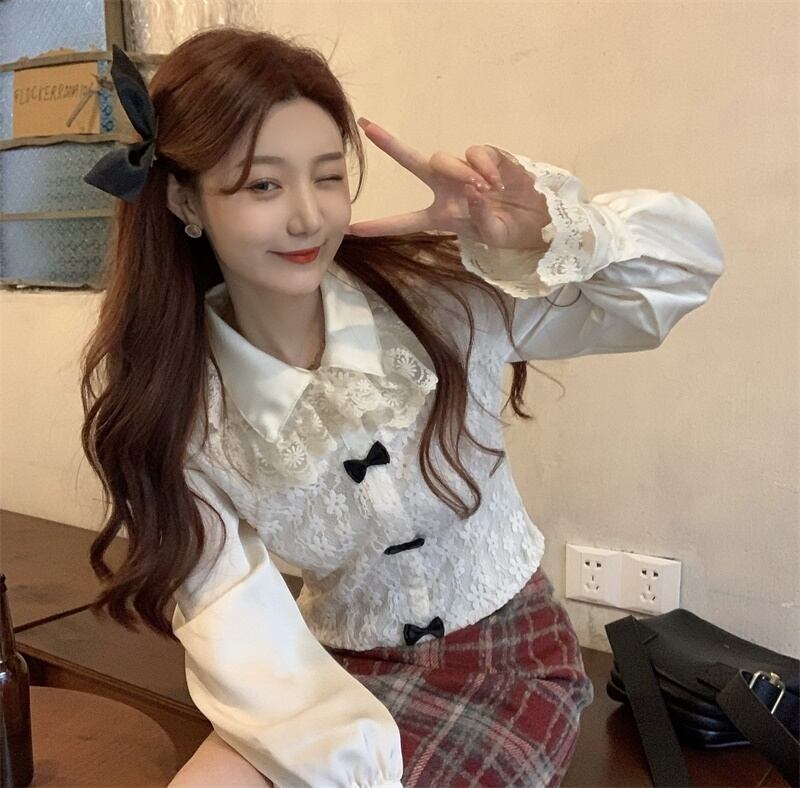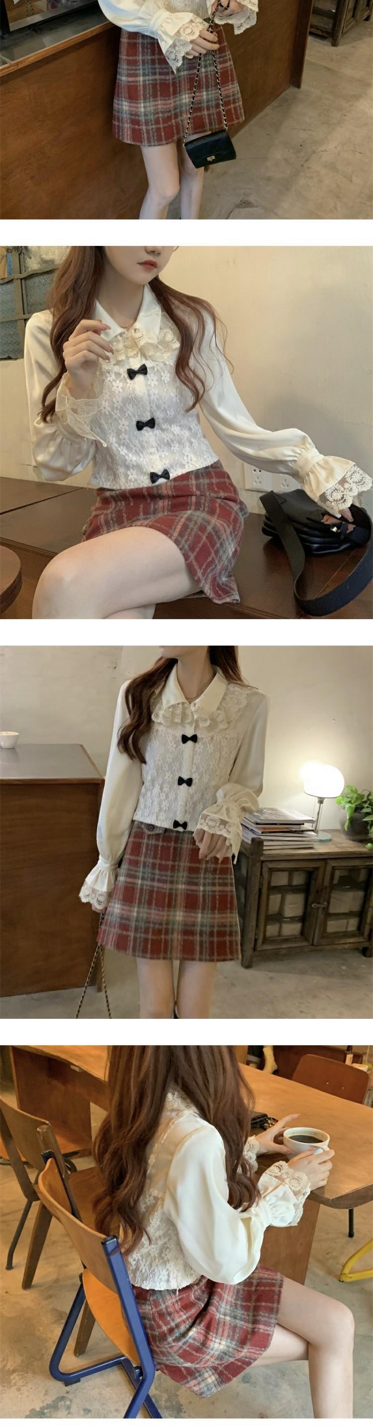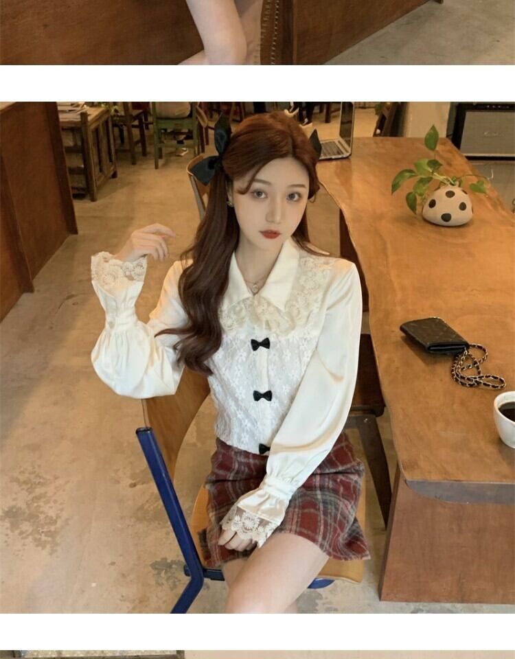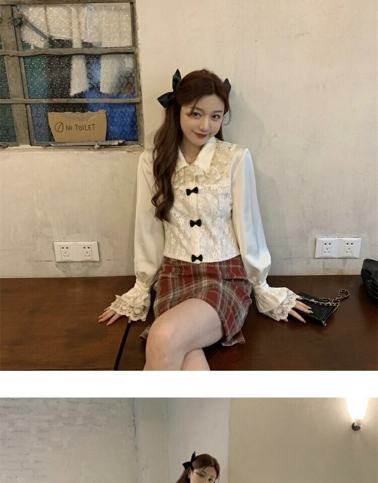 スプリングレースシャツ 格子柄スカート ストリート 大人ガーリー スウィート キュート カジュアル 春物 ステッチ 萌量不足84949647308