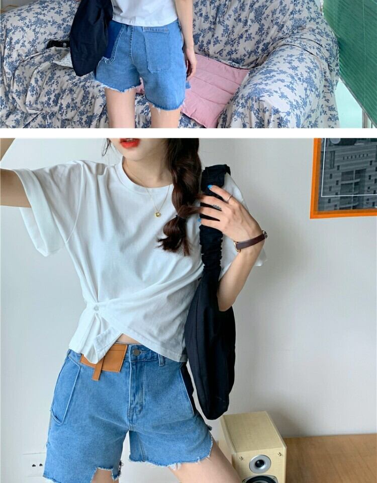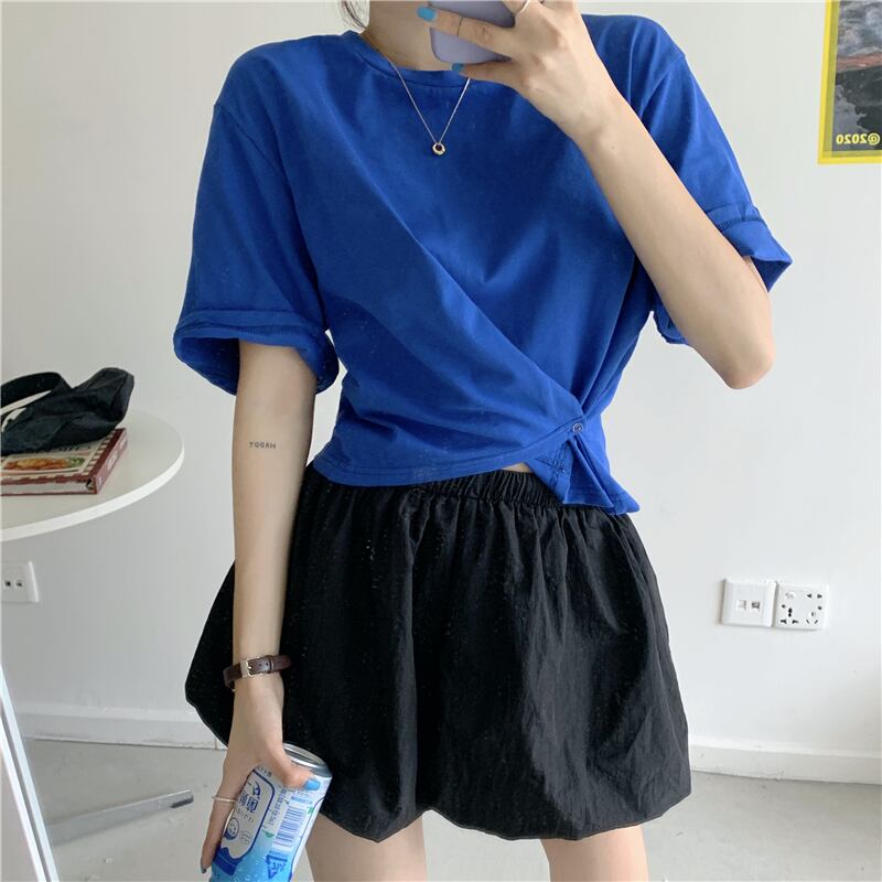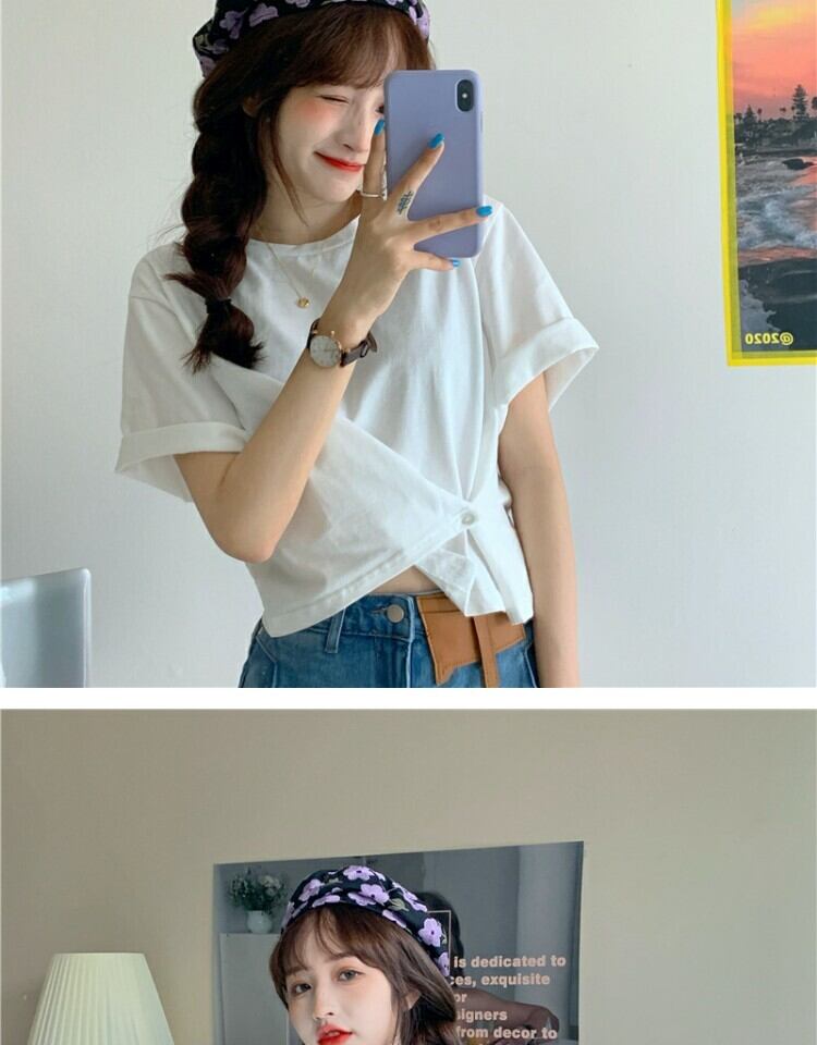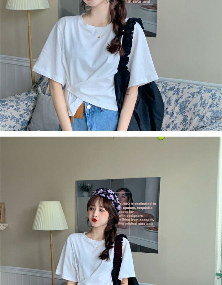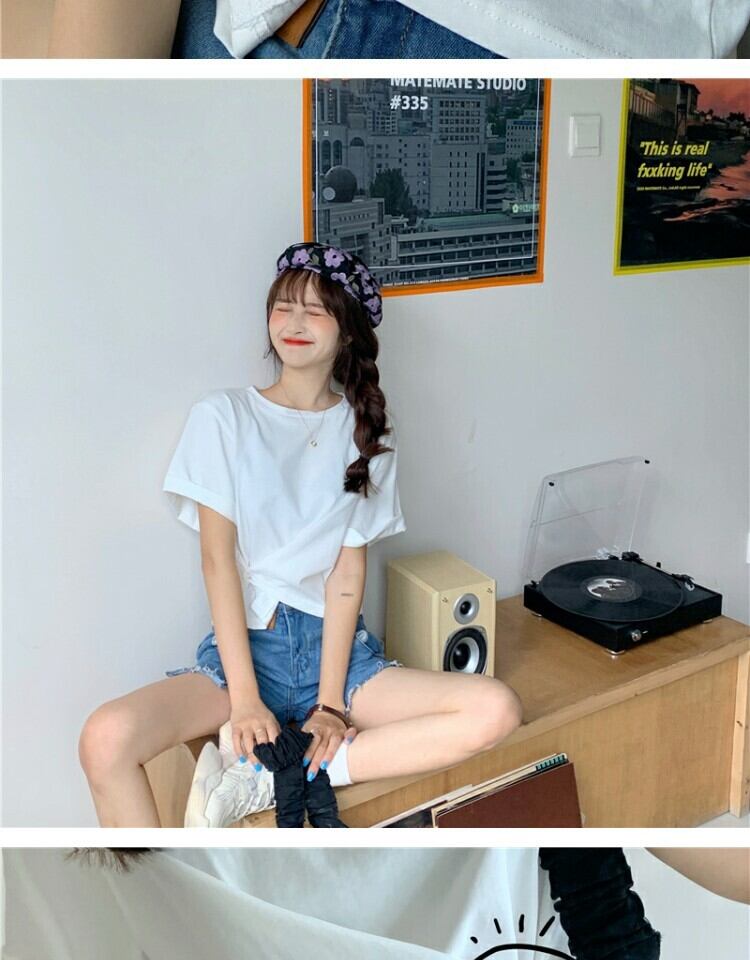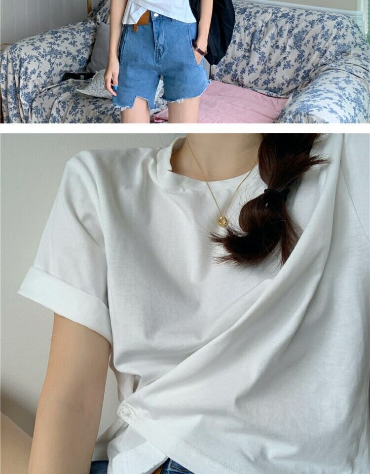 スタイルブラウス ソリッド カラーショートホワイトTシャツ サマー 夏物 ソリッドカラー 萌量不足42401464411