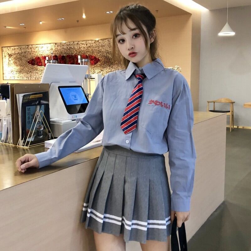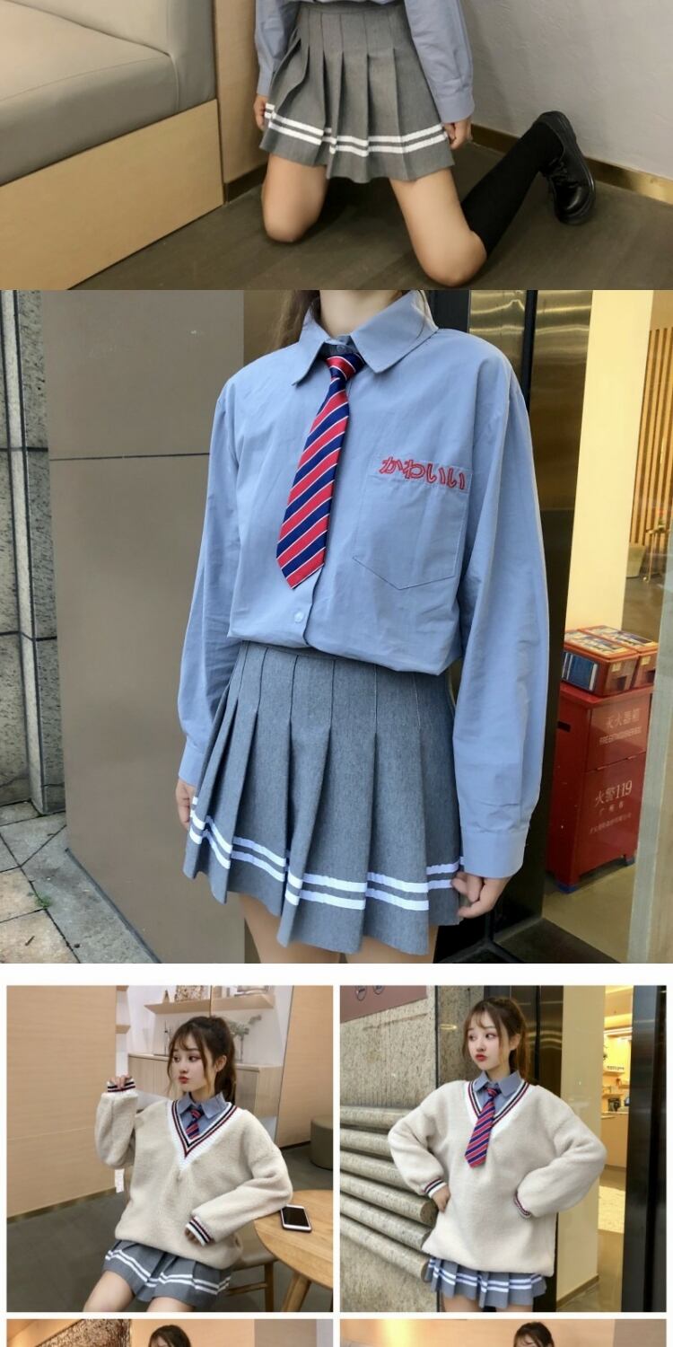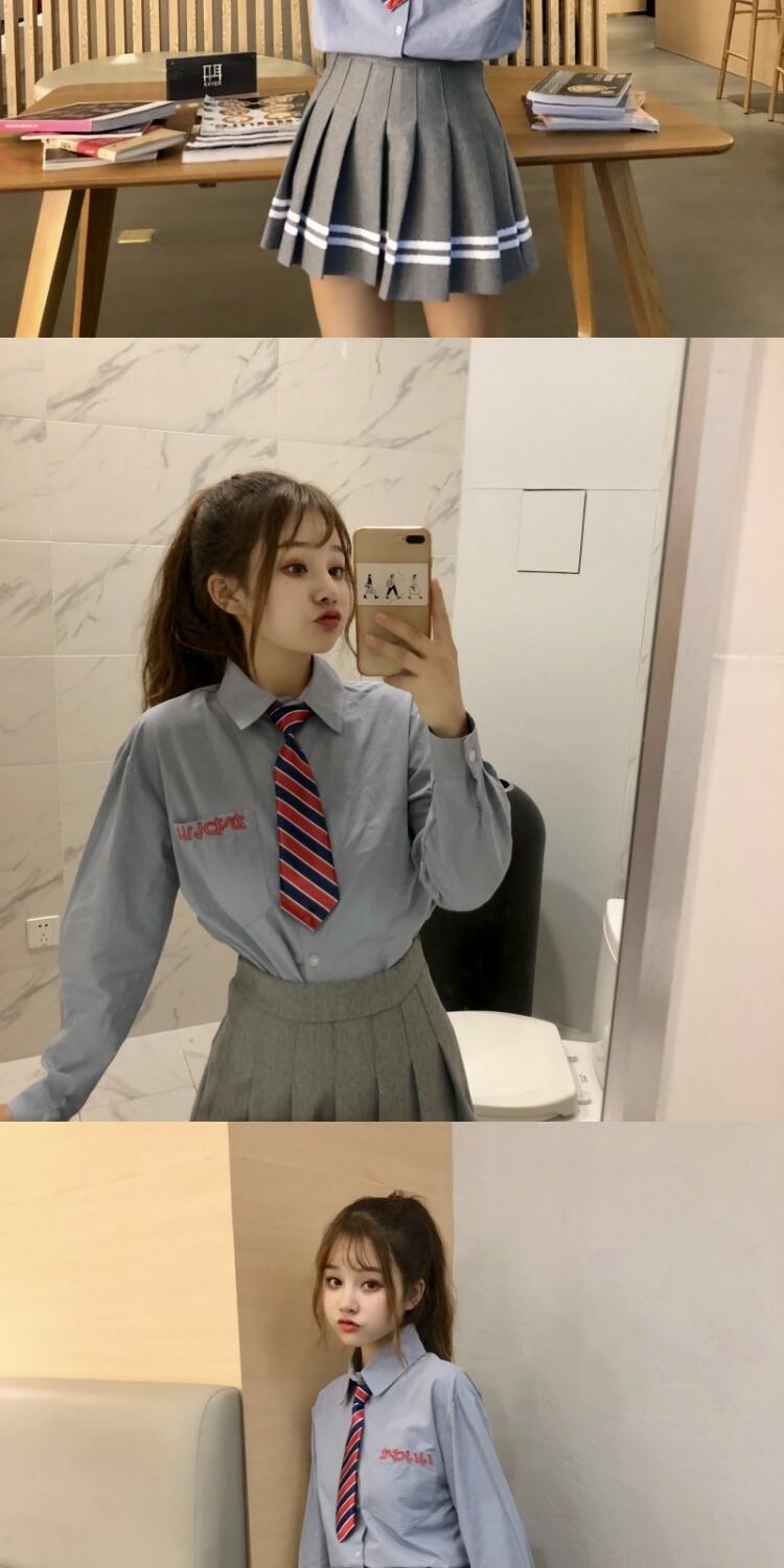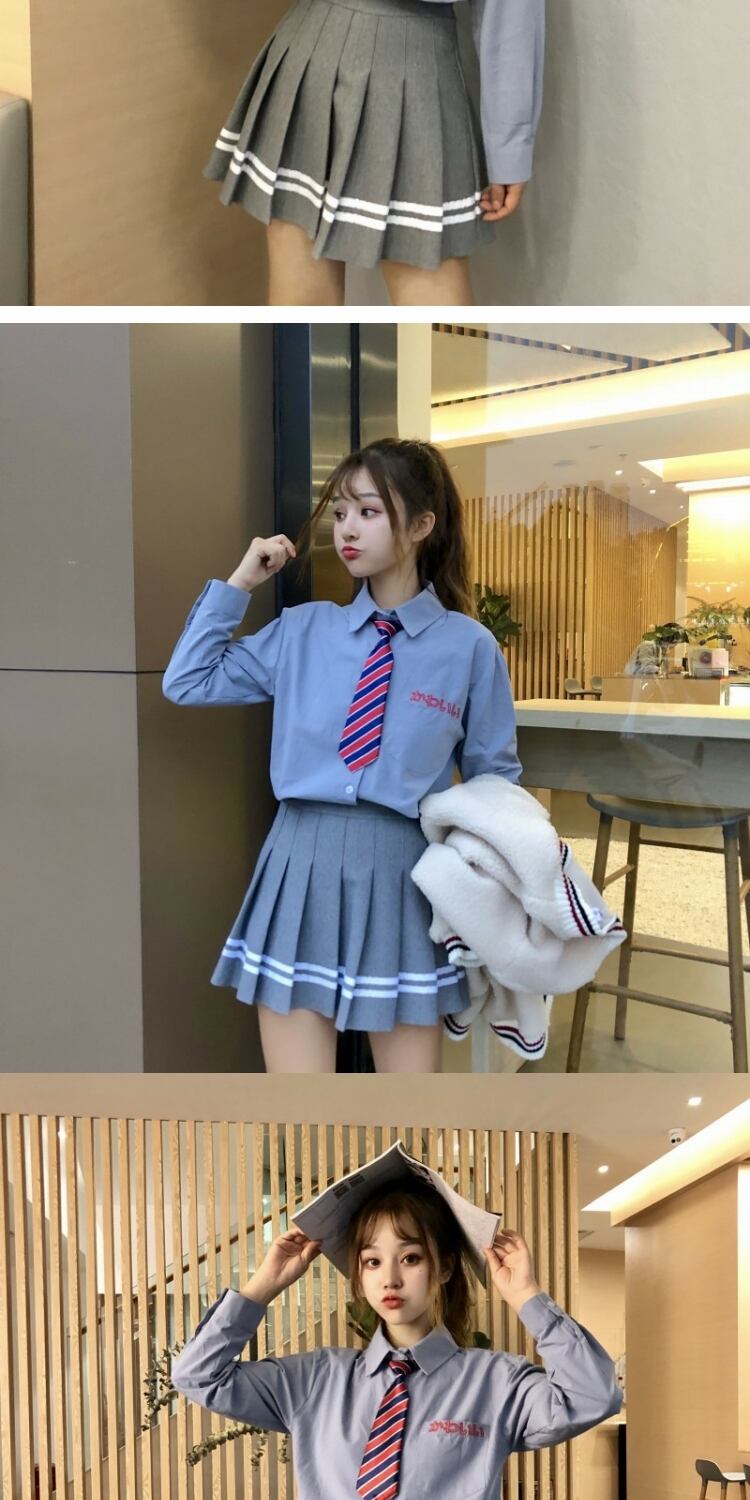 色:シングルブルーシャツ+ネクタイ,グレースカートシングルピース