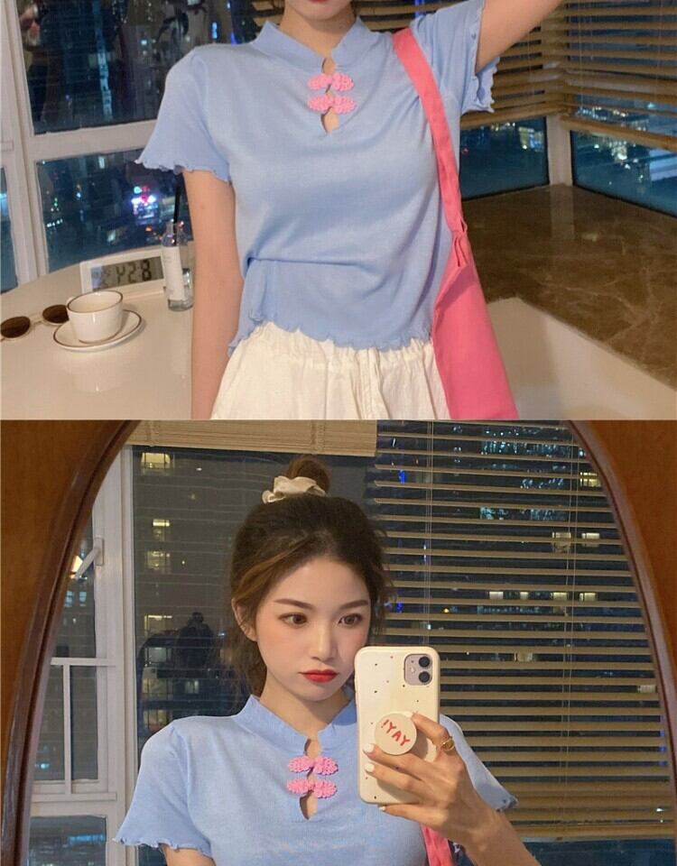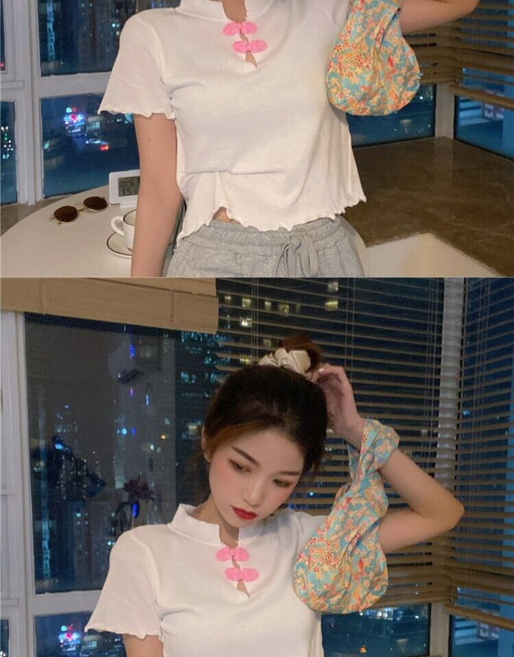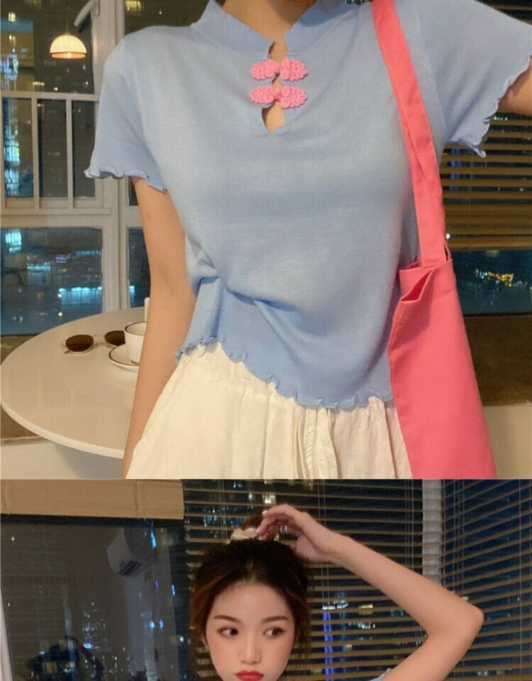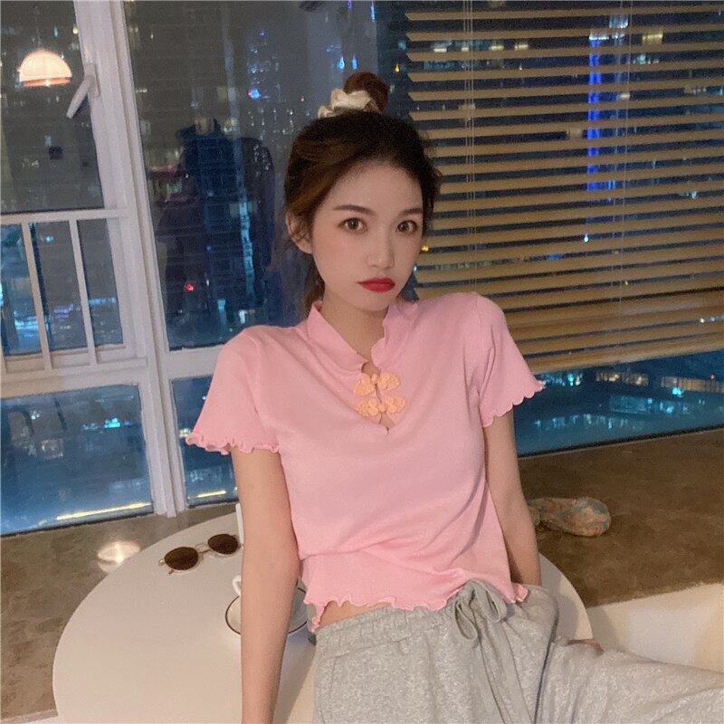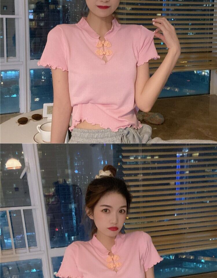 ボタンレースTシャツ シャツ レディースサマーカラーショートルーズ 大人ガーリー スウィート キュート カジュアル 夏物 ピュア 萌量不足55144038326