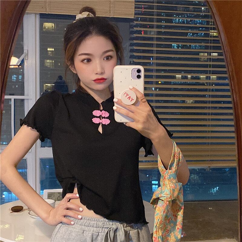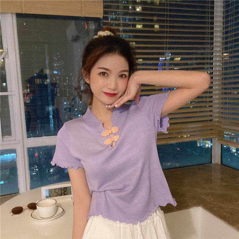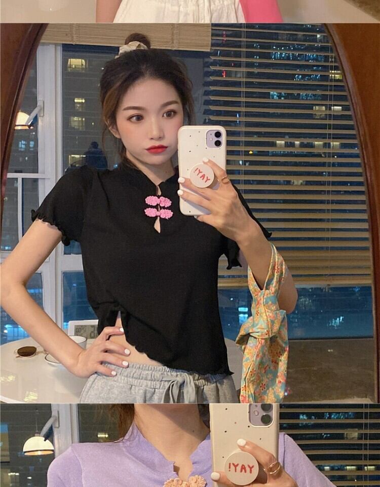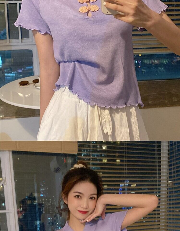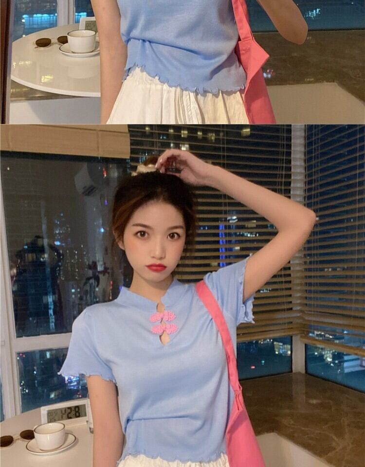 ボタンレースTシャツ シャツ レディースサマーカラーショートルーズ 大人ガーリー スウィート キュート カジュアル 夏物 ピュア 萌量不足55144038326