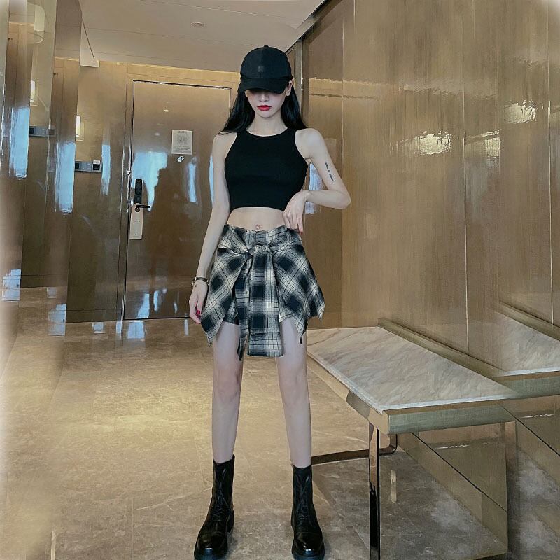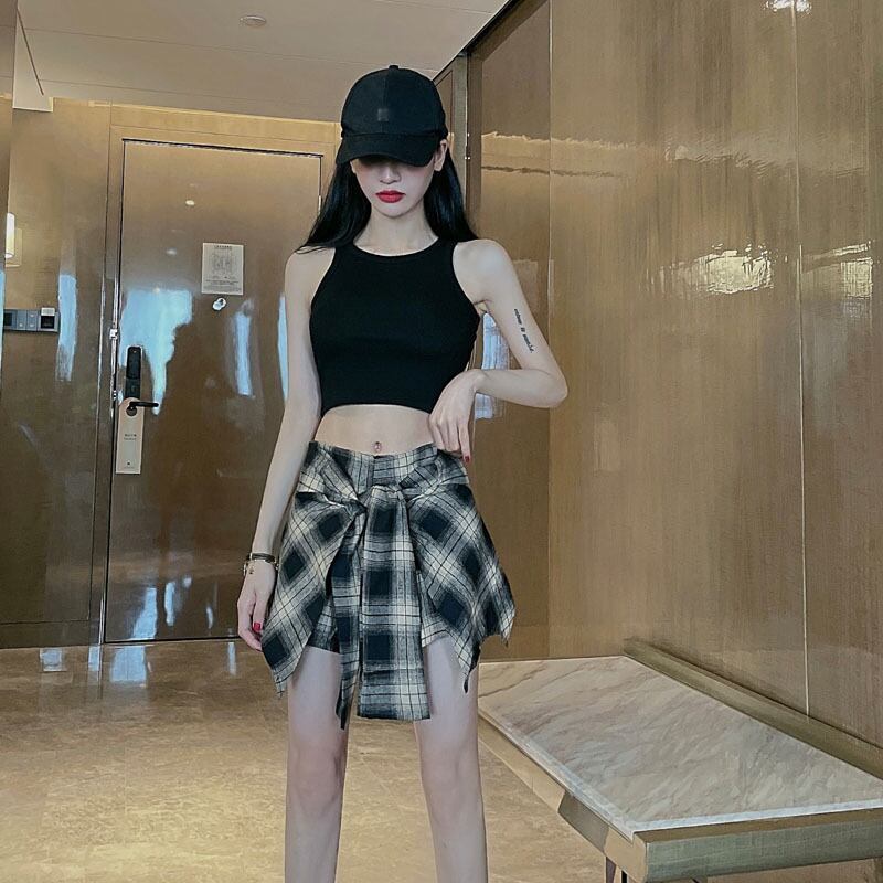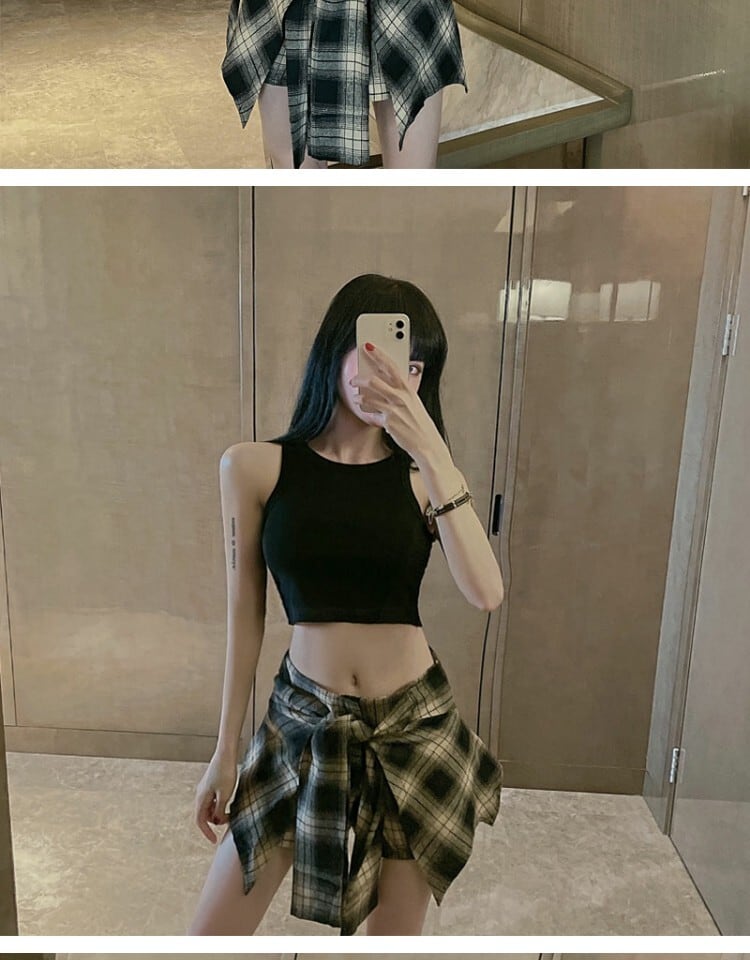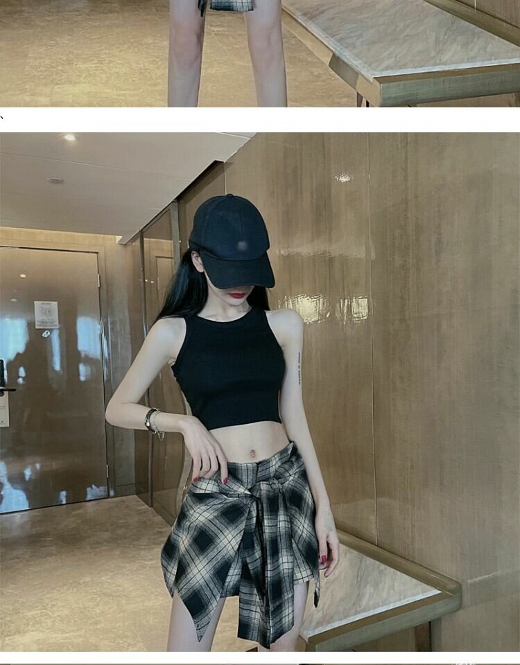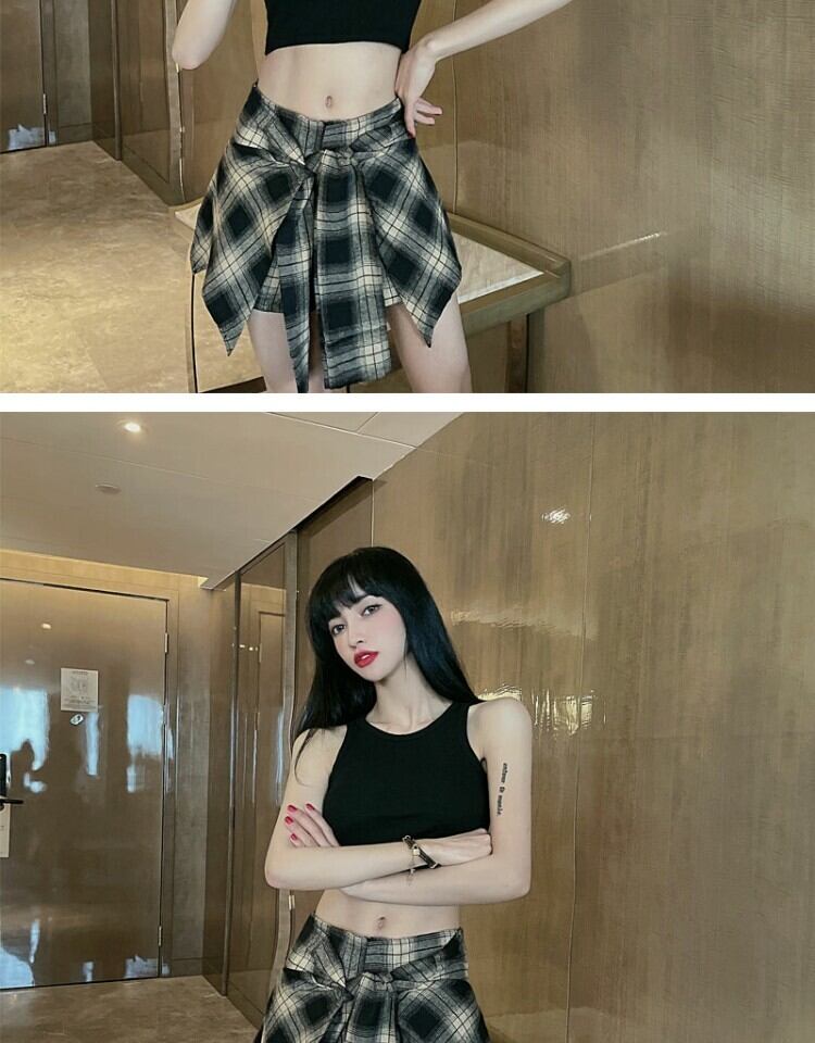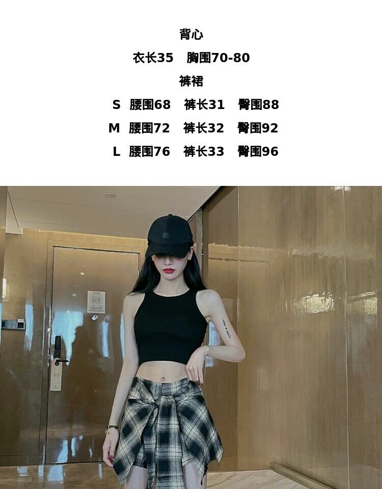 色:ブラックベストワンピース,アプリコットチェック柄キュロットワンピース