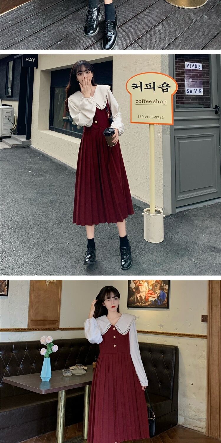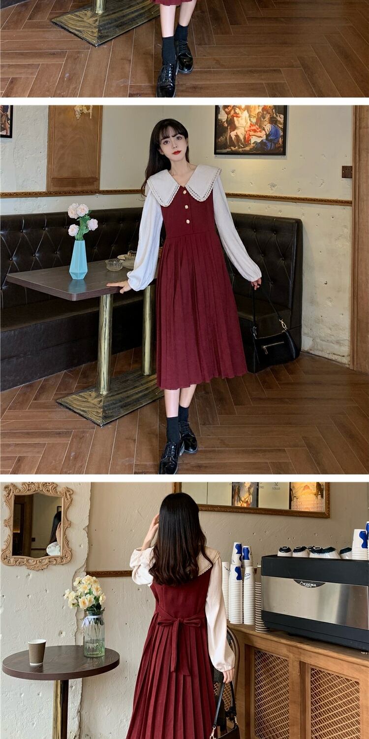 プリーツドレス スプリングウェストスリムスカート レース 春物 レースアップ 萌量不足54467529935
