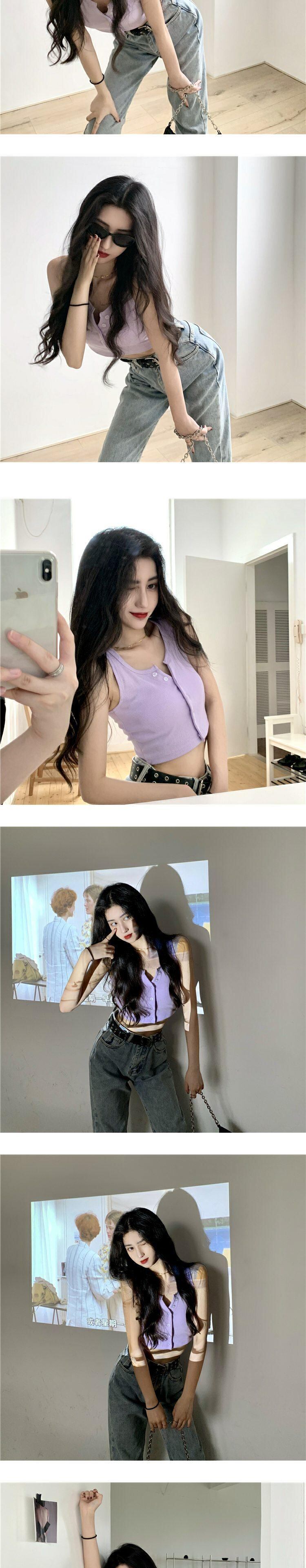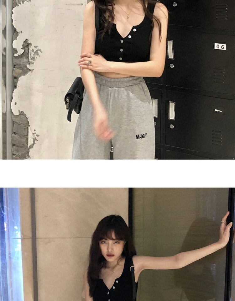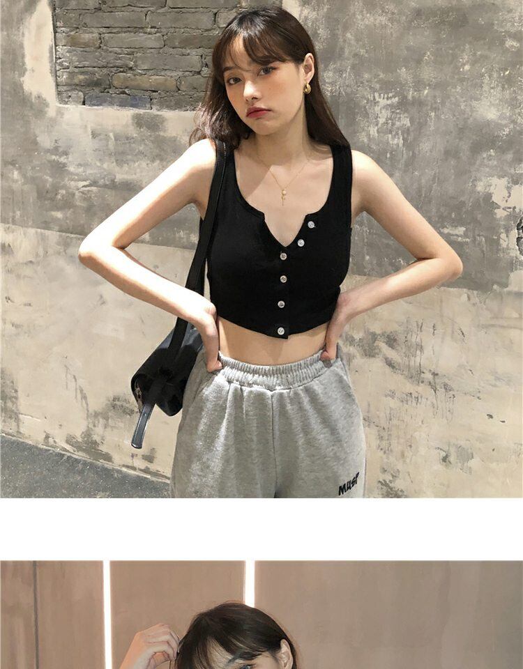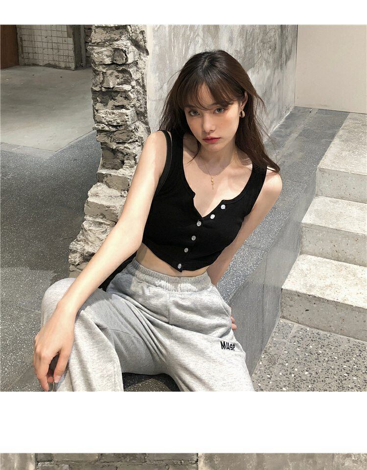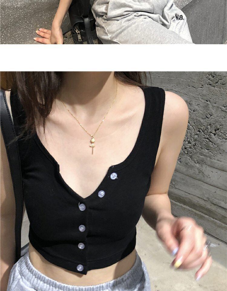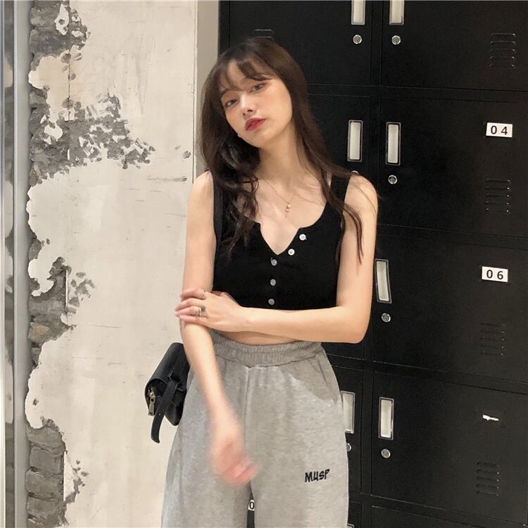 Vネックサマースリムノースリーブトップス 夏物 萌量不足86640041334