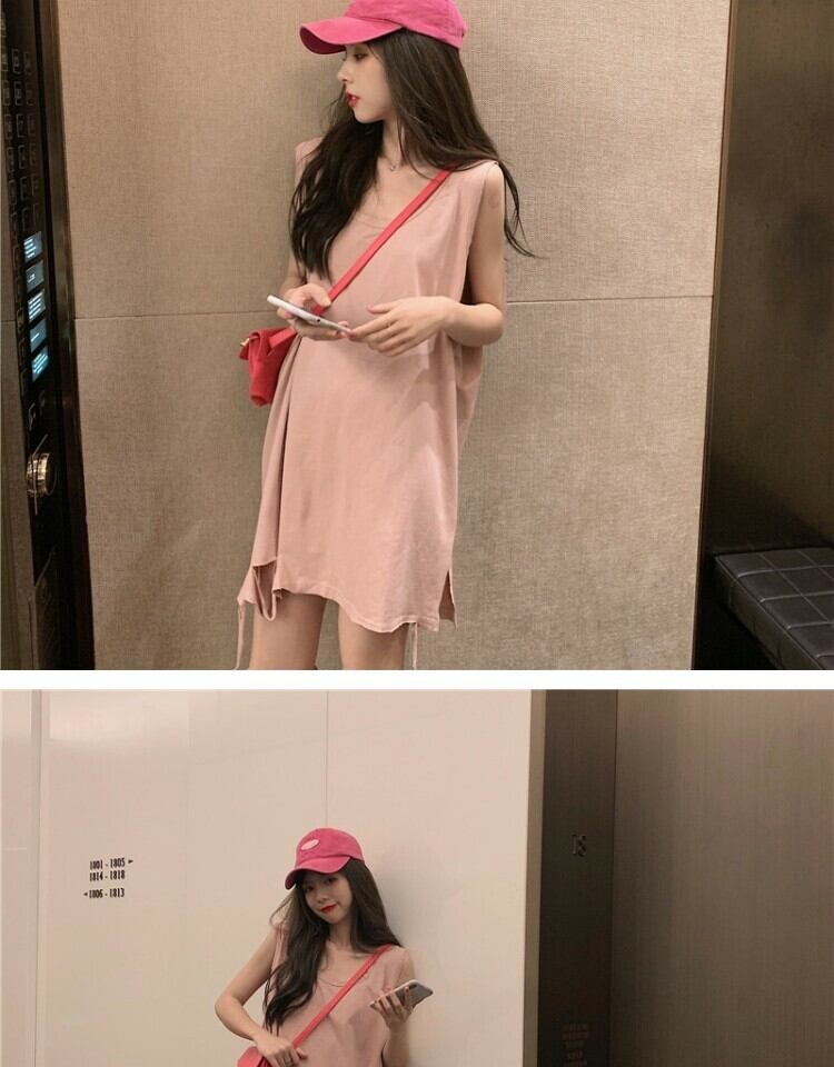 ルーズTシャツ サマーノースリーブトップス ストリート 夏物 萌量不足19868925754