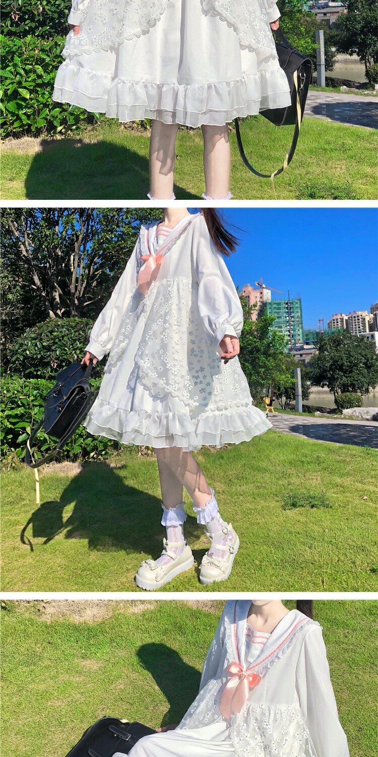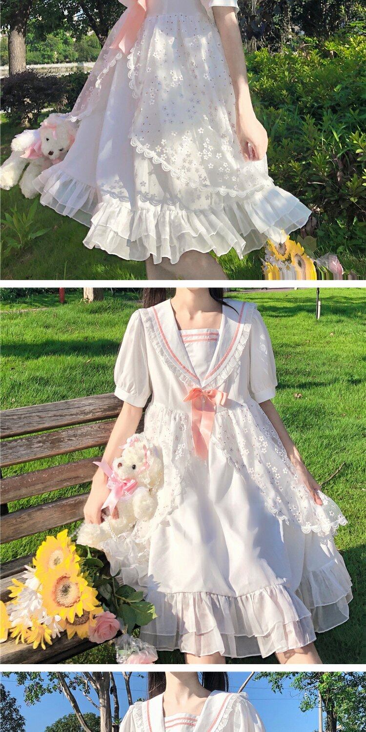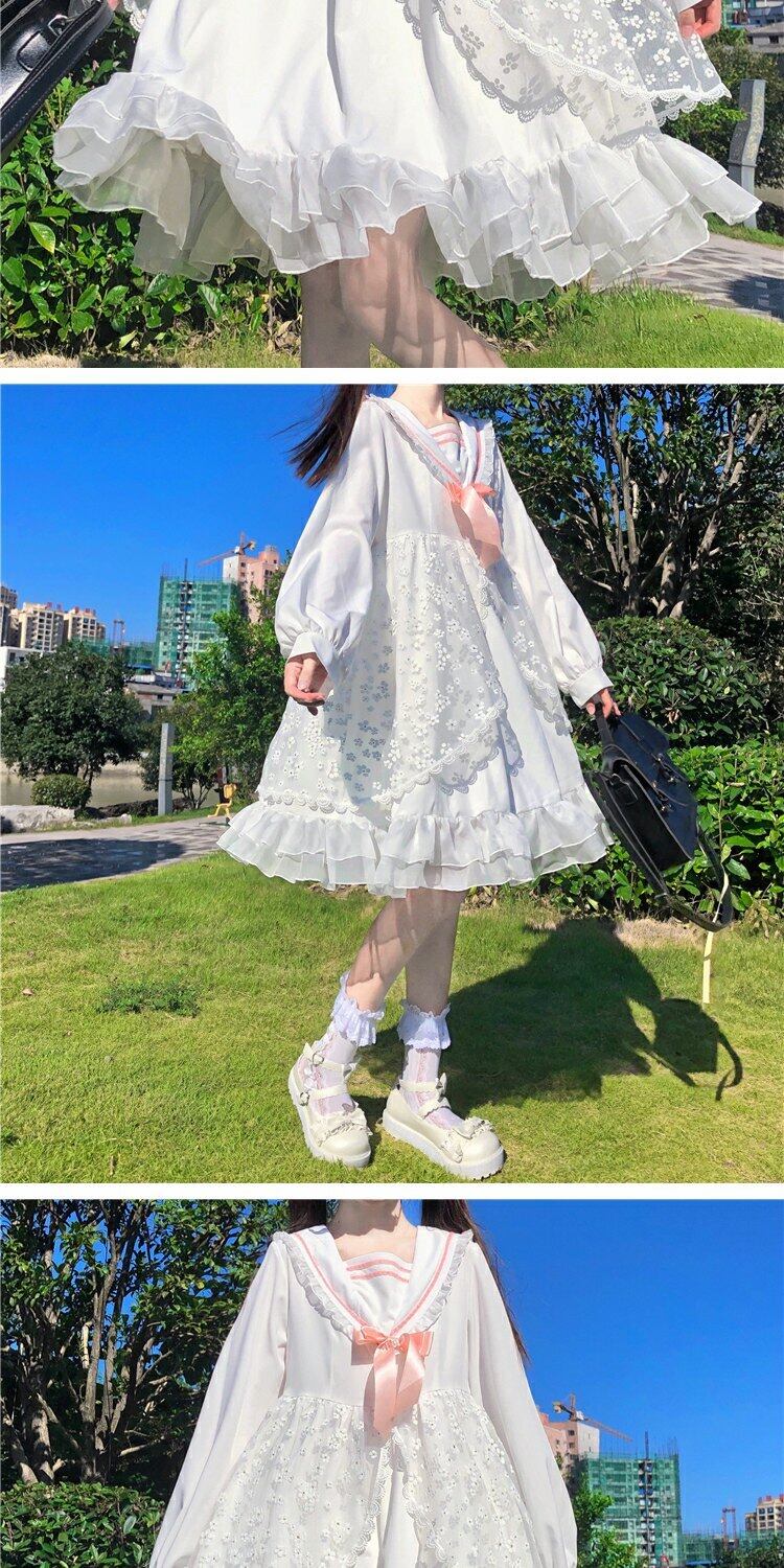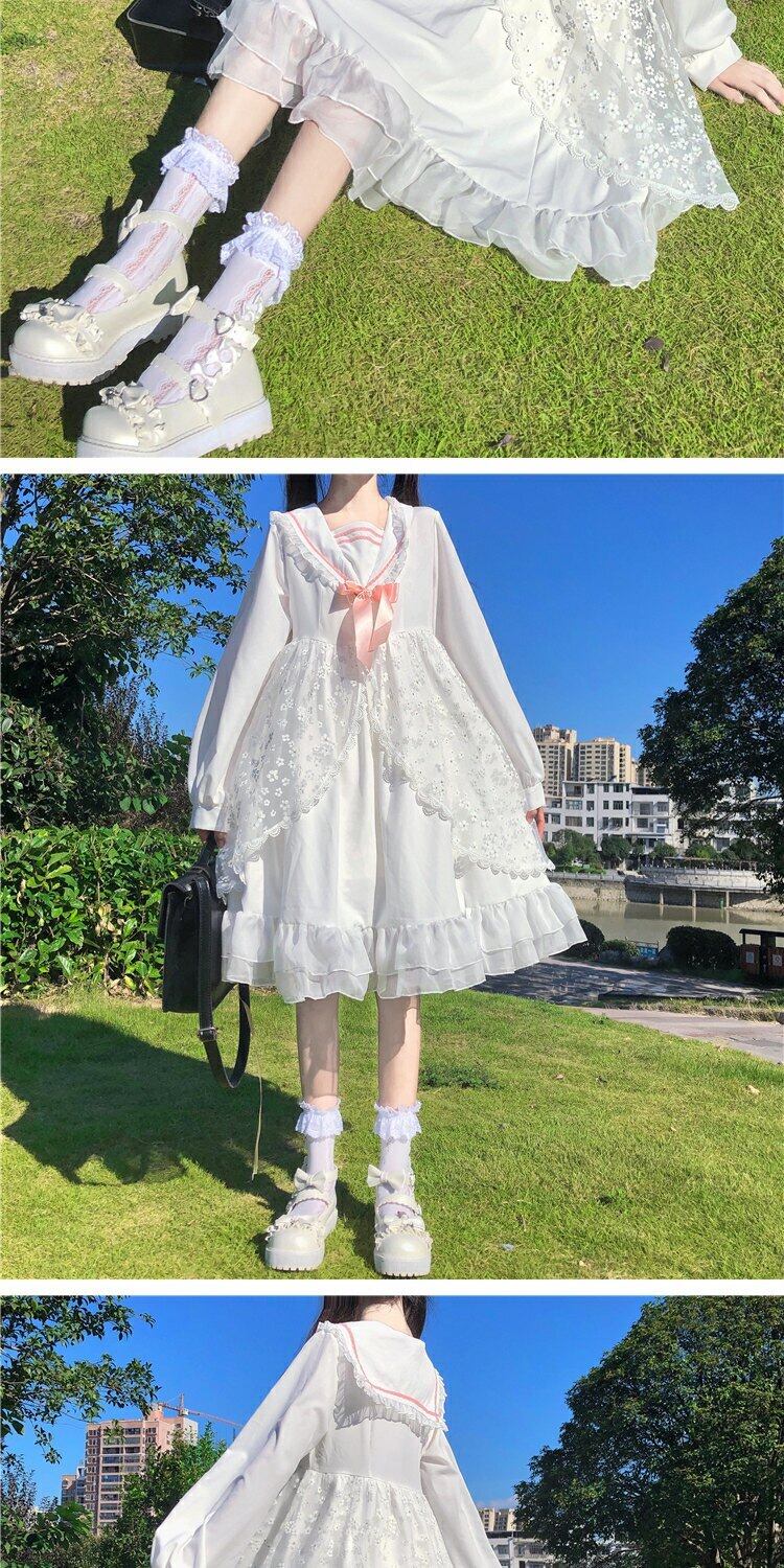 スカート ネイビードレス スプリング ロング リボン 大人ガーリー スウィート キュート カジュアル 春物 パニエ ペチコート 萌量不足34851377692