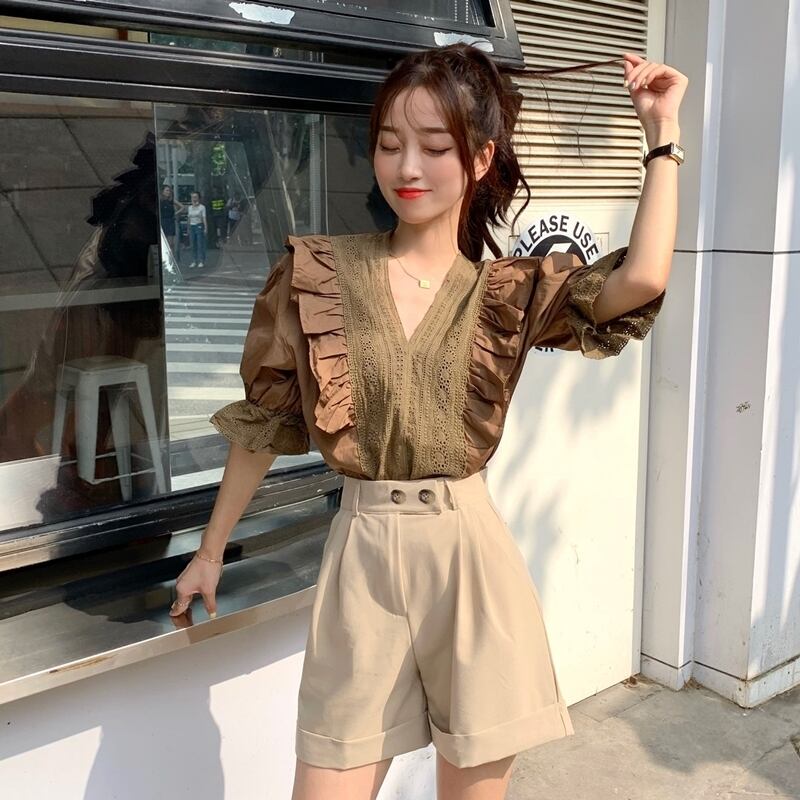 レッドサマーVネックシャツ ショーツ 夏物 ブルマー 萌量不足92732134747