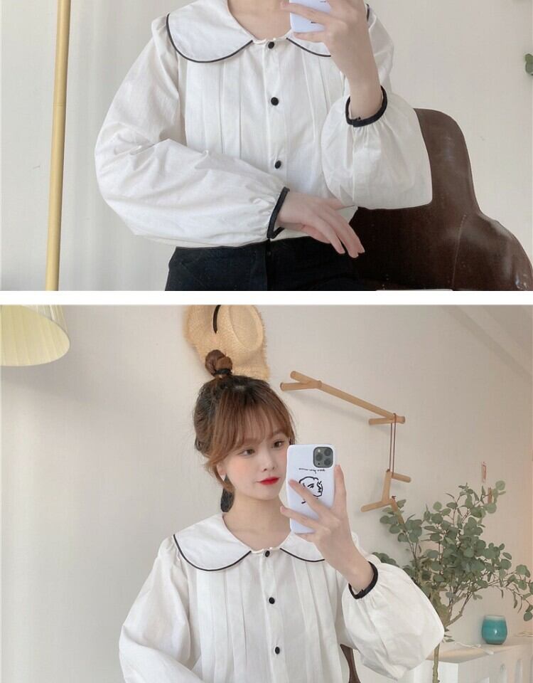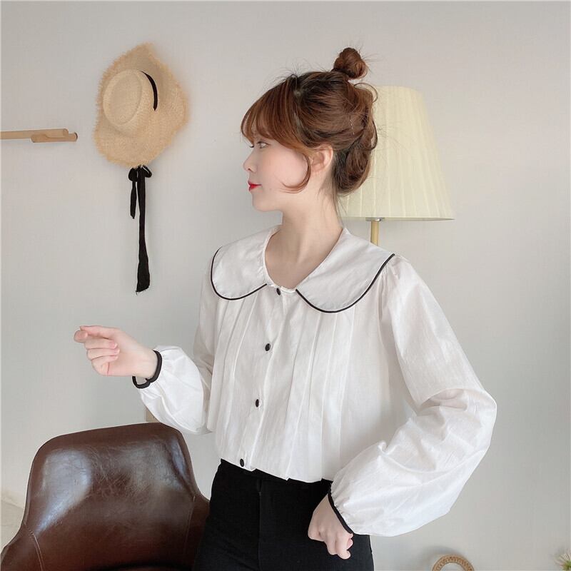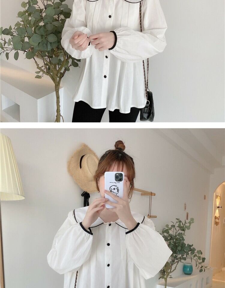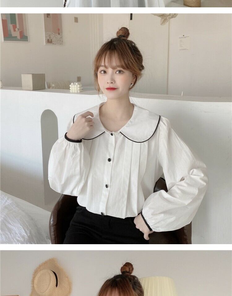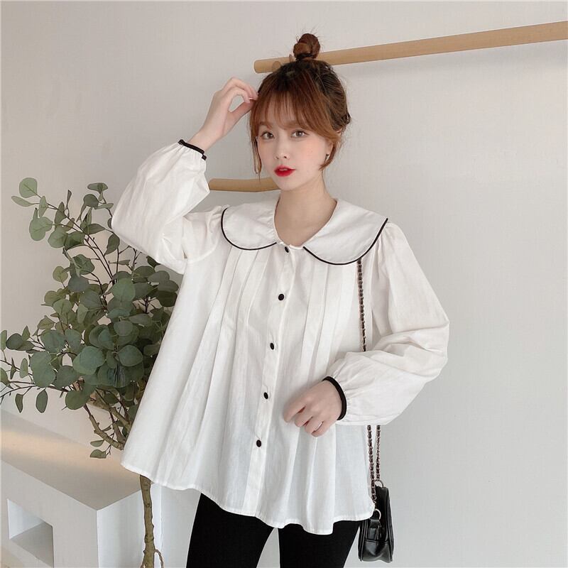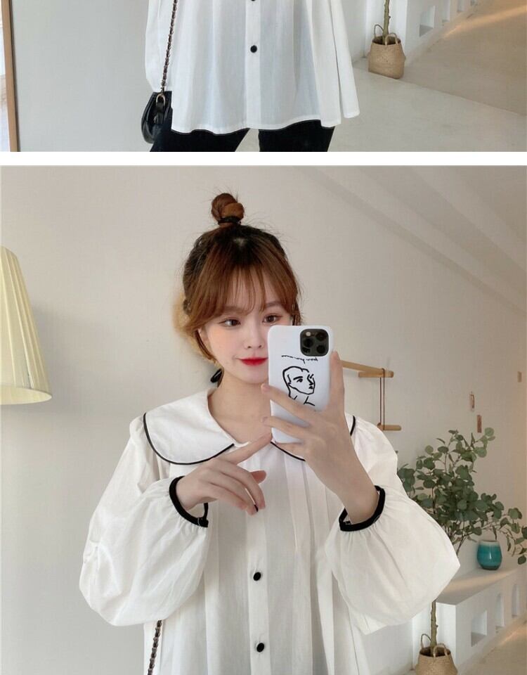 スプリングサマースタンダードホワイトシャツ カラートップス ロング レトロ 大人ガーリー スウィート キュート カジュアル 春物 夏物 萌量不足39983339265