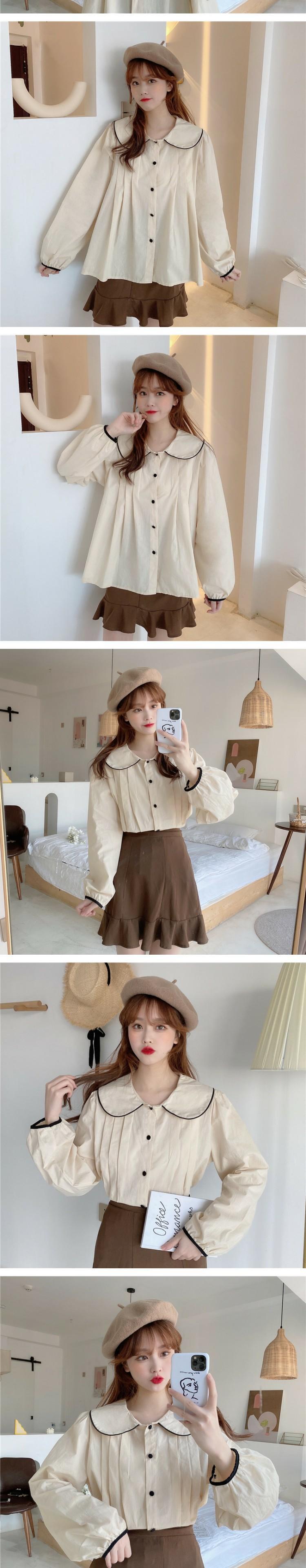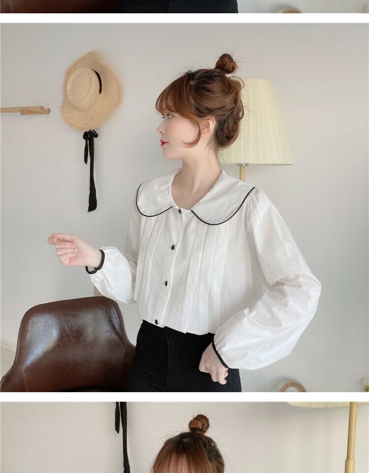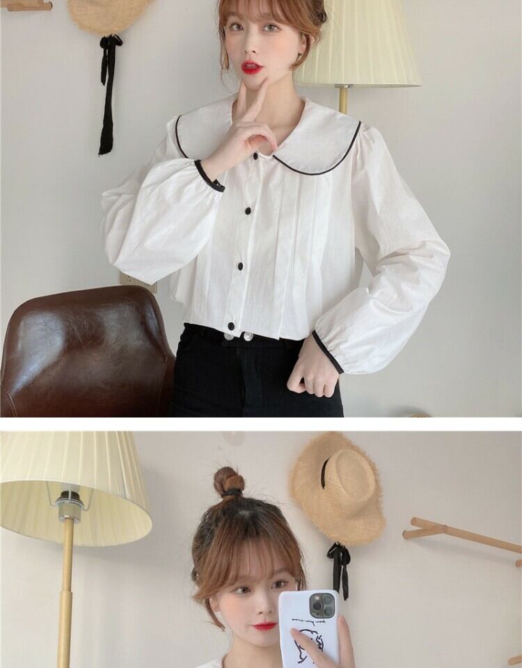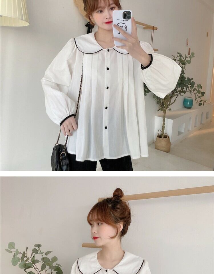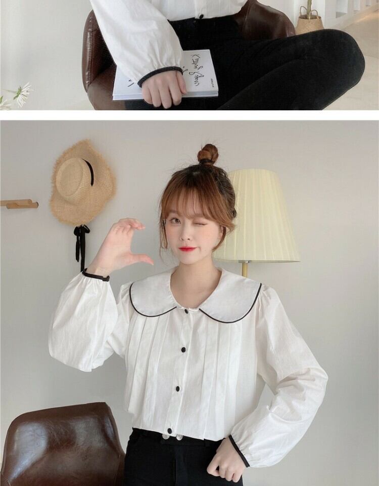 スプリングサマースタンダードホワイトシャツ カラートップス ロング レトロ 大人ガーリー スウィート キュート カジュアル 春物 夏物 萌量不足39983339265