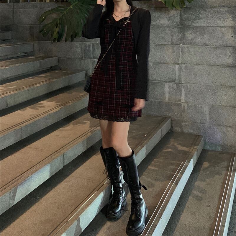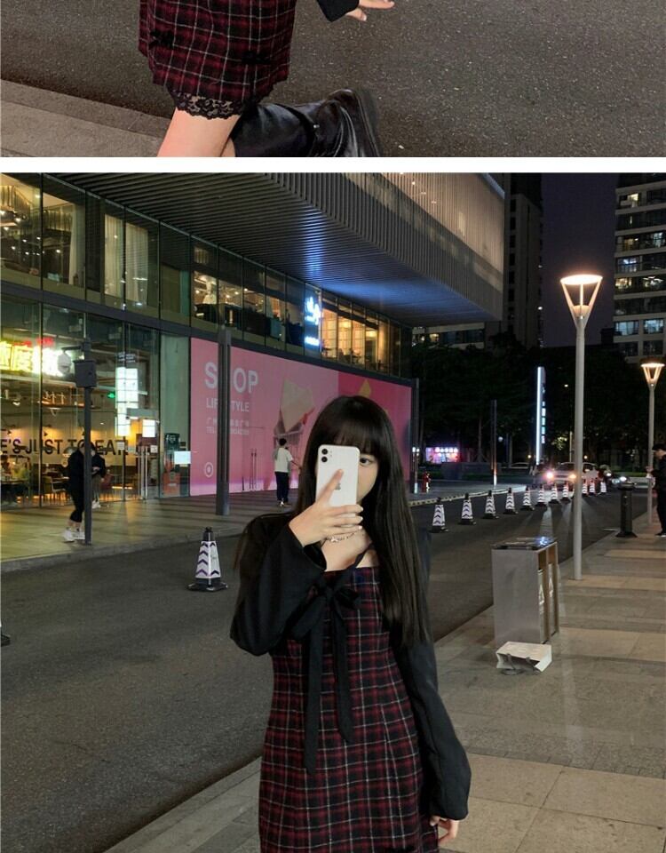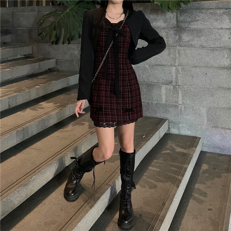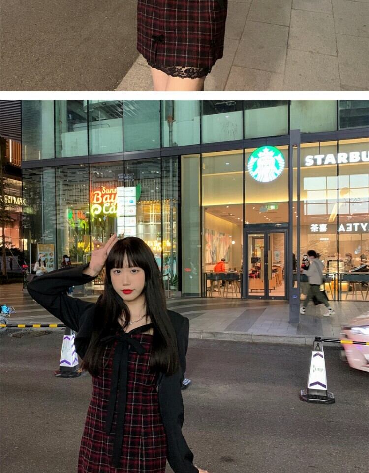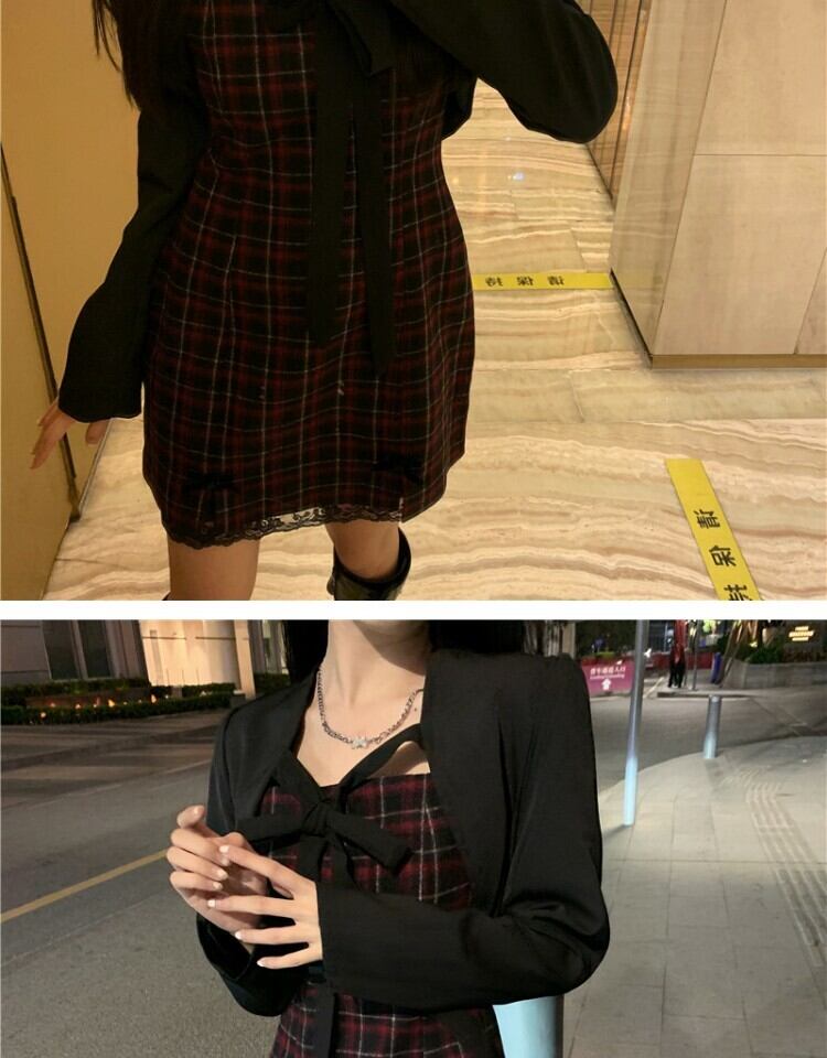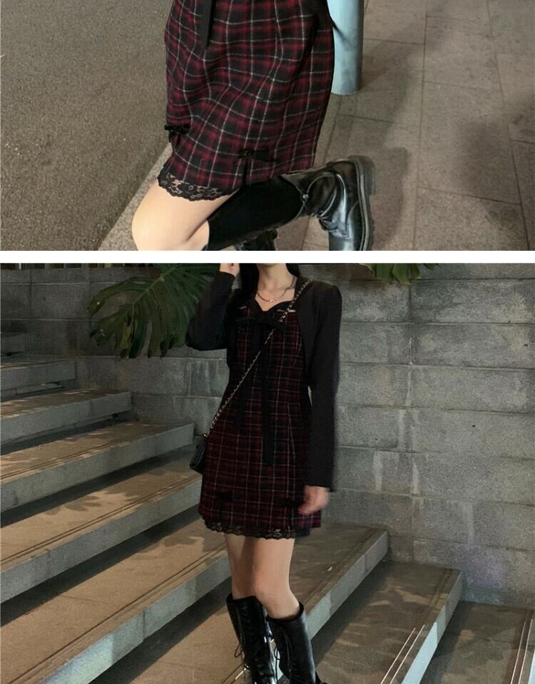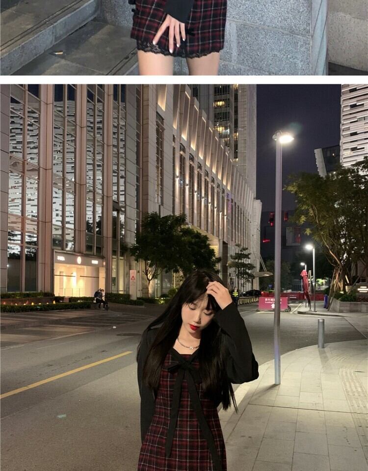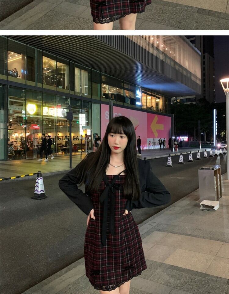 スリムショートスカート スプリングレッドリボンAラインドレス 春物 萌量不足15514135979