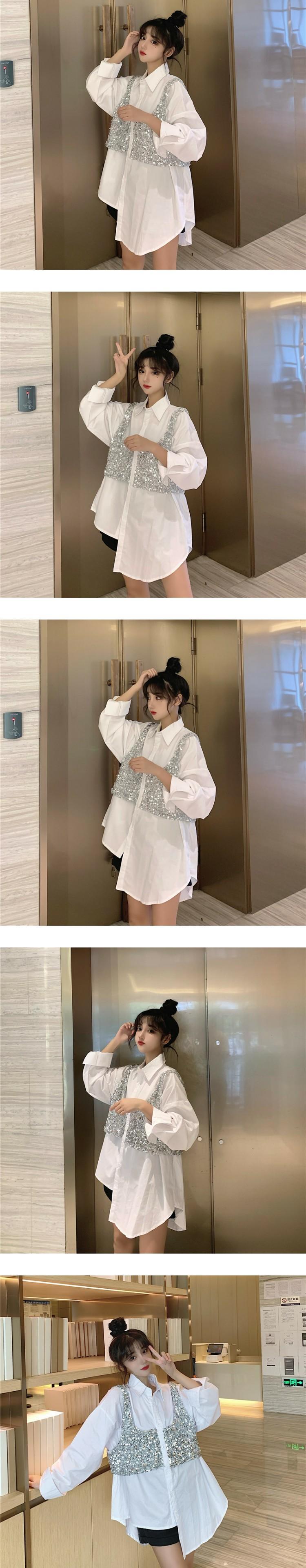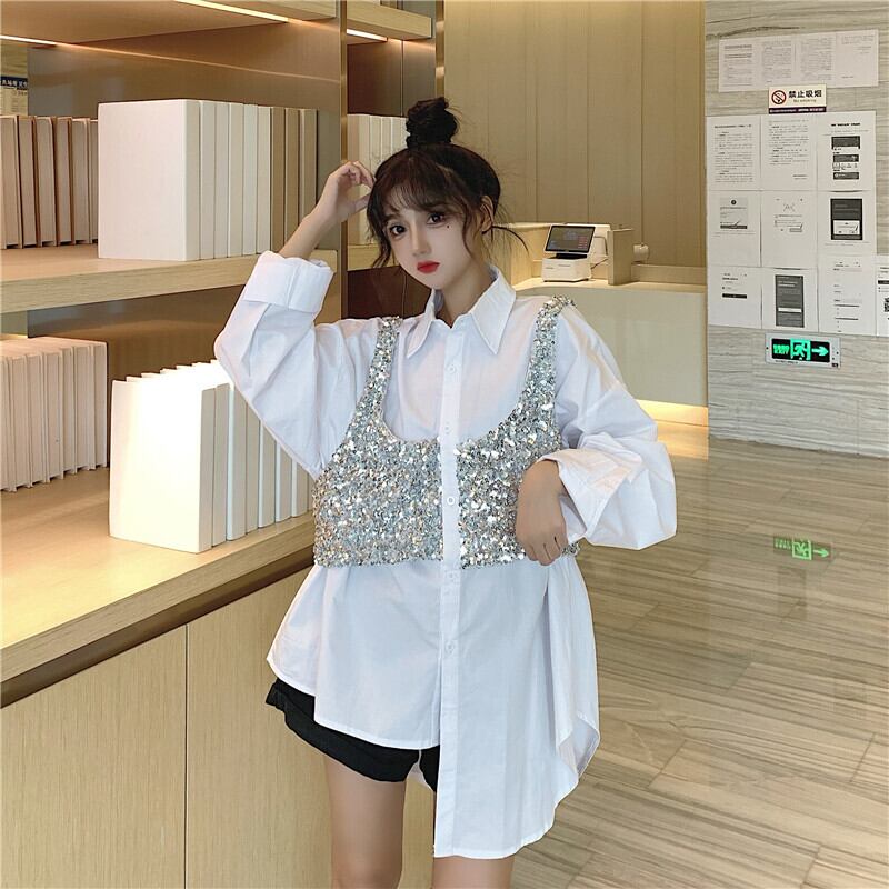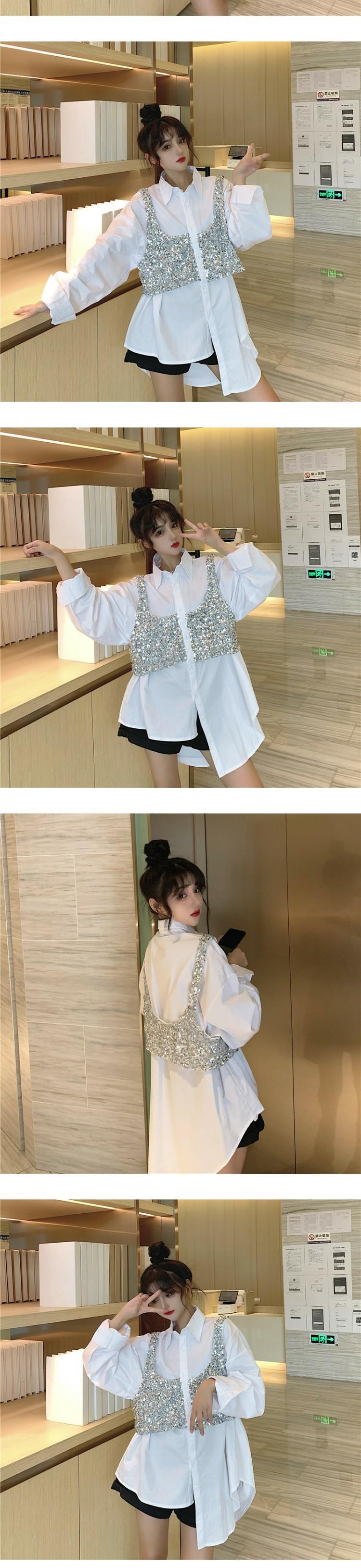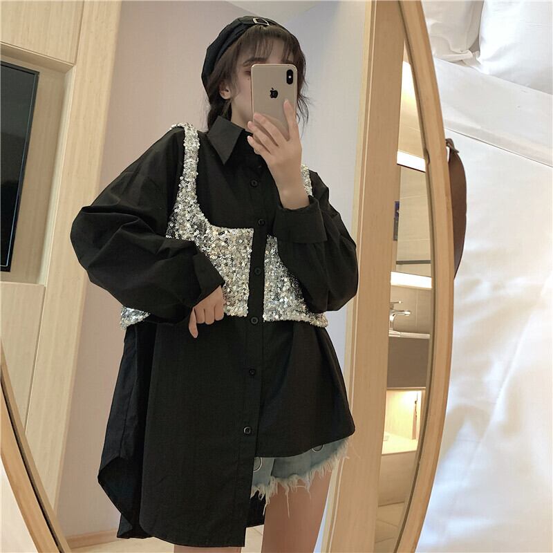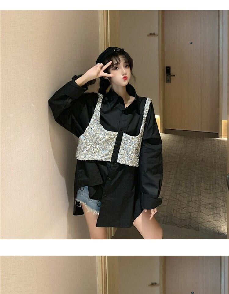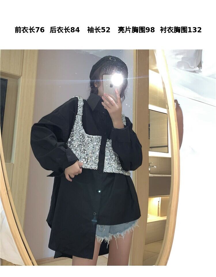 トップス スプリングスパンコールシャツ ルーズ 春物 ステッチ 萌量不足86910729416