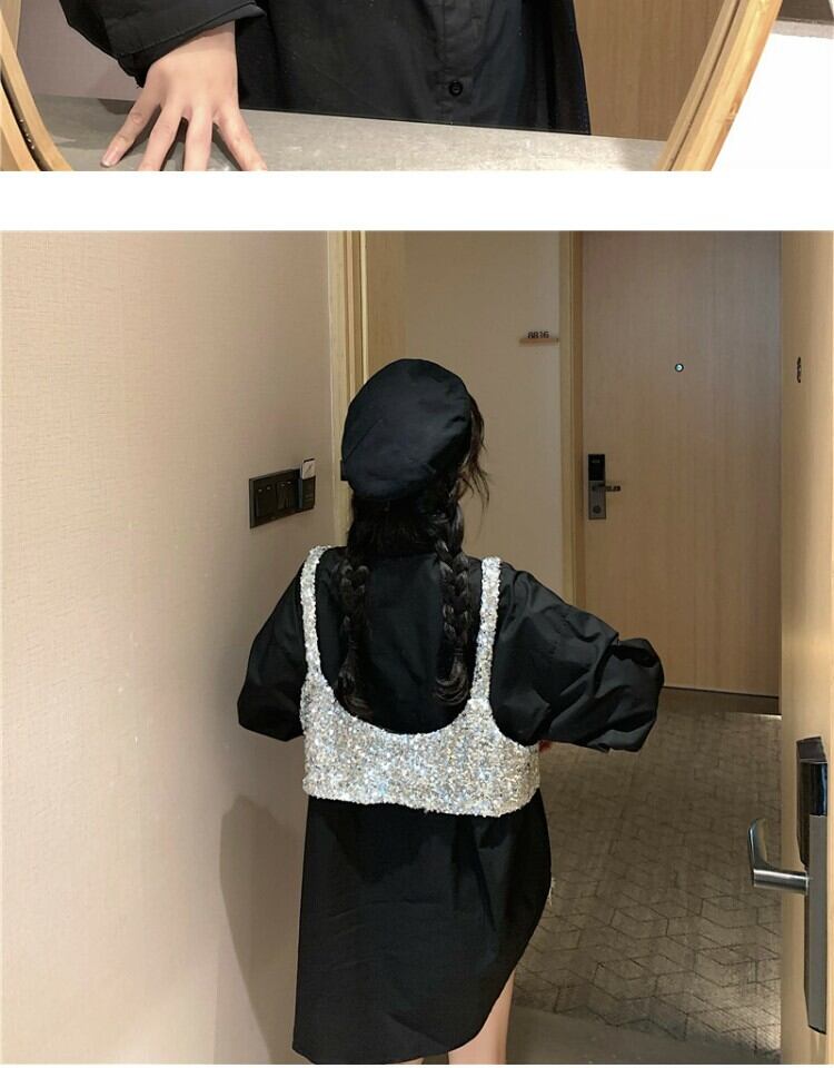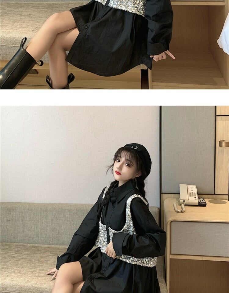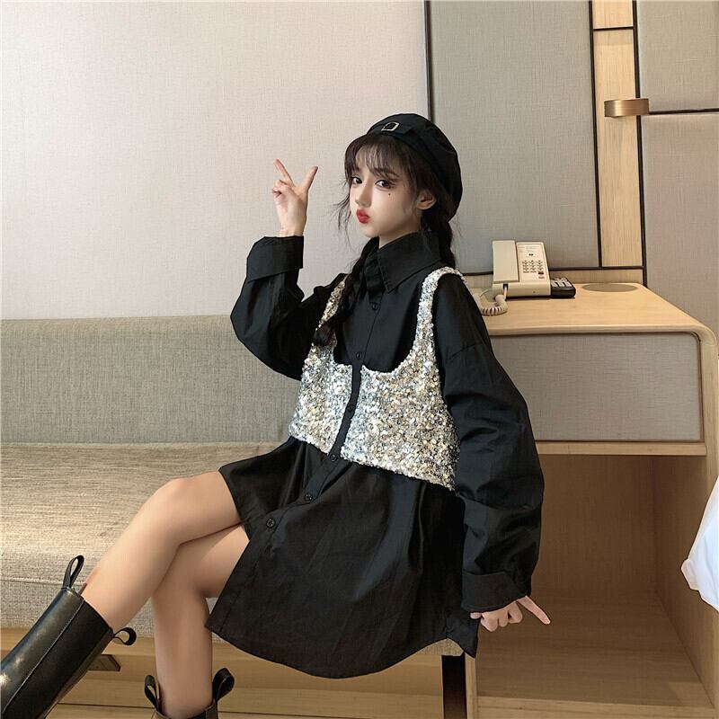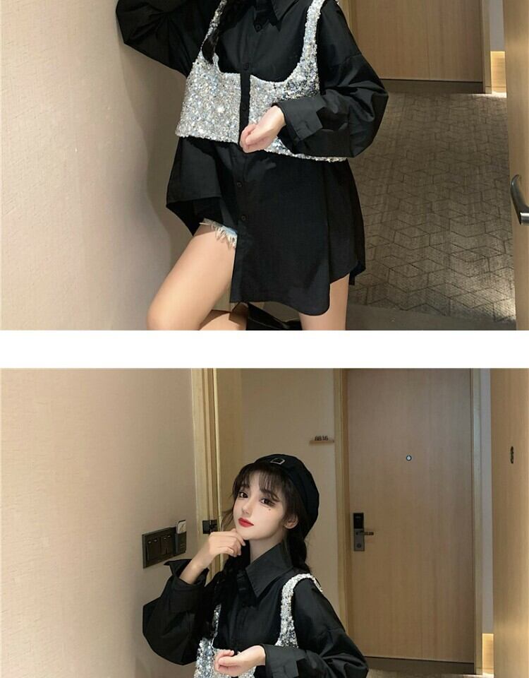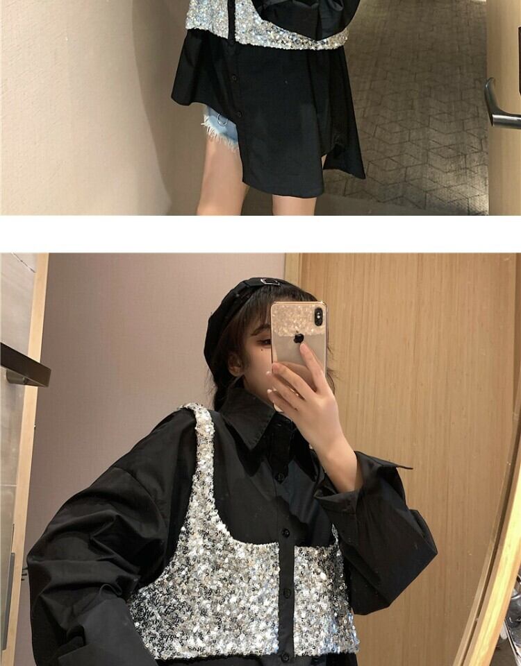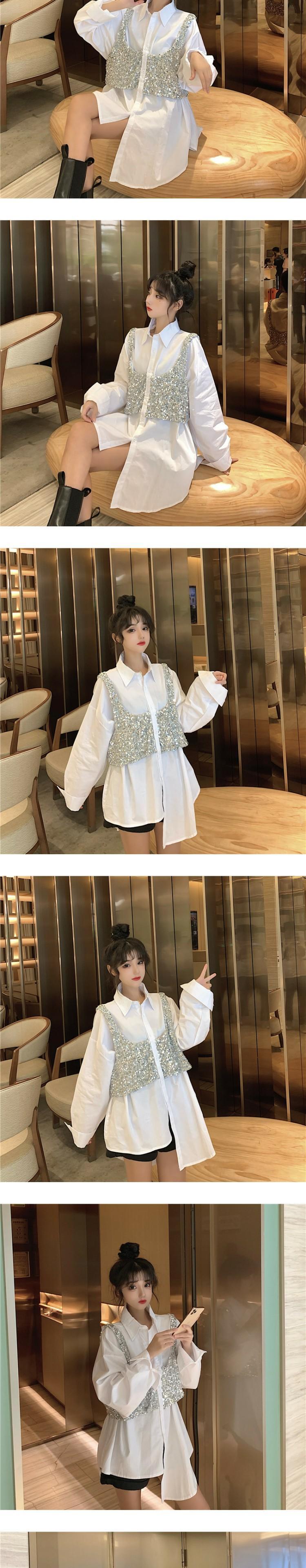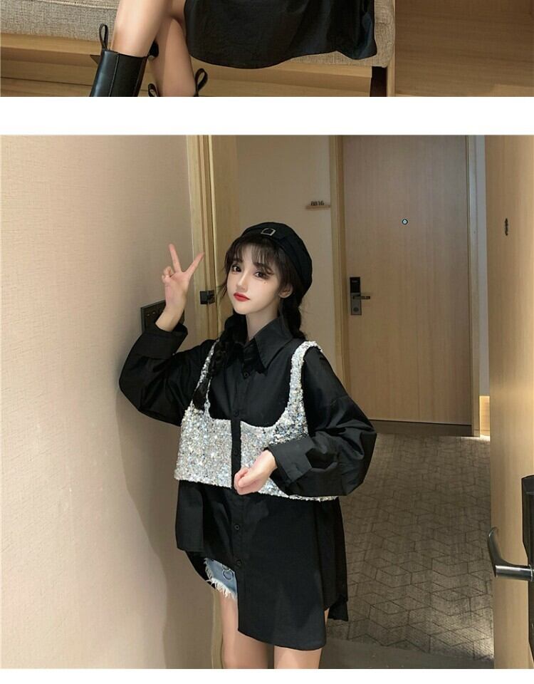 トップス スプリングスパンコールシャツ ルーズ 春物 ステッチ 萌量不足86910729416