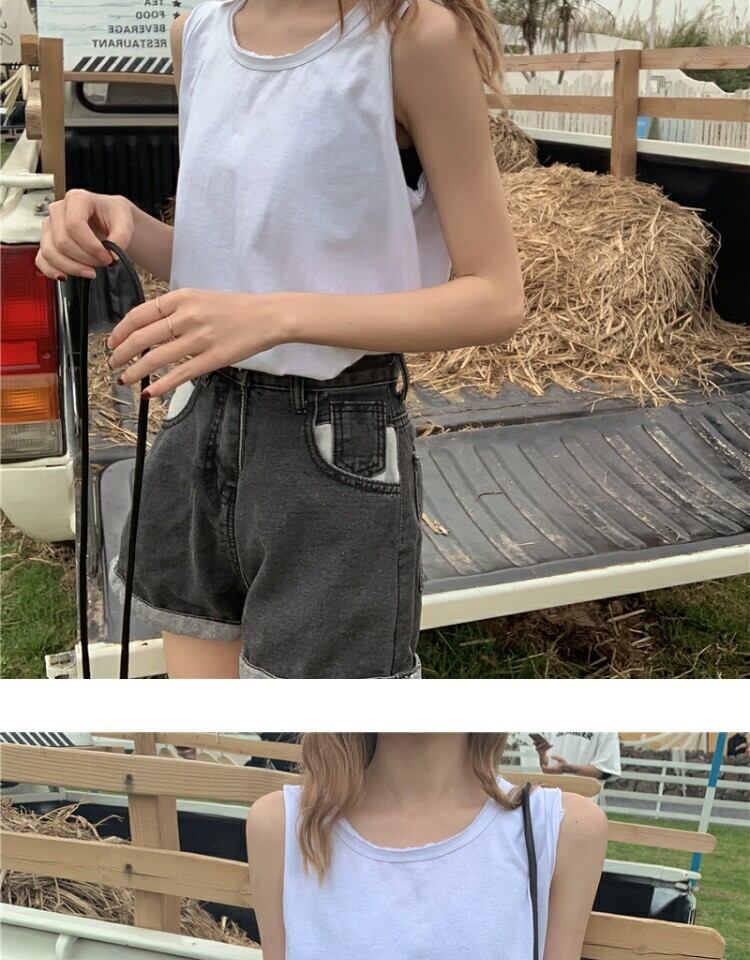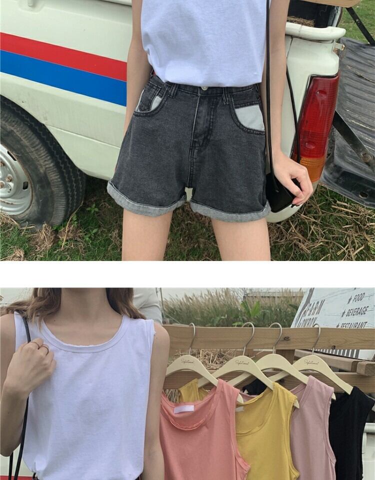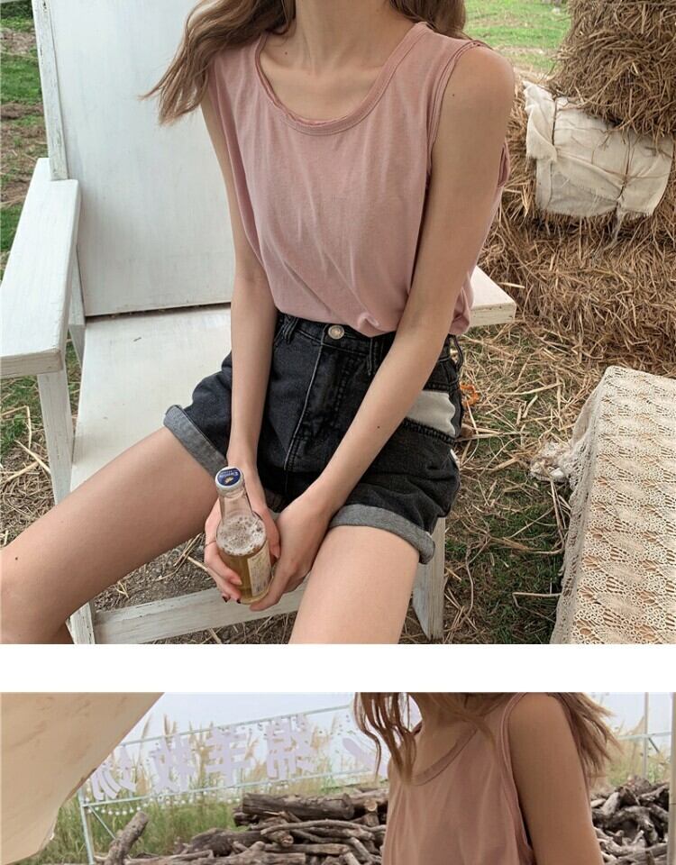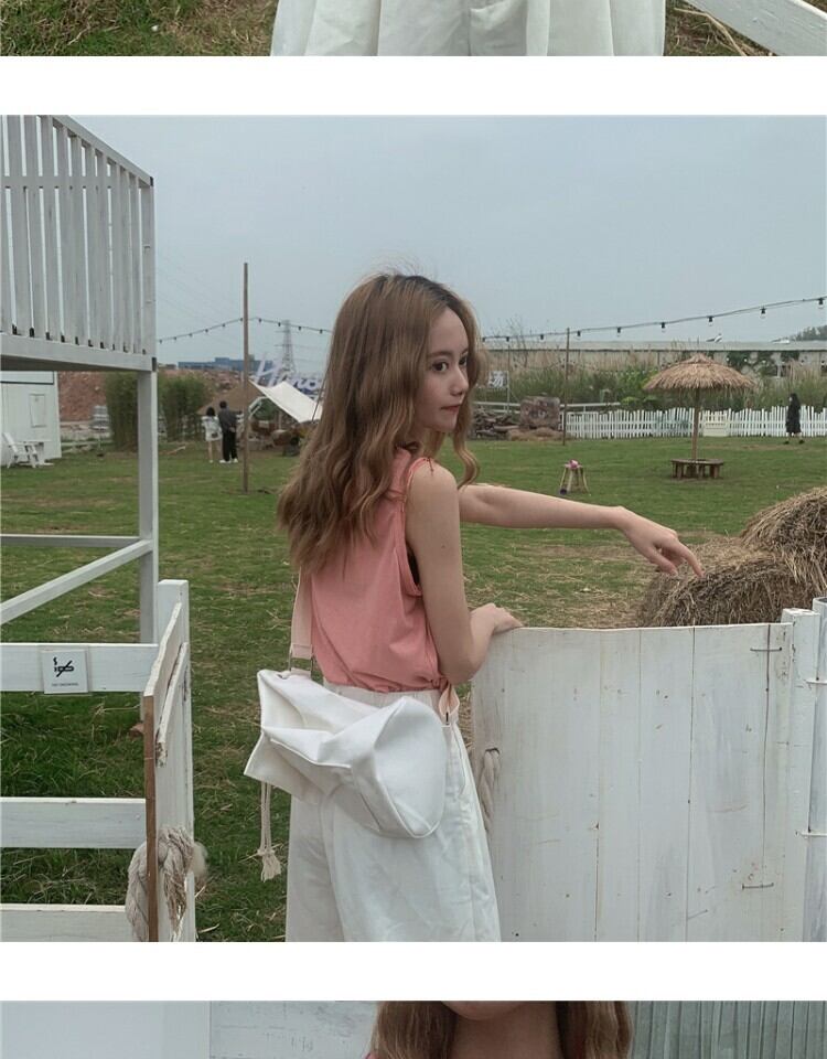 ソリッド カラーノースリーブサマーニットTシャツ 夏物 ソリッドカラー 萌量不足53617576153