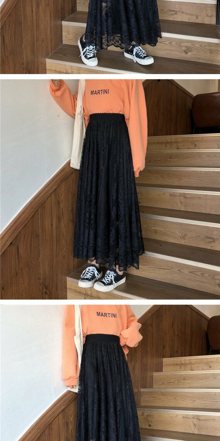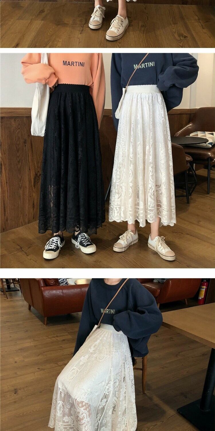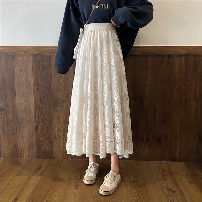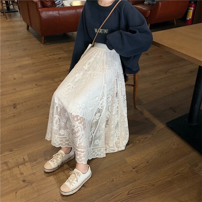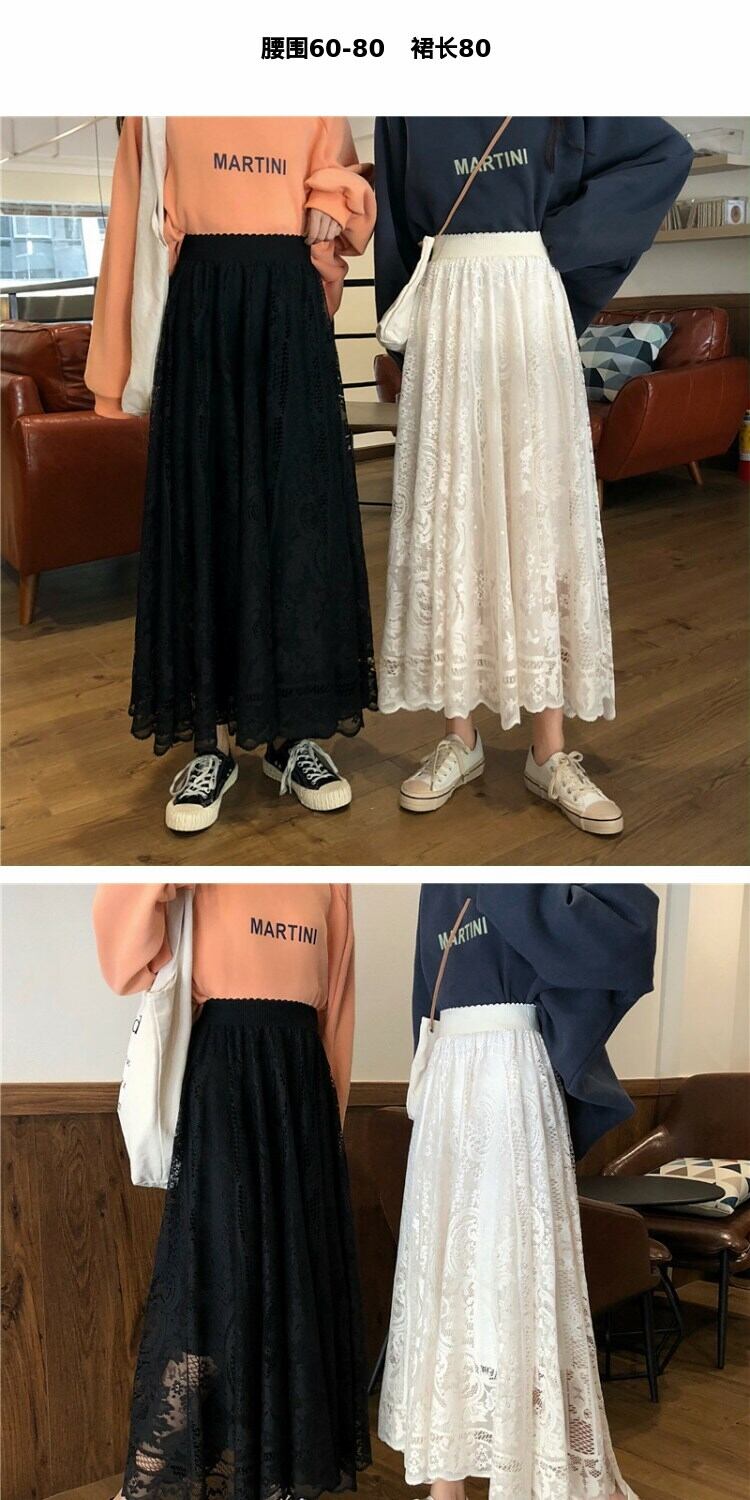 スカート スプリングスタイルレースハイウェストウェストルーズ薄手レディース 春物 萌量不足98708580890