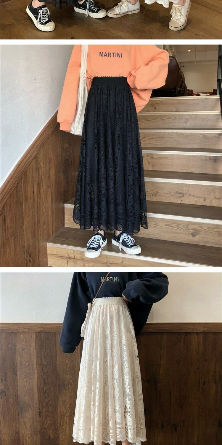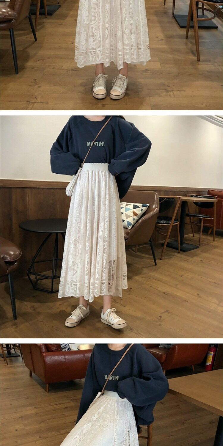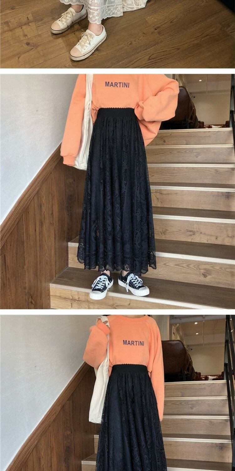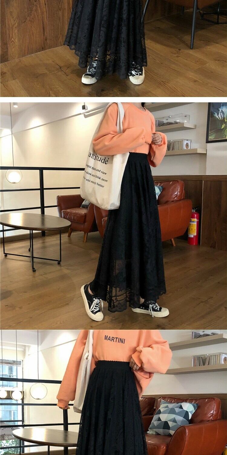 スカート スプリングスタイルレースハイウェストウェストルーズ薄手レディース 春物 萌量不足98708580890