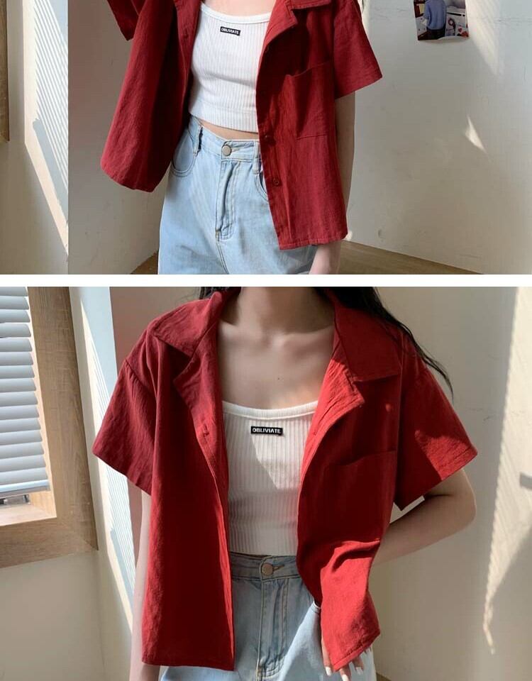 シャツ サマーカラーポケットルーズ薄手ブラウス 夏物 ピュア 萌量不足72917612794