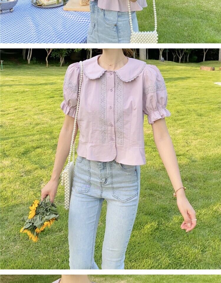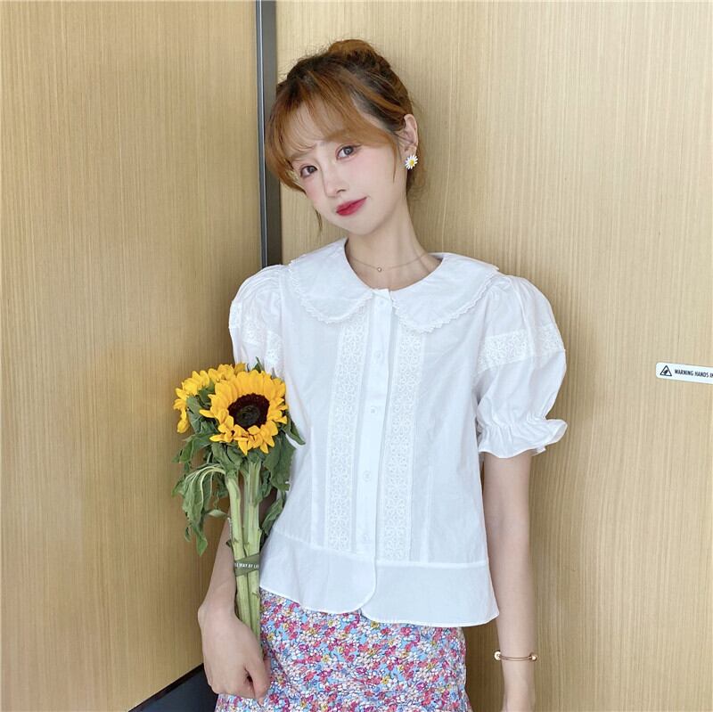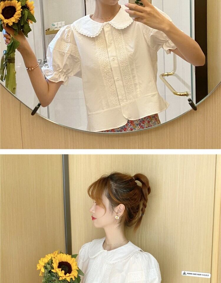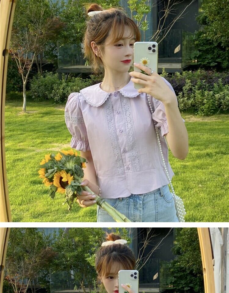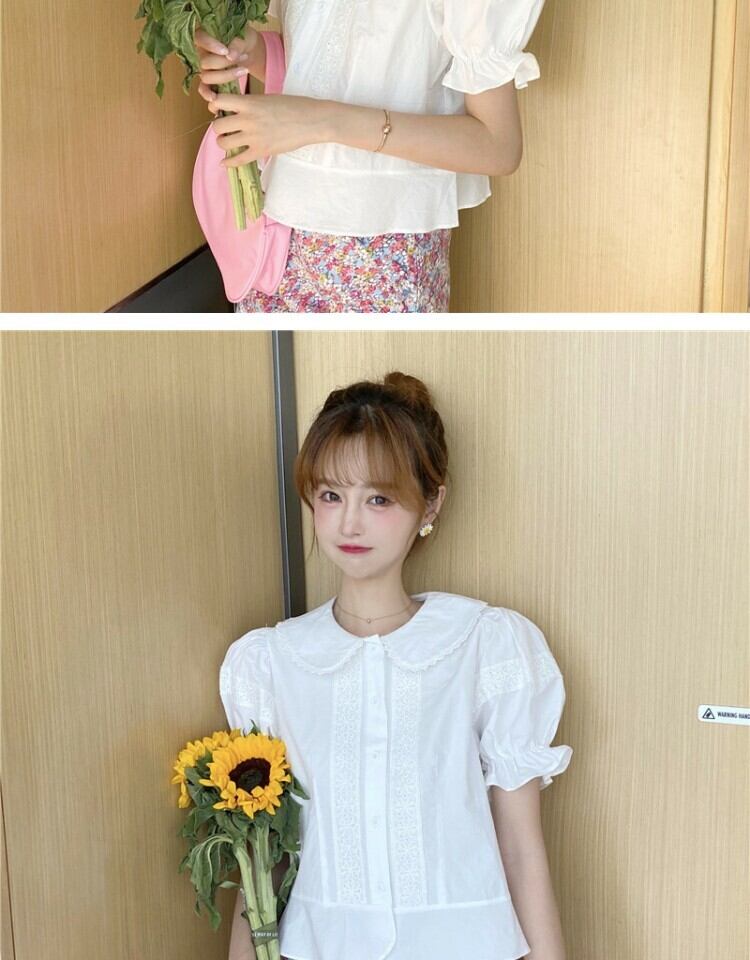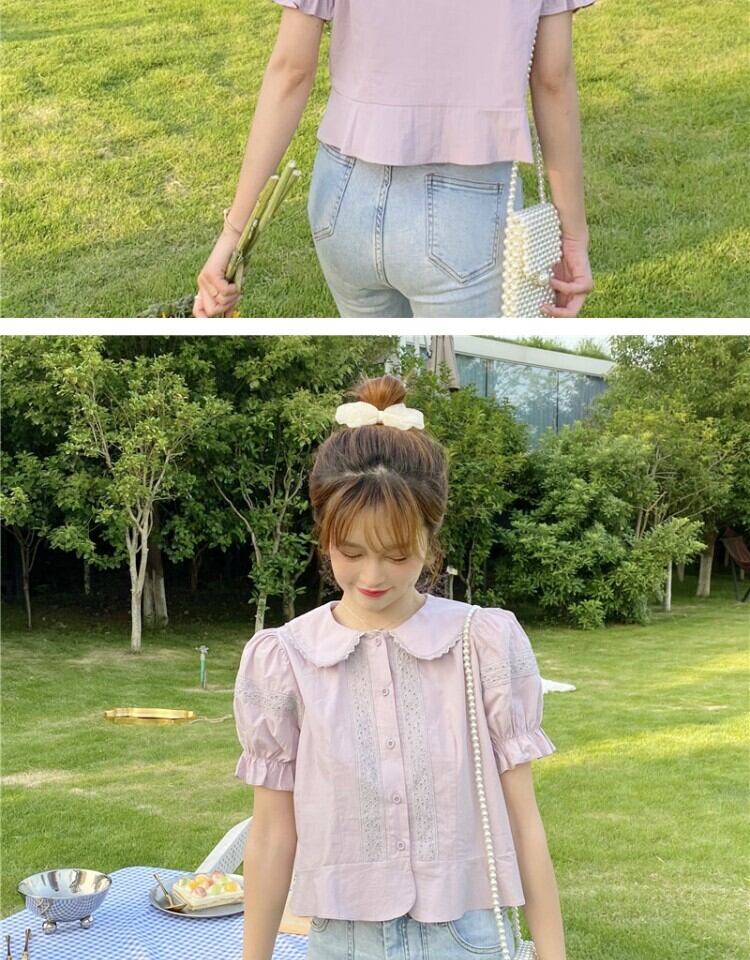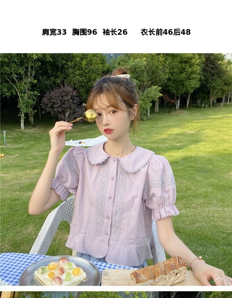 レースカラーシャツ サマーショートトップス 夏物 萌量不足95530127102