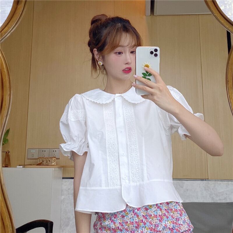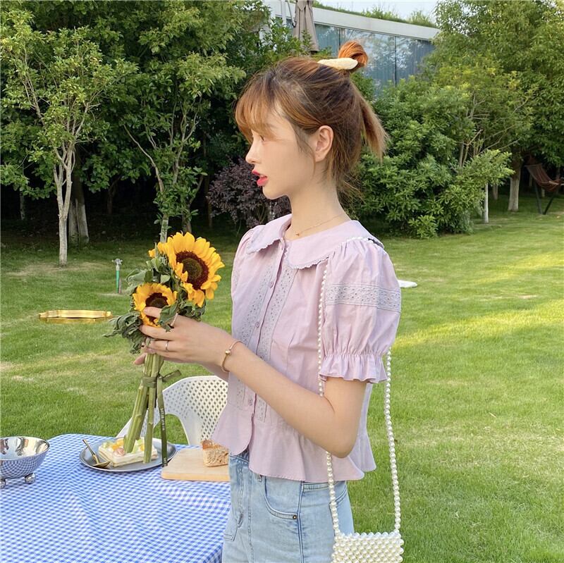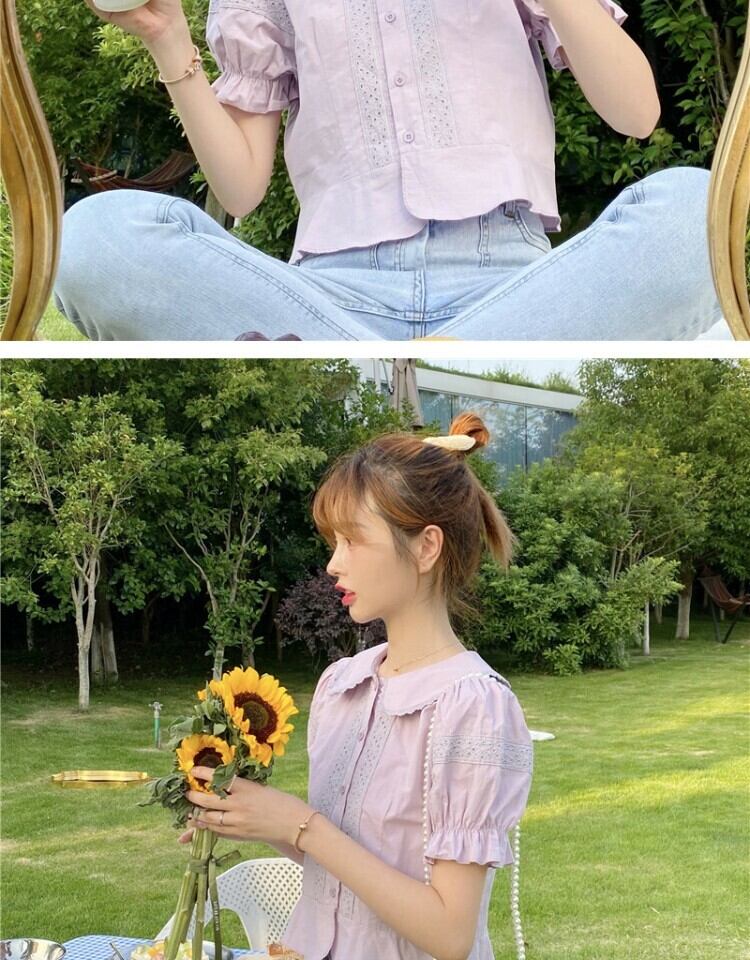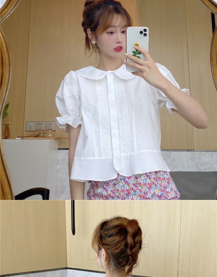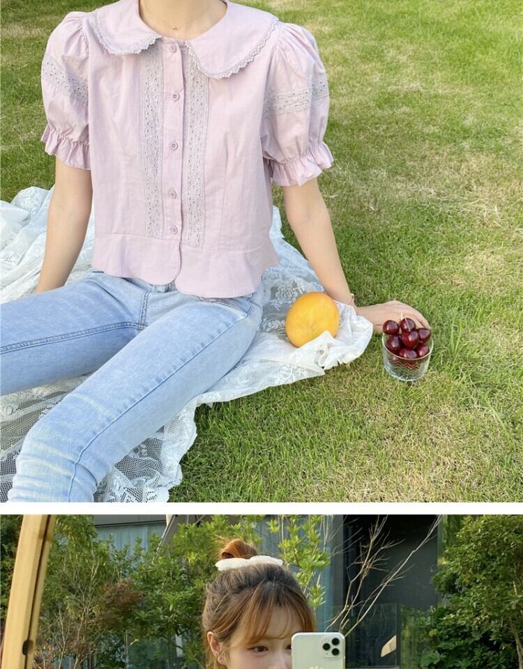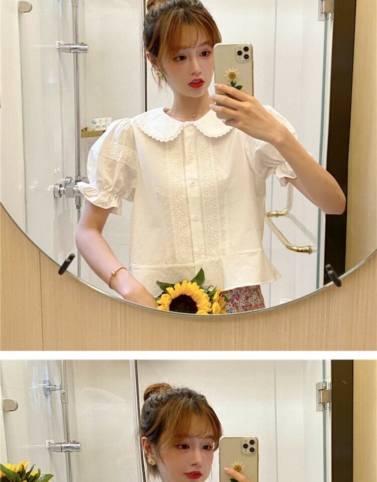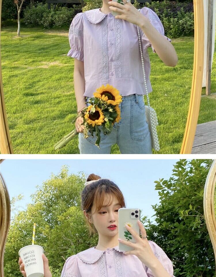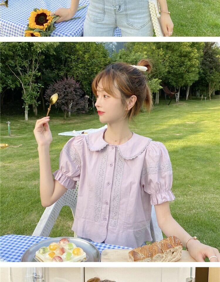 レースカラーシャツ サマーショートトップス 夏物 萌量不足95530127102