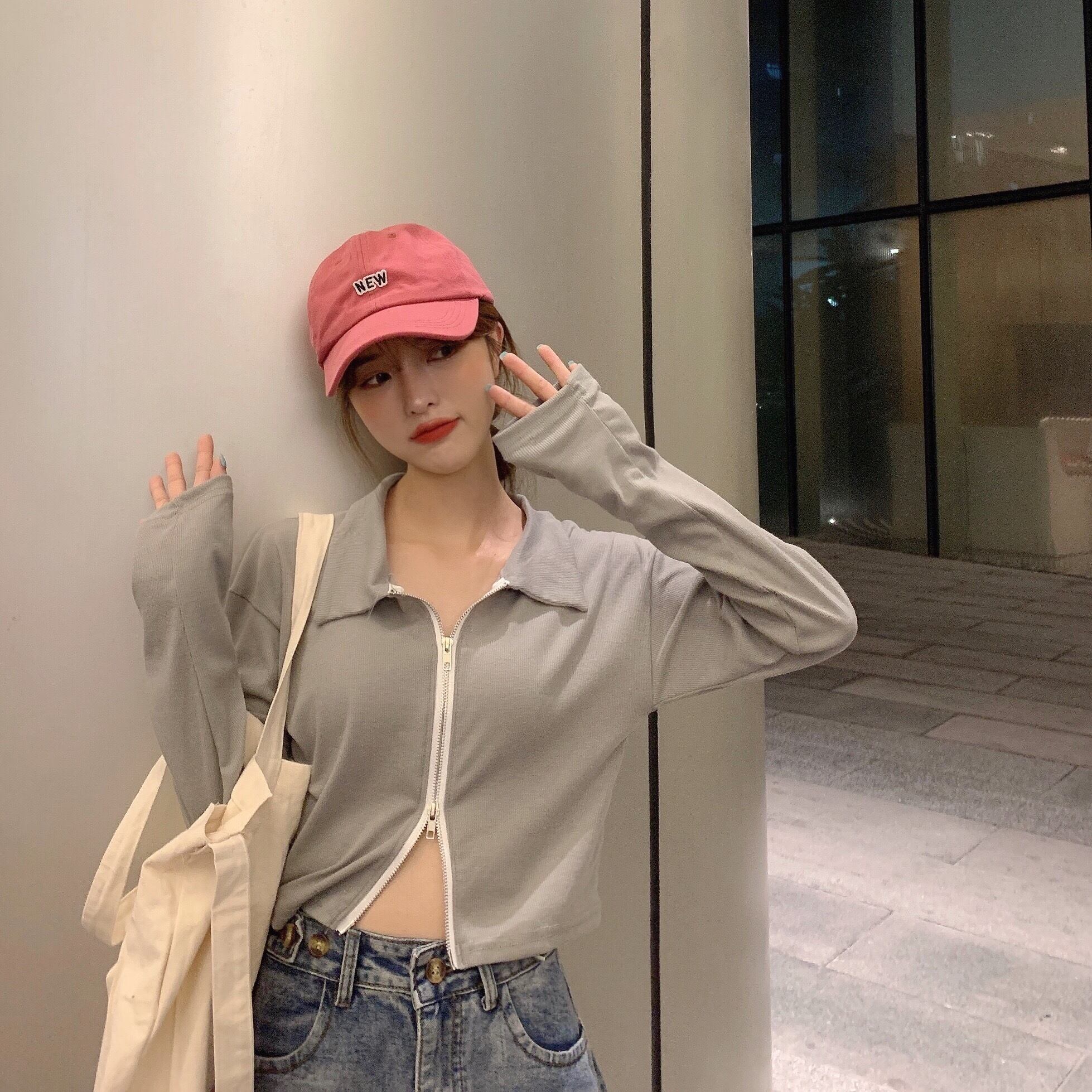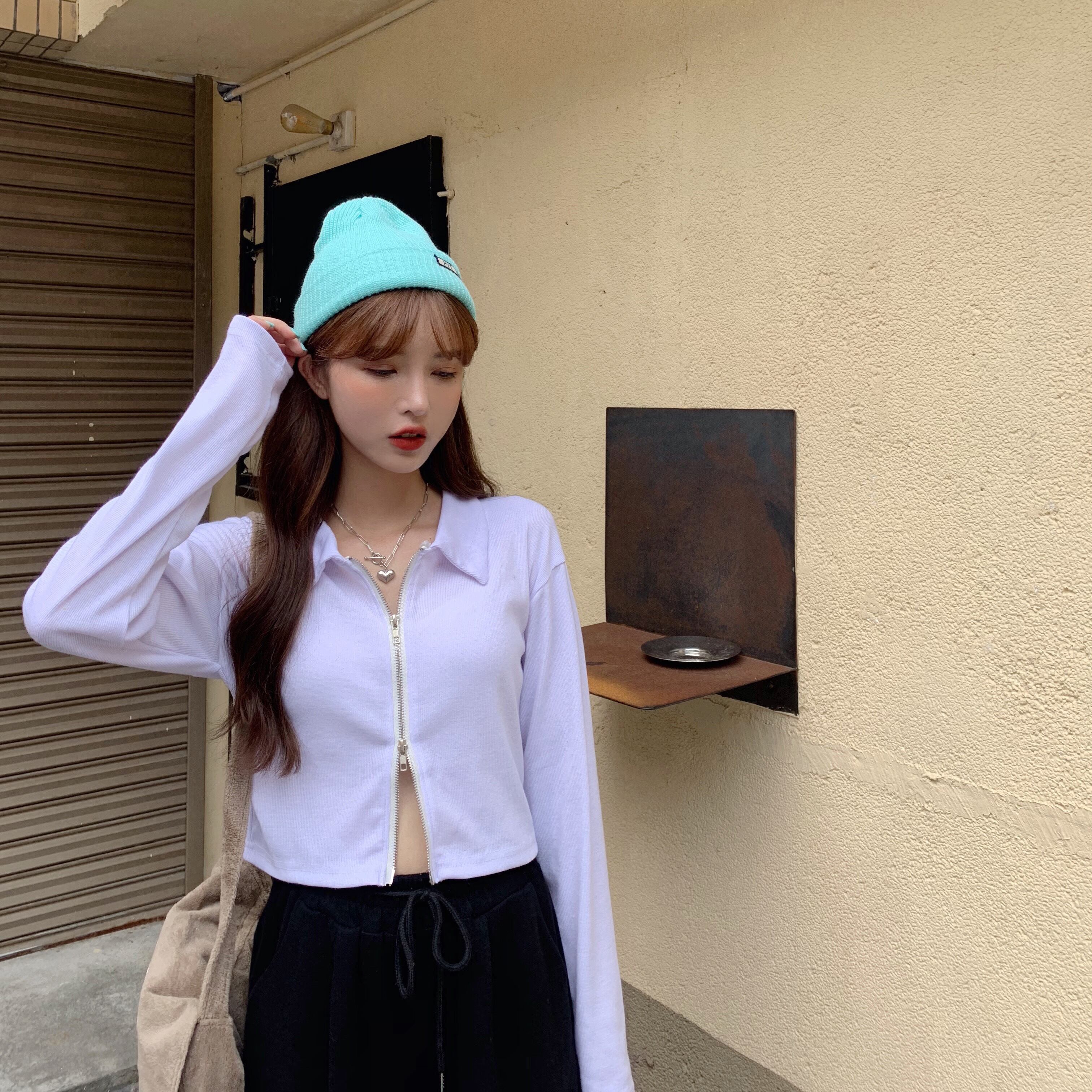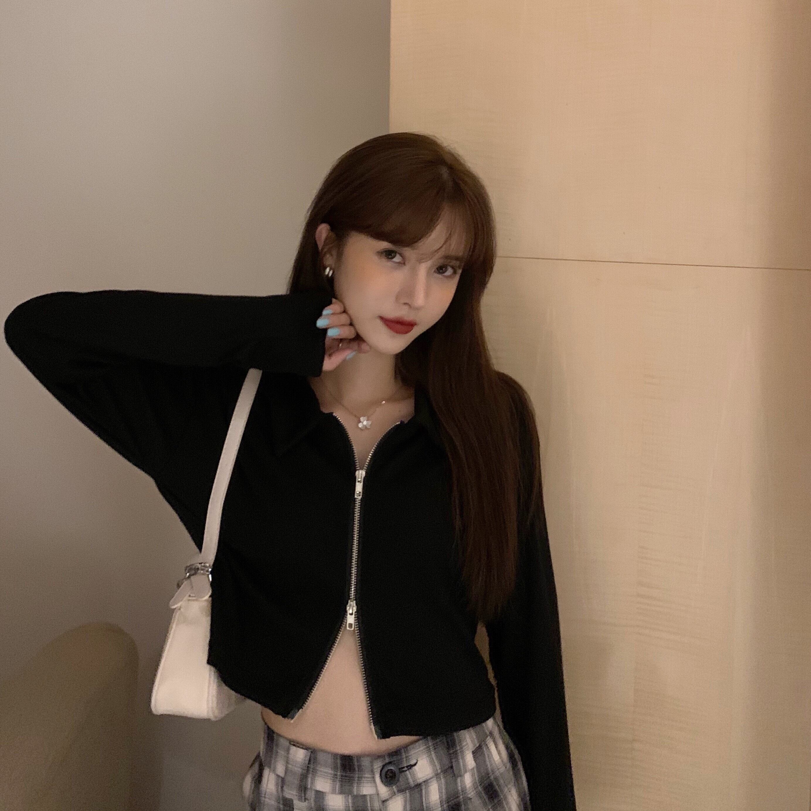 レッドダブルジッパーニットカーディガンTシャツ スプリングカラーショートトップス ロング 春物 ピュア 萌量不足25130628882