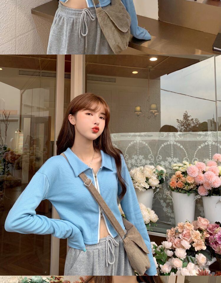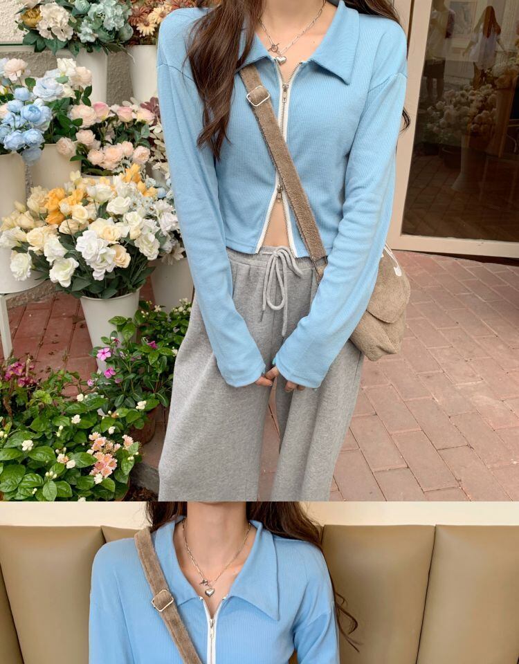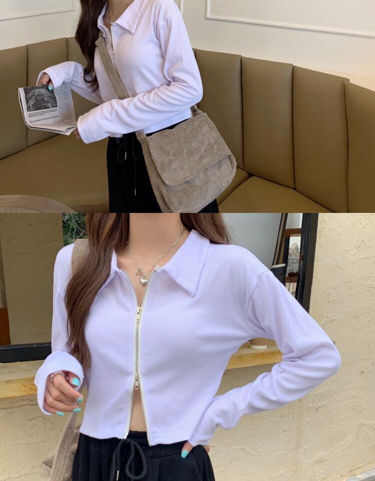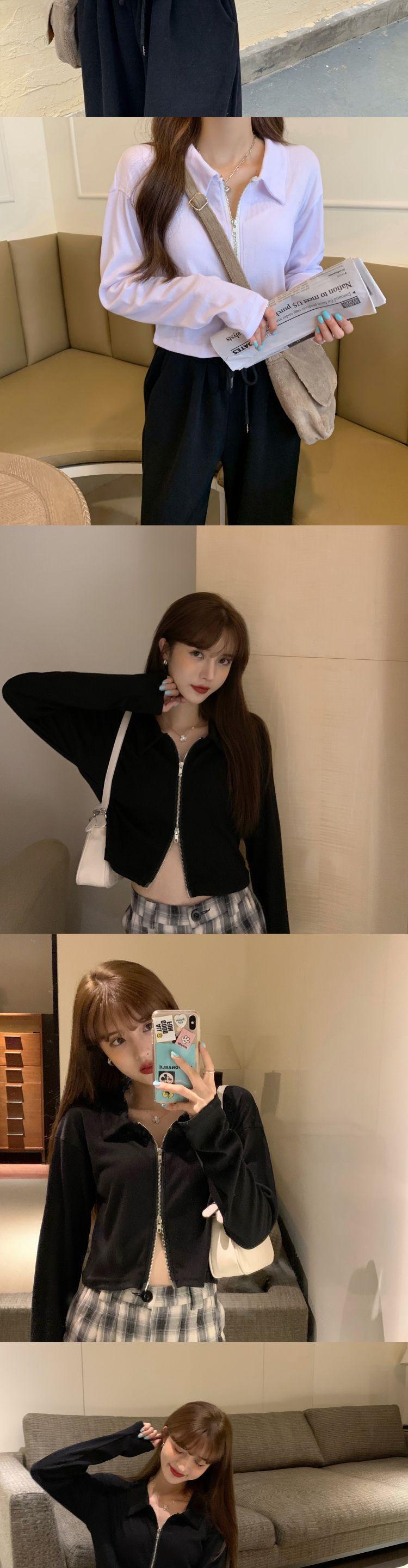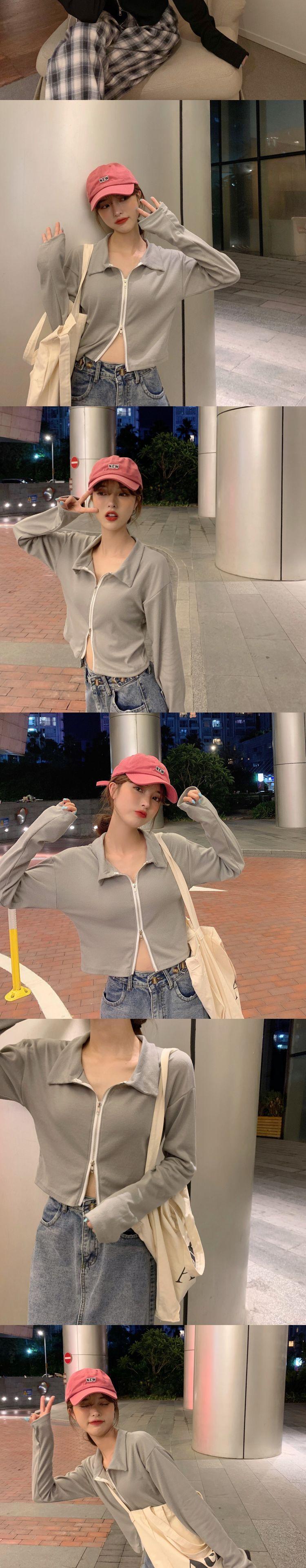 レッドダブルジッパーニットカーディガンTシャツ スプリングカラーショートトップス ロング 春物 ピュア 萌量不足25130628882