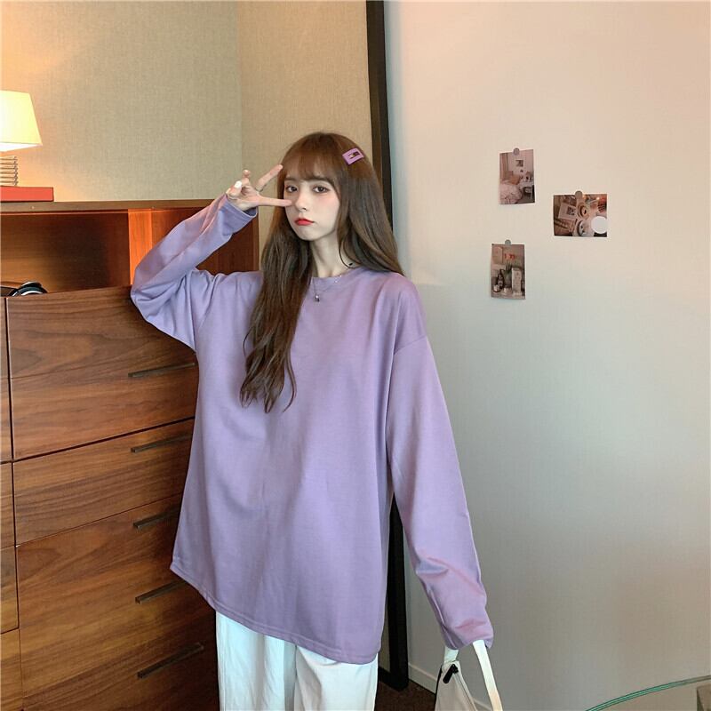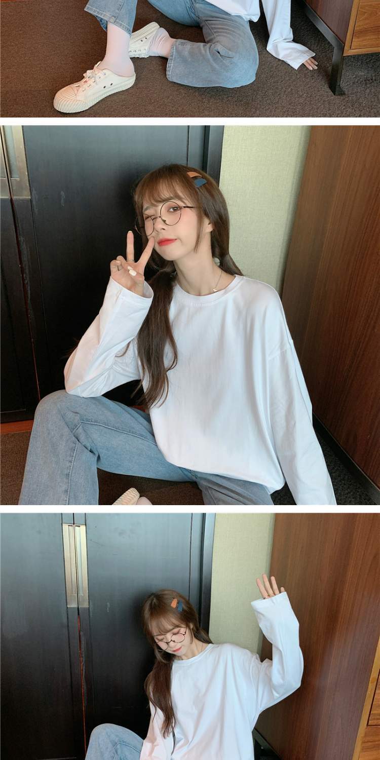 カラーTシャツ シャツ スプリング薄手ルーズカジュアルトップス ロング 春物 萌量不足64243148012